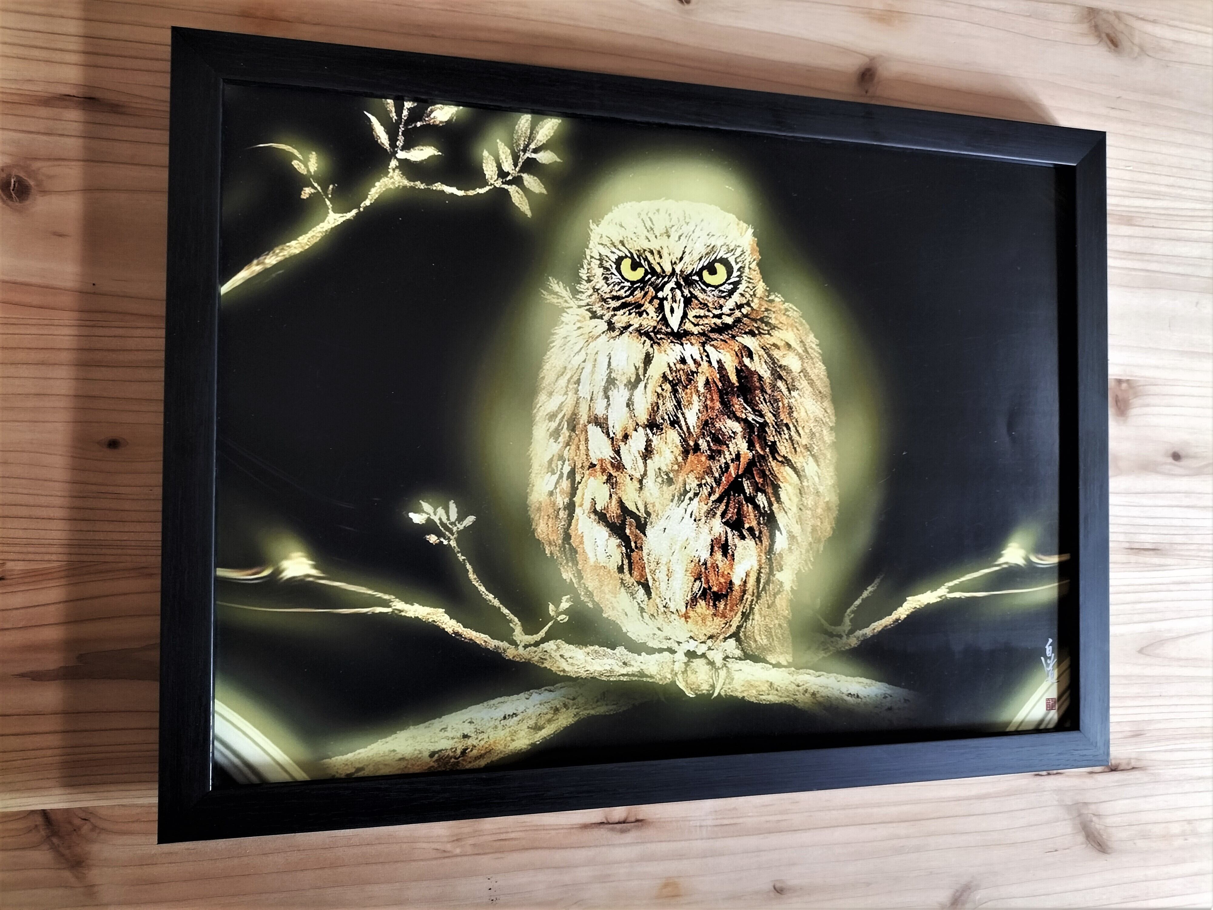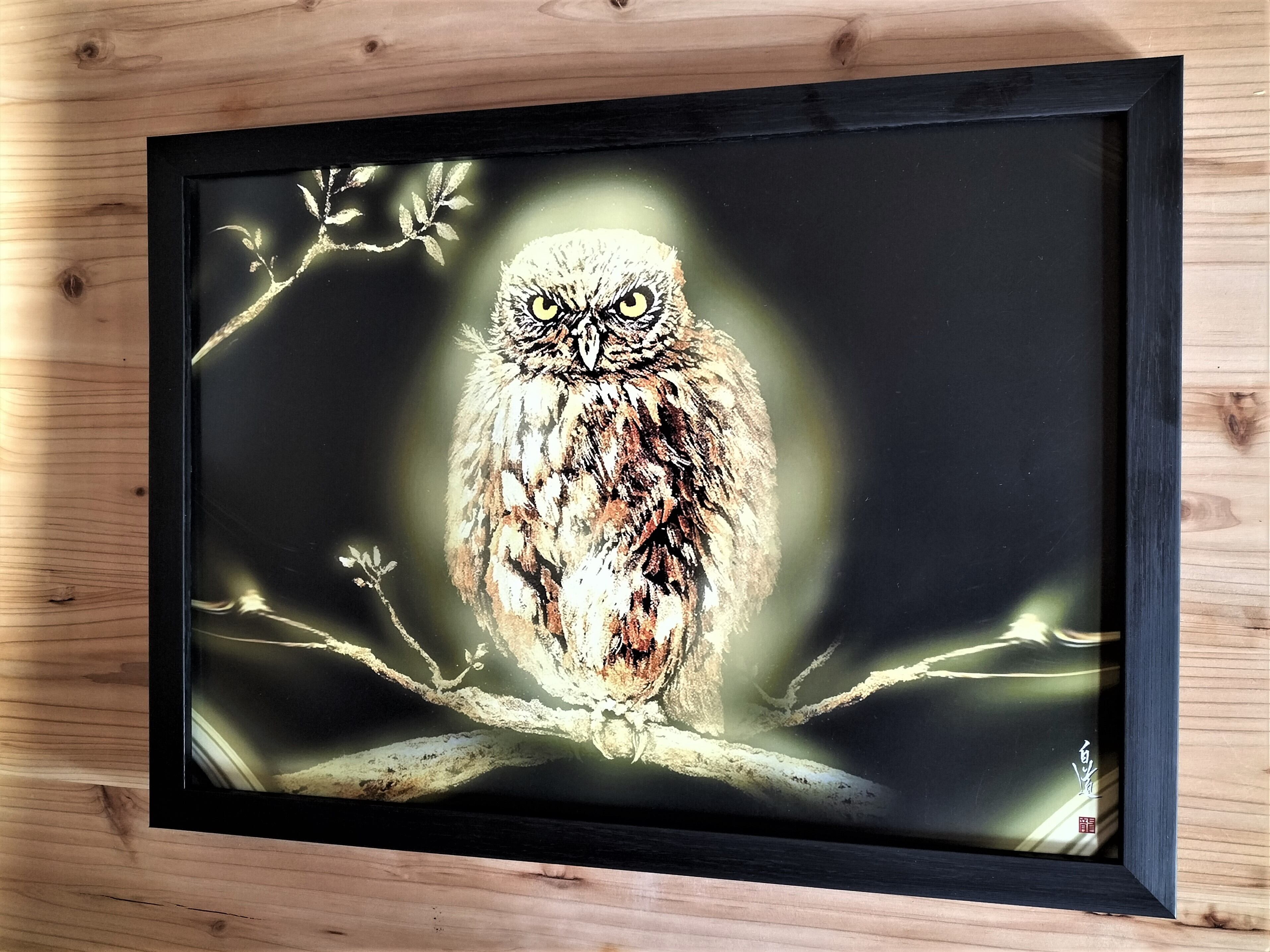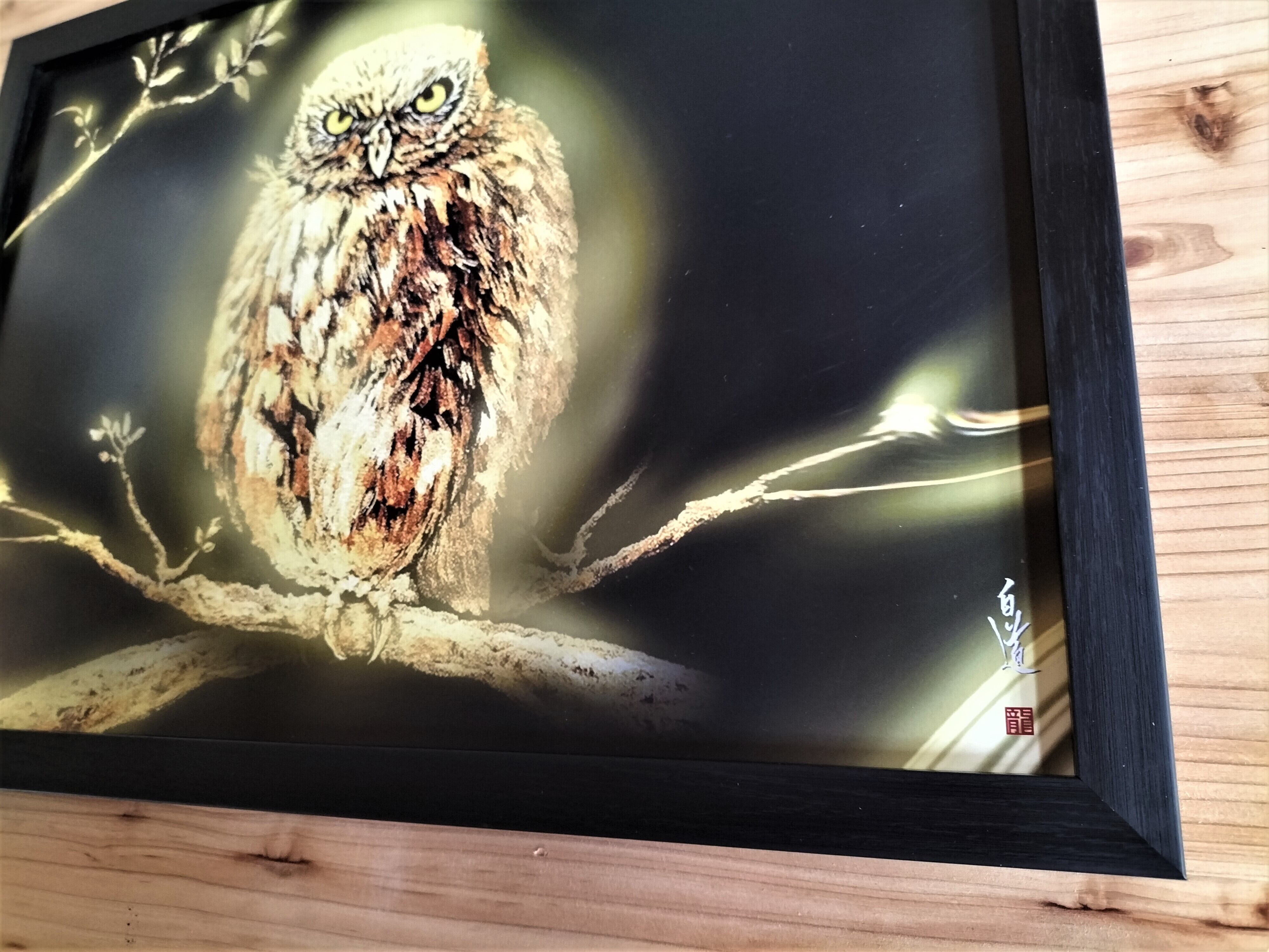 現代芸術家 絵師白道「金フクロウ」(複製画) 直筆サインあり /Hakudouroom. ART Hakudou 絵 絵画 梟