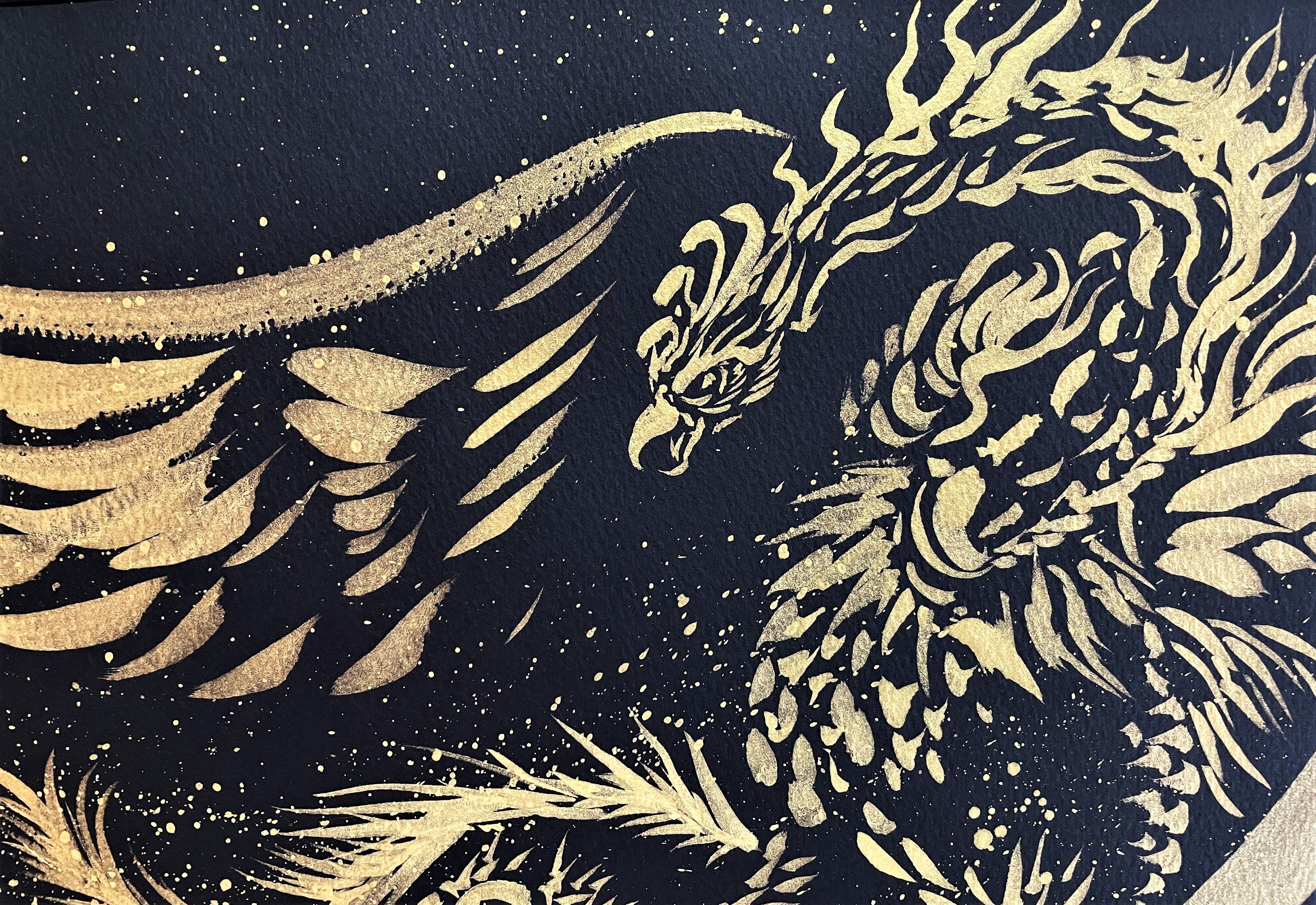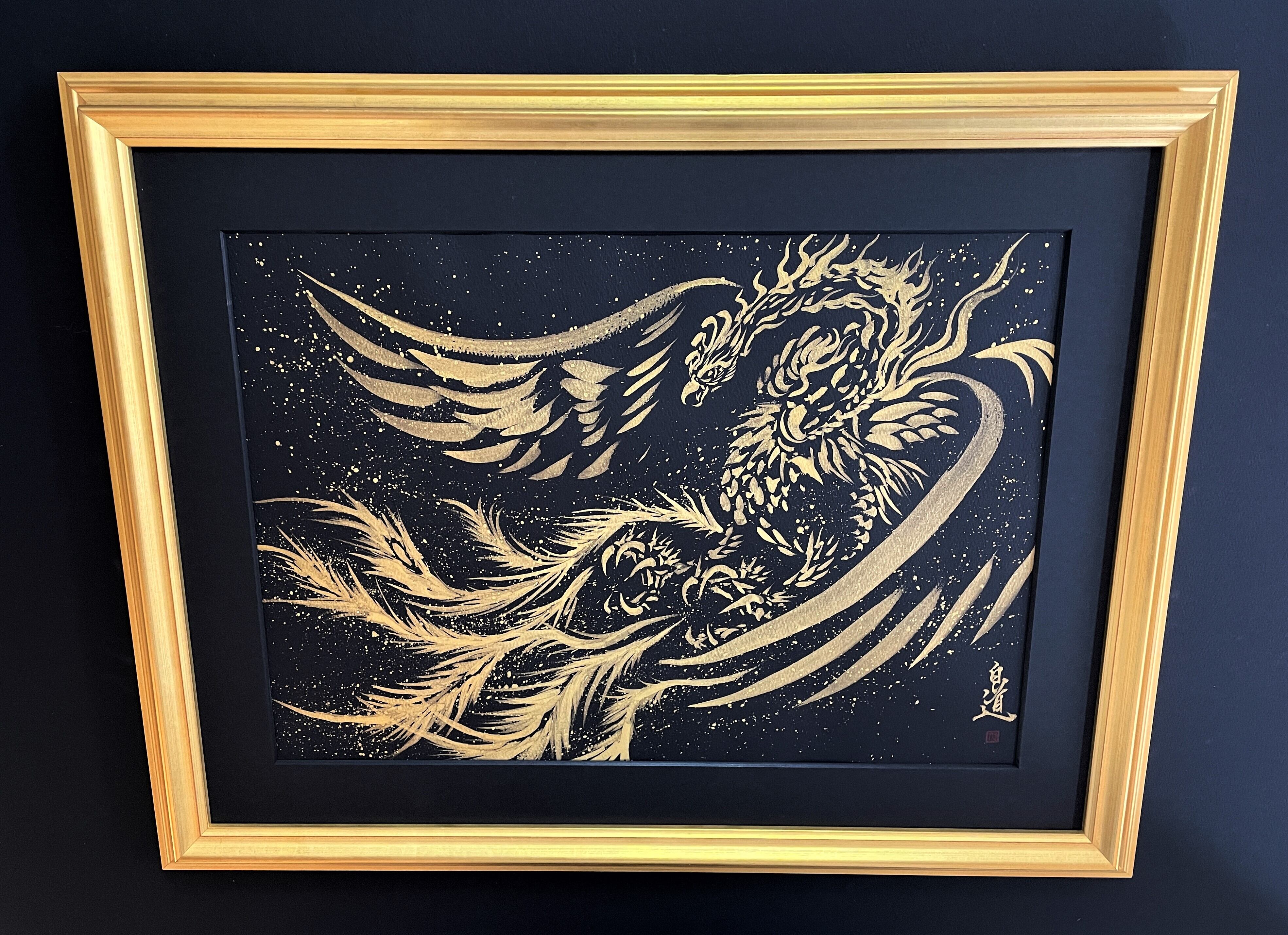 ☆絵師白道 「金の鳳凰」直筆作品 真筆証明書付 高級額装 箱あり 送料無料♪ / Hakudouroom. ART 絵 絵画 高級額装 鳳凰
