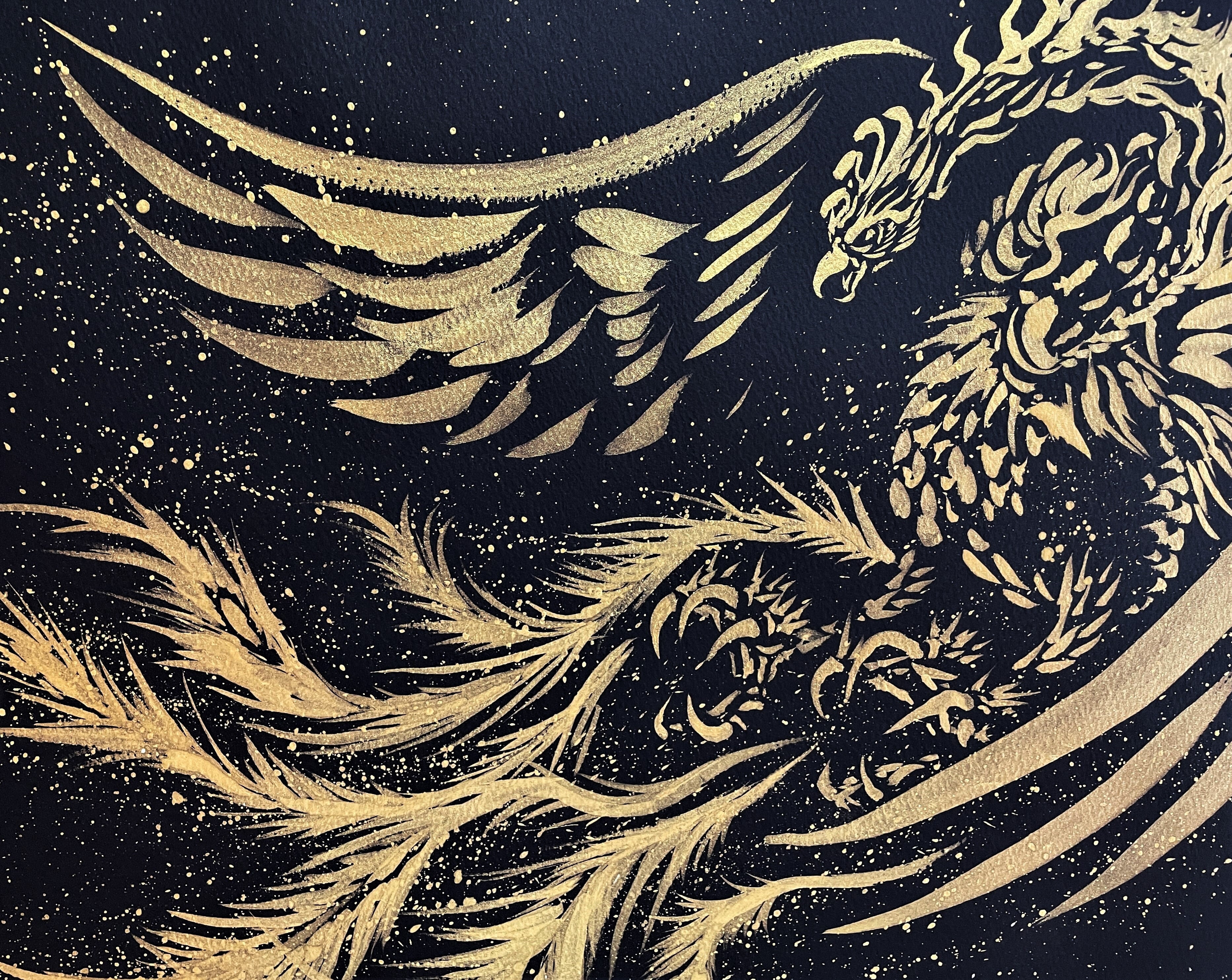千年色が劣化しないとされています岩絵の具の金色で描いています