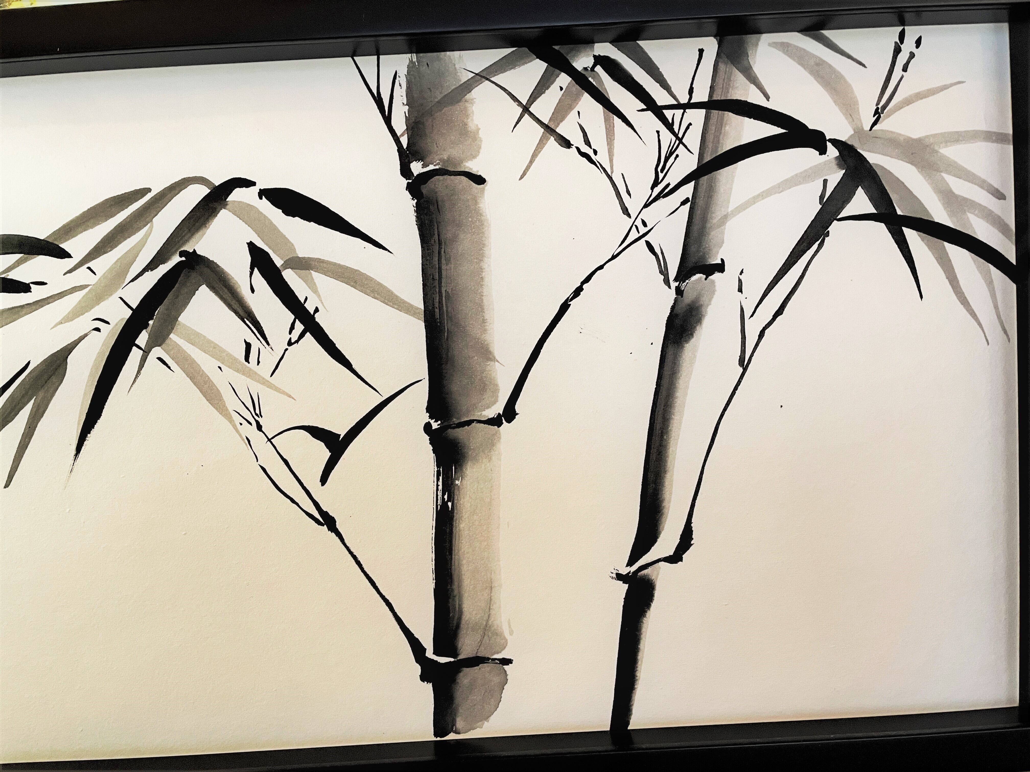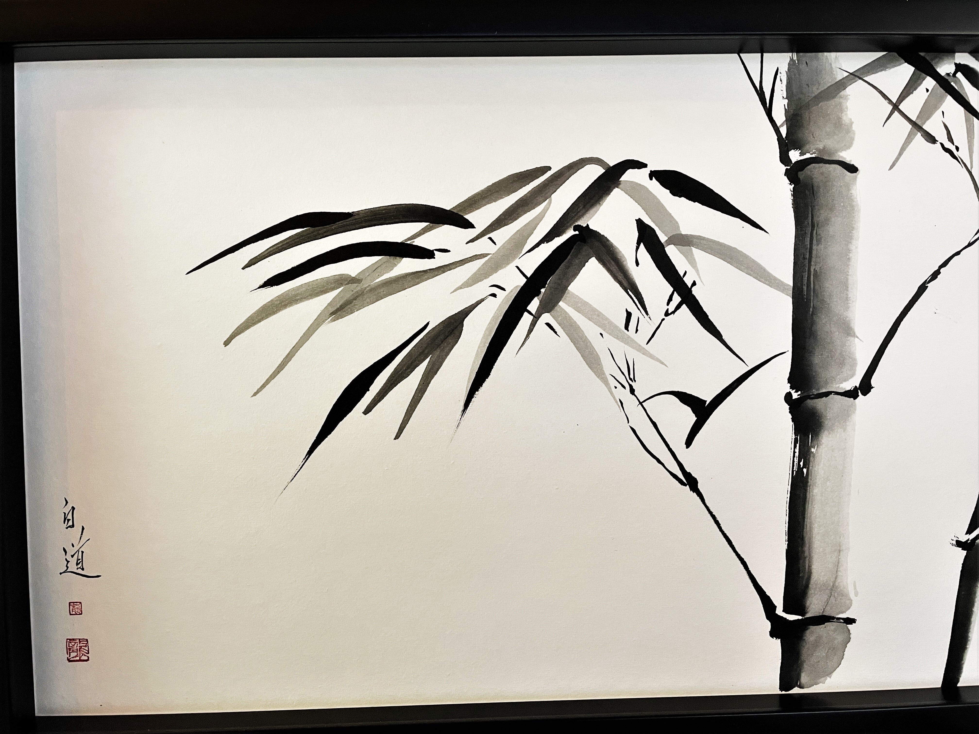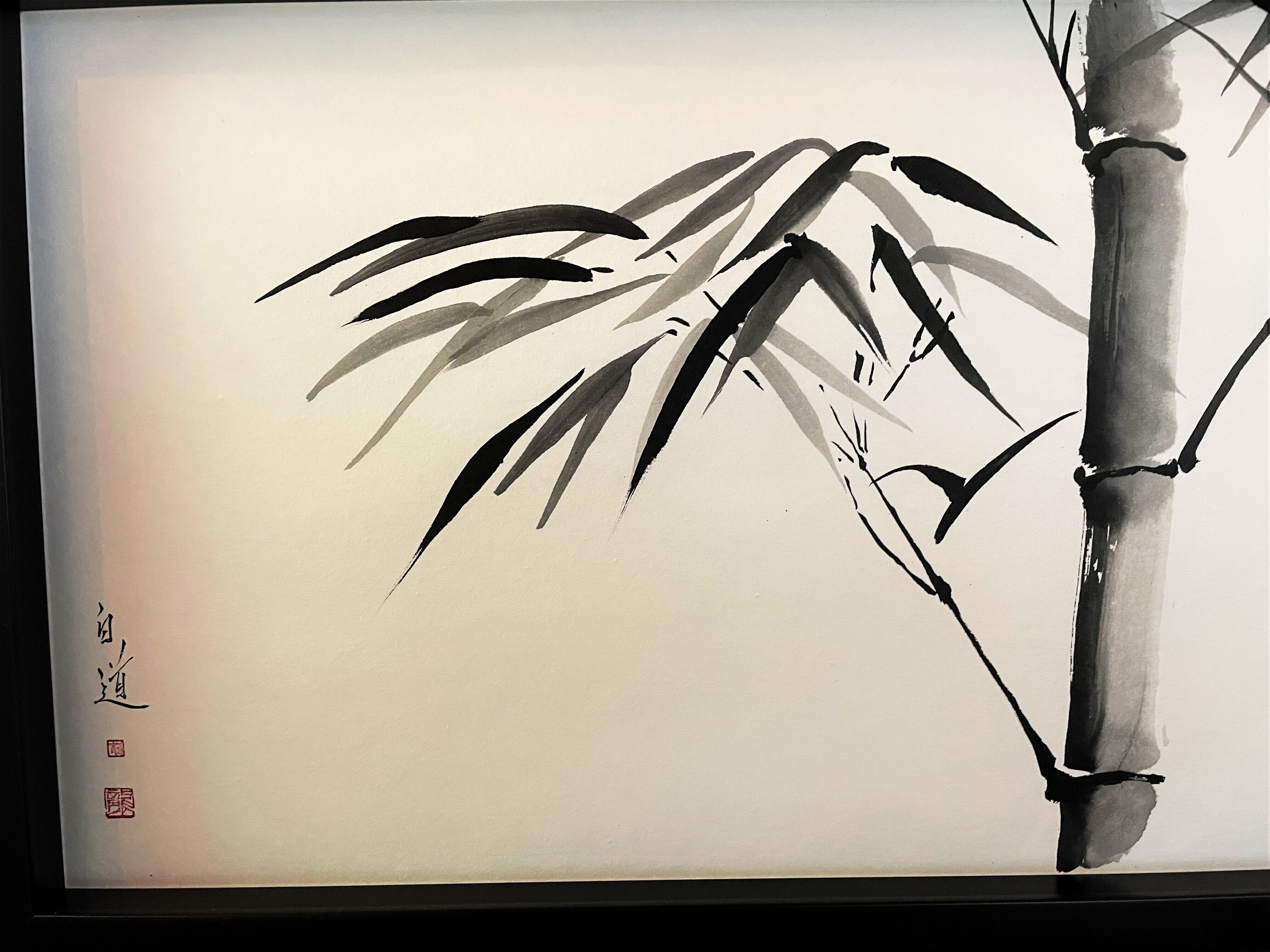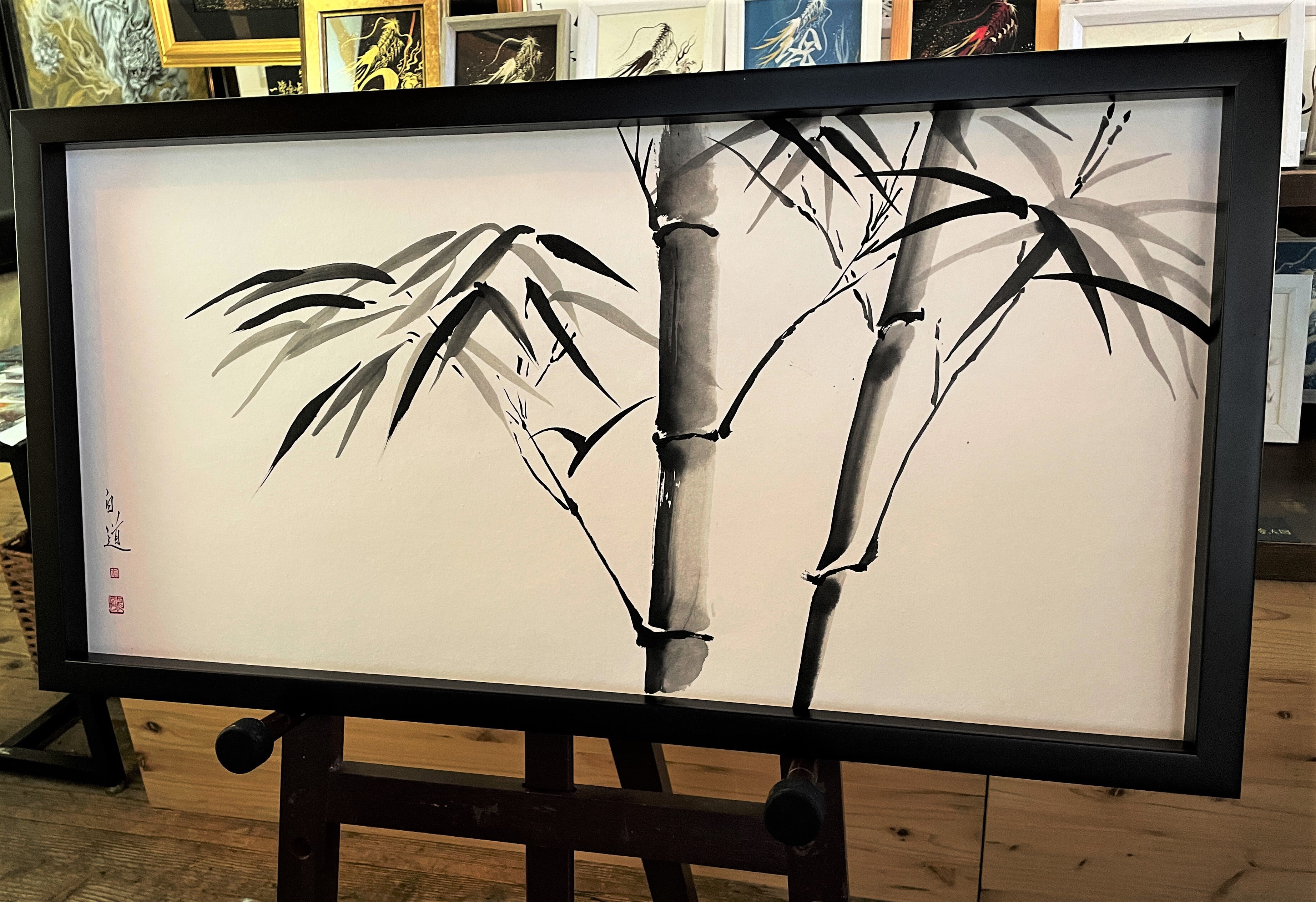 現代水墨画家☆絵師白道 「迎竹」LEDライトUP(水墨画) 直筆作品 箱あり 高級額装 / ART Hakudouroom. Hakudou 絵 絵画