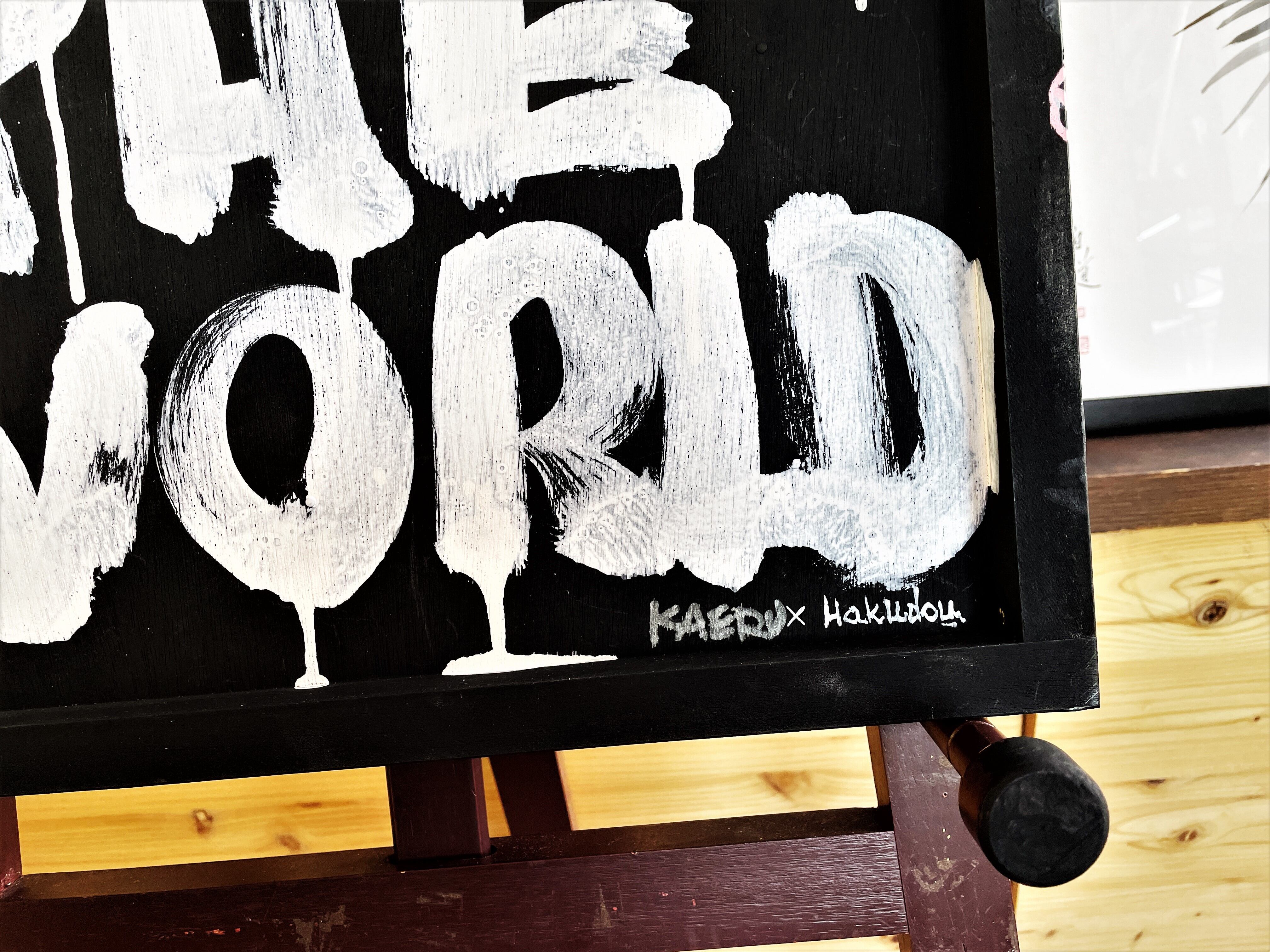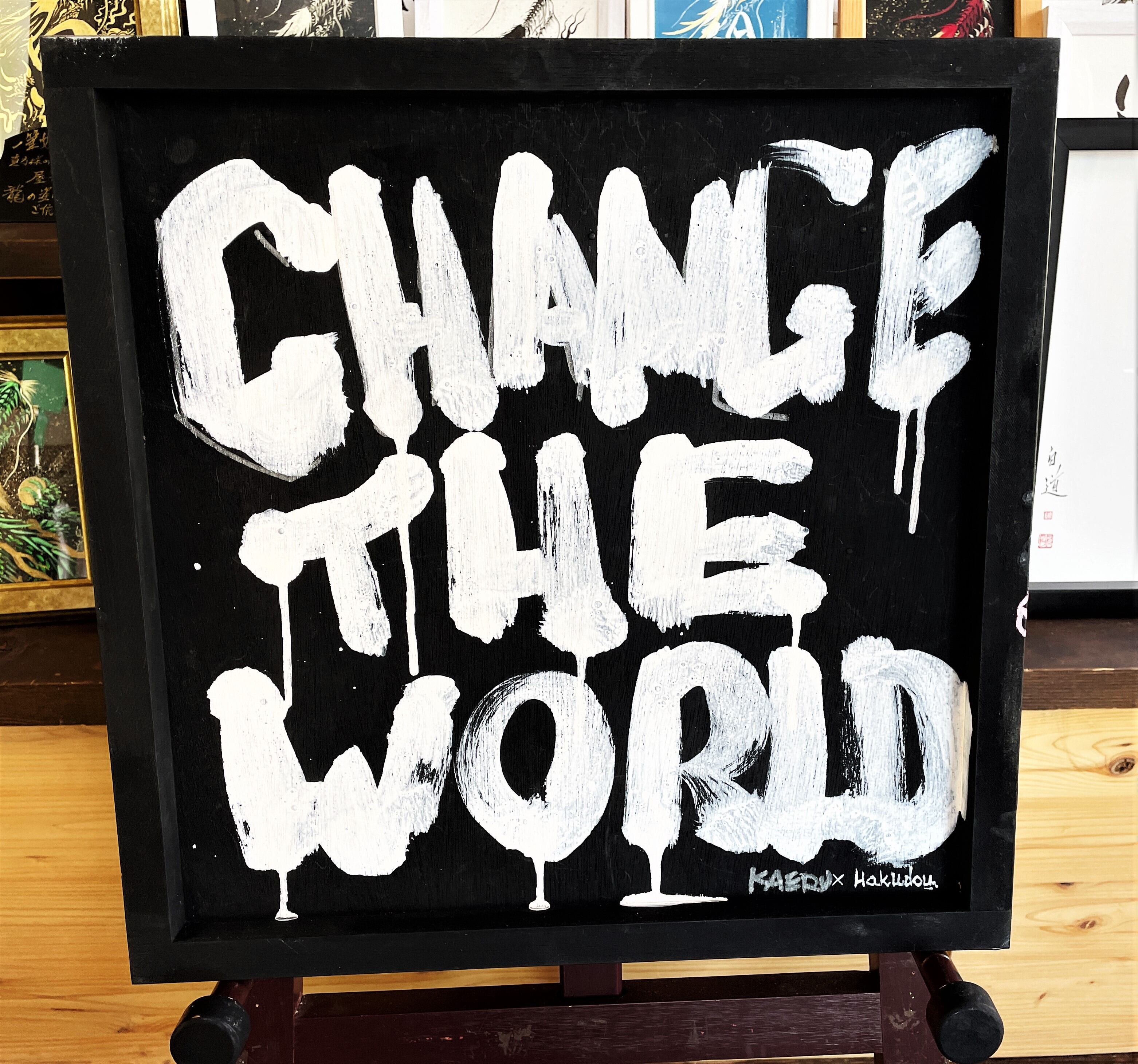 裏面には Change the world の文字 とカエルさんと白道の直筆サインを入れ完成しました。