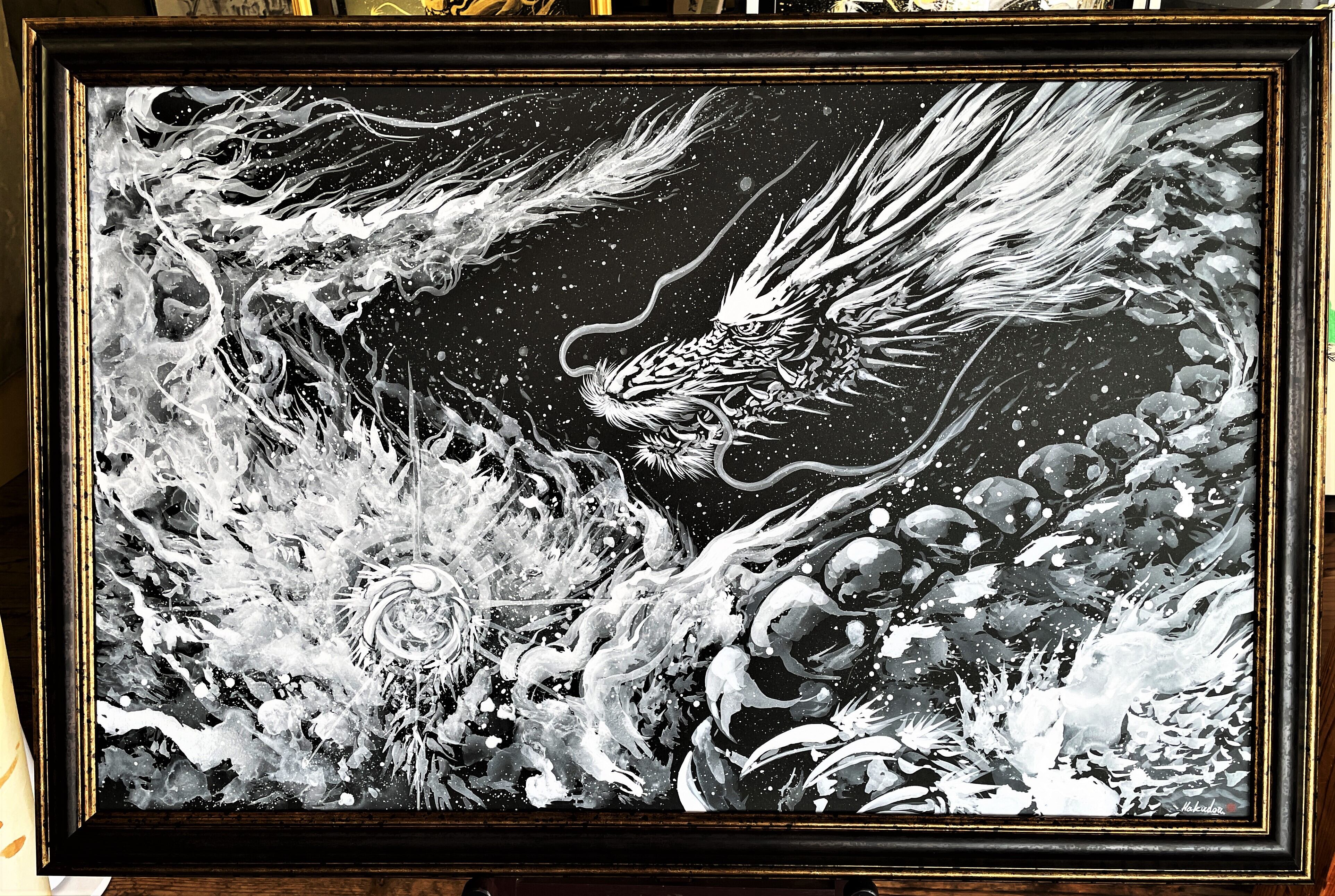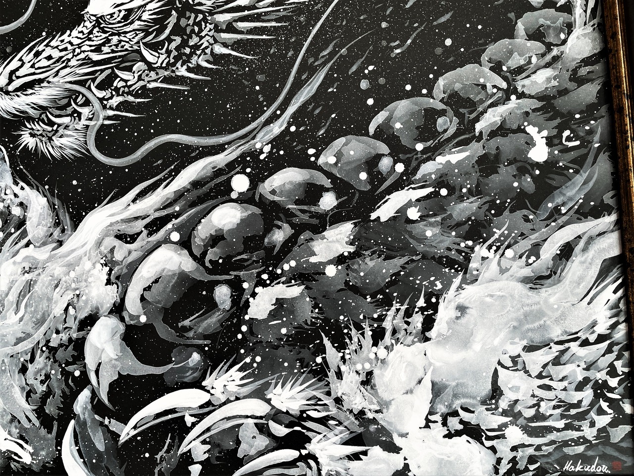 現代水墨画家 絵師白道 「白龍」 直筆作品 真筆証明書付 高級額装 /Hakudouroom. ART 絵 絵画 龍 送料無料♪
