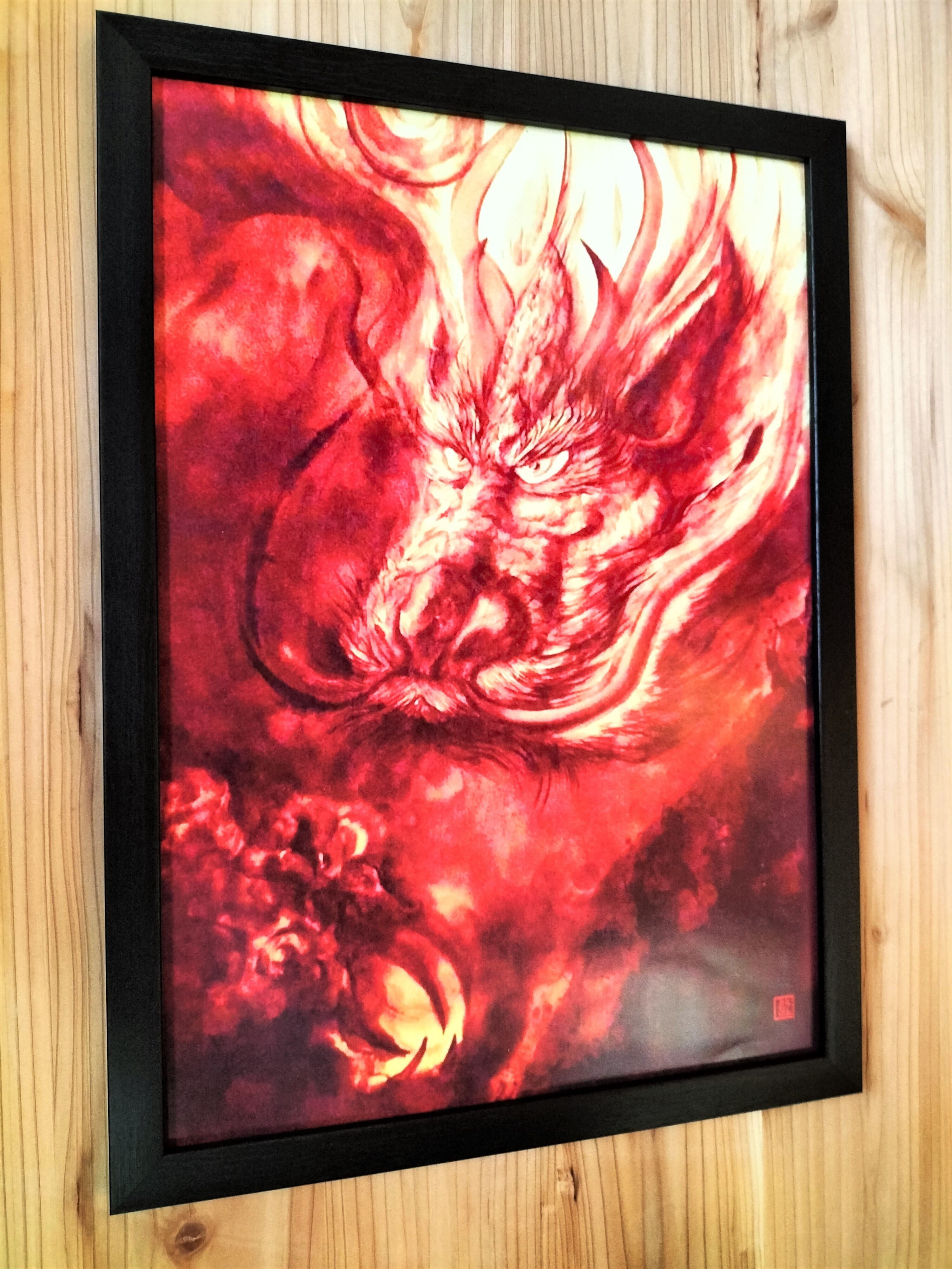 アシスタント:現代芸術家、絵師白道の作品「龍魂」を複製した直筆サイン入りの絵画です。