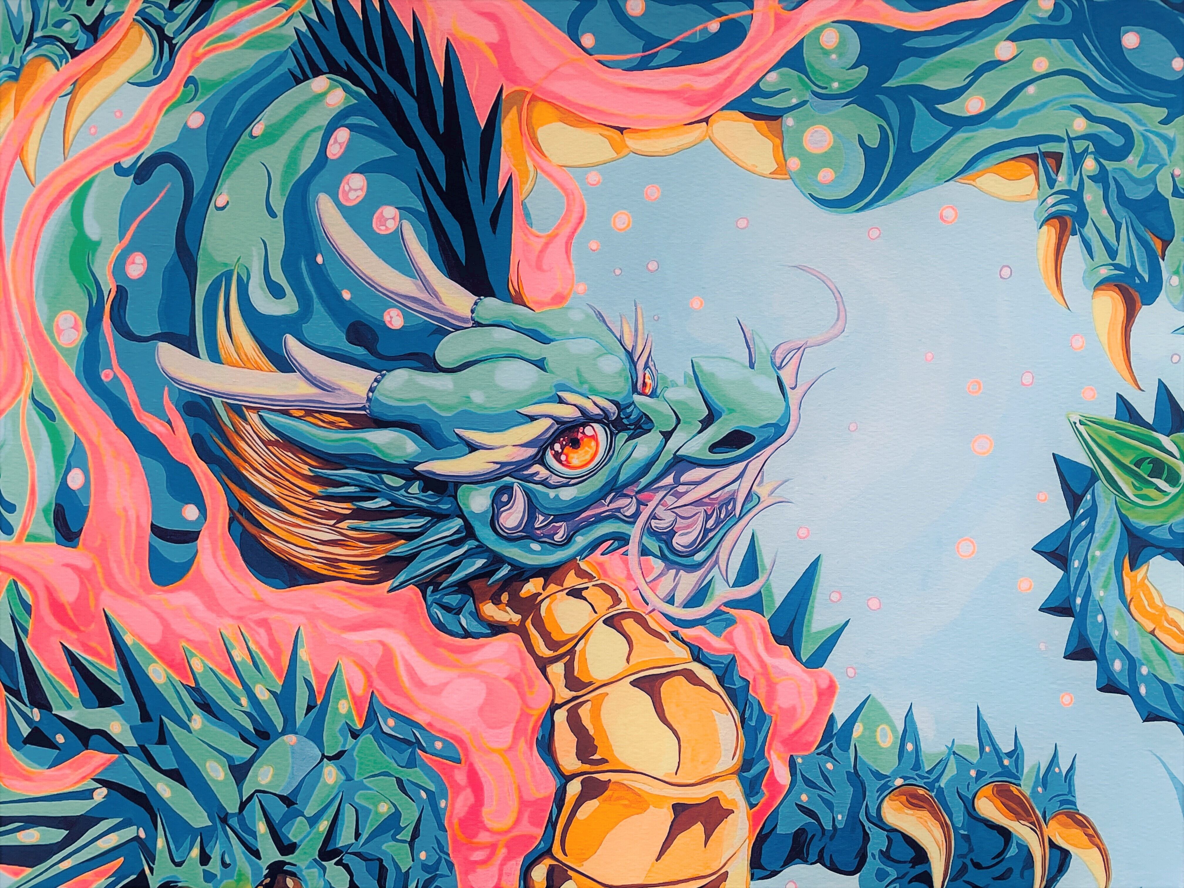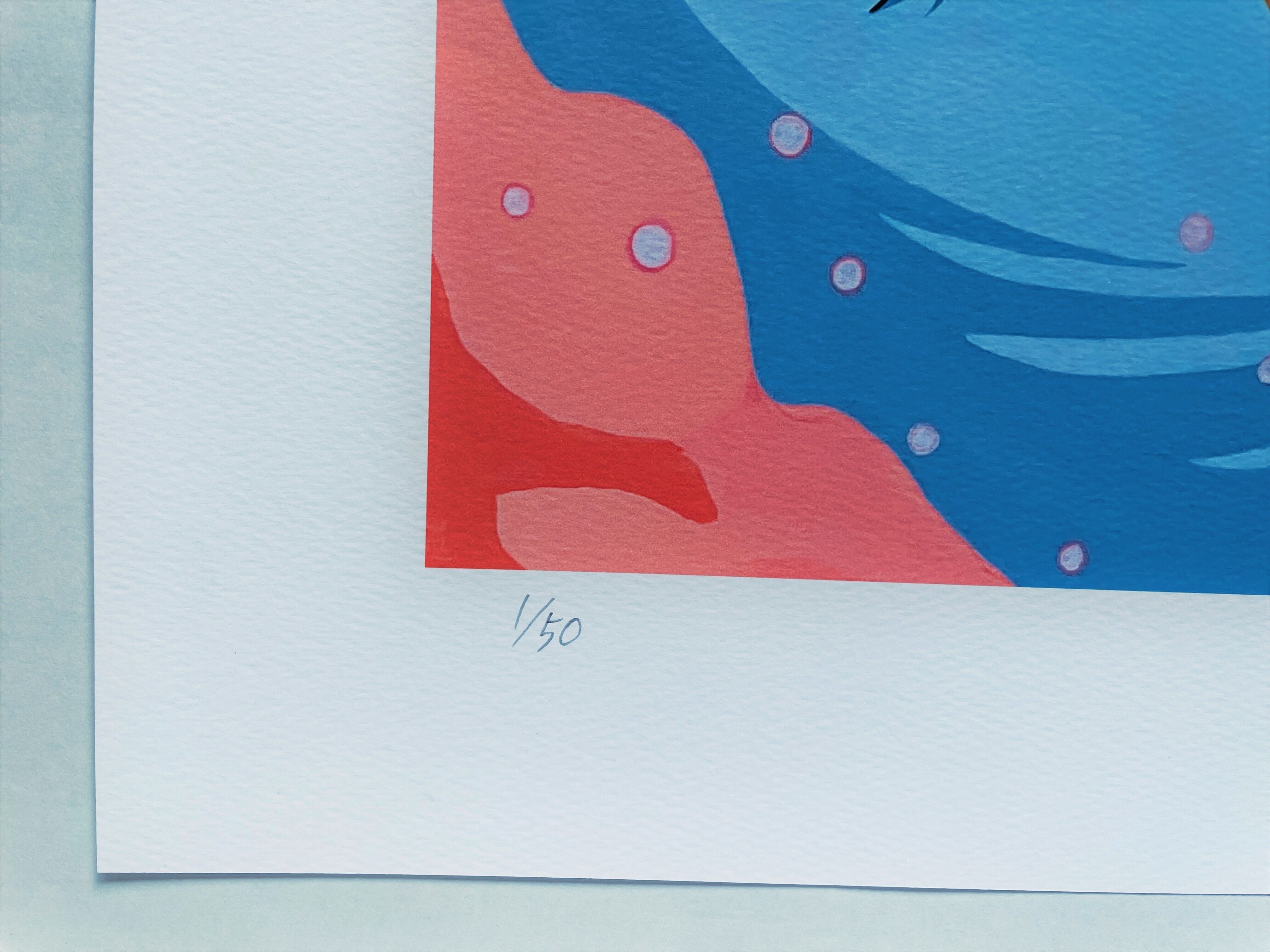 NEW新作 Pinky Dragon(light blue) 版画(ジークレー印刷)50枚限定 直筆サインあり 証明書付 額あり