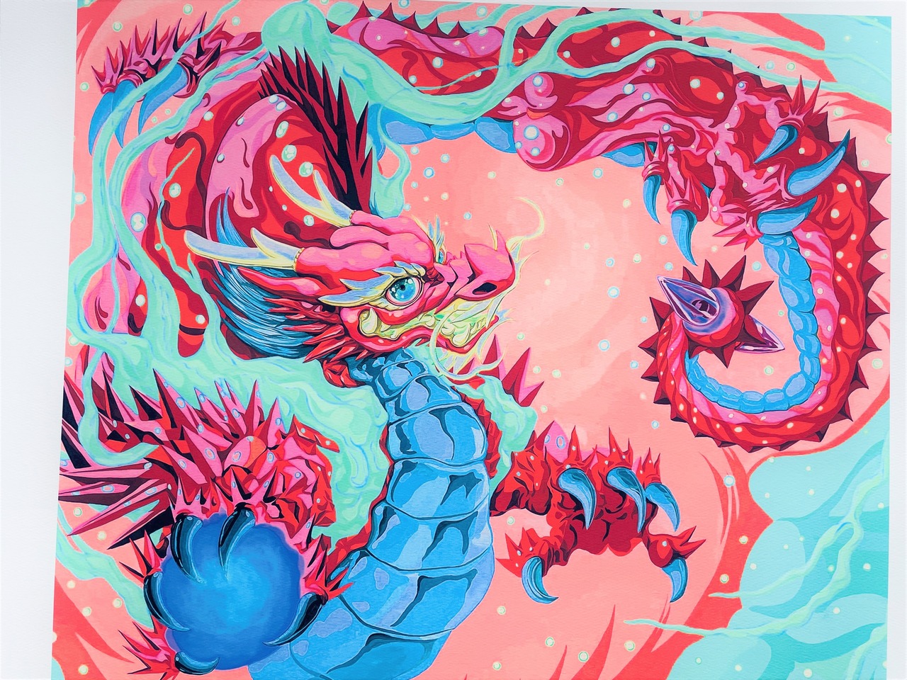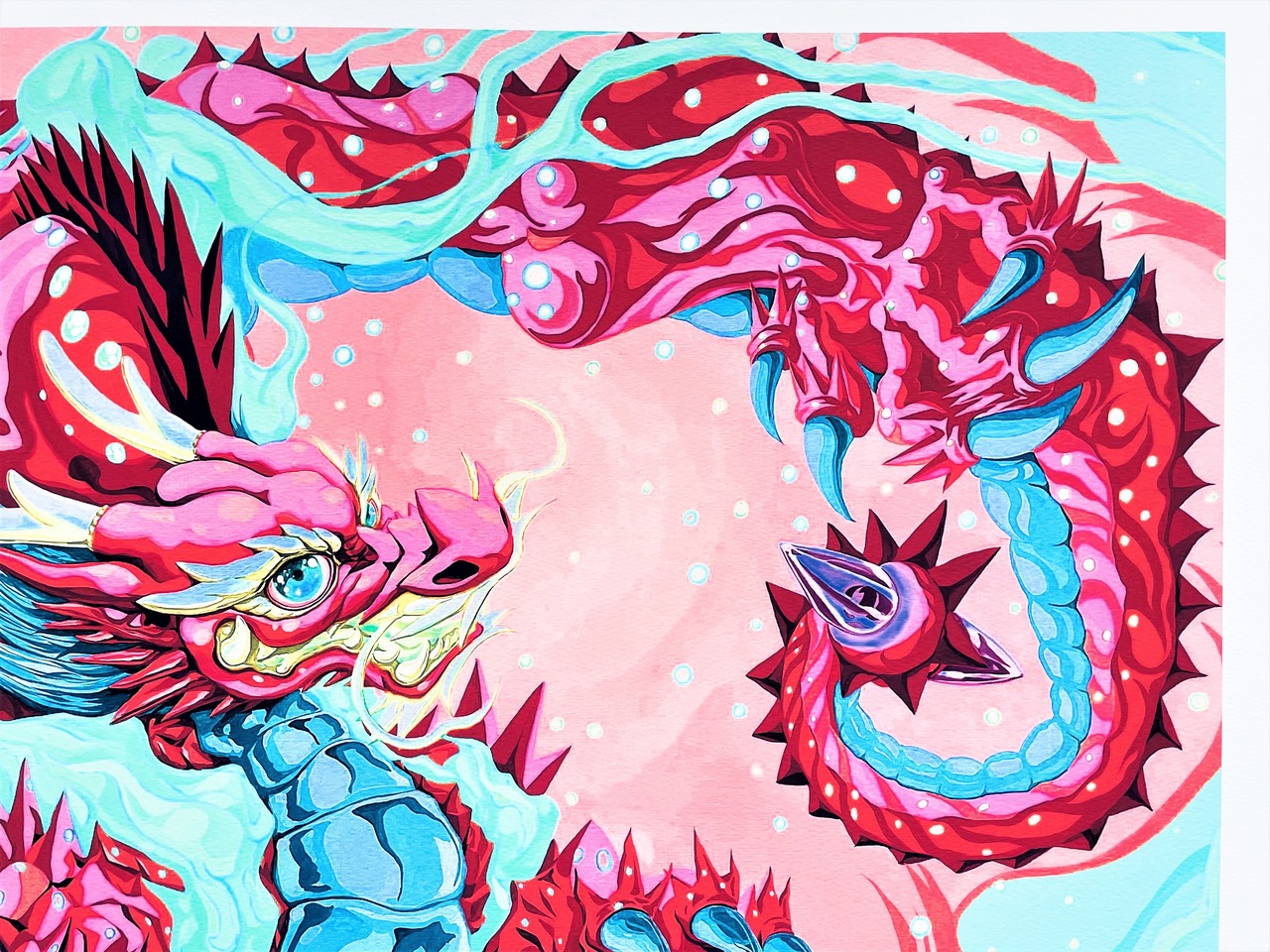 アシスタント:NEW新作 Pinky Dragon(Red)は、50枚限定で販売される特別な版画です。