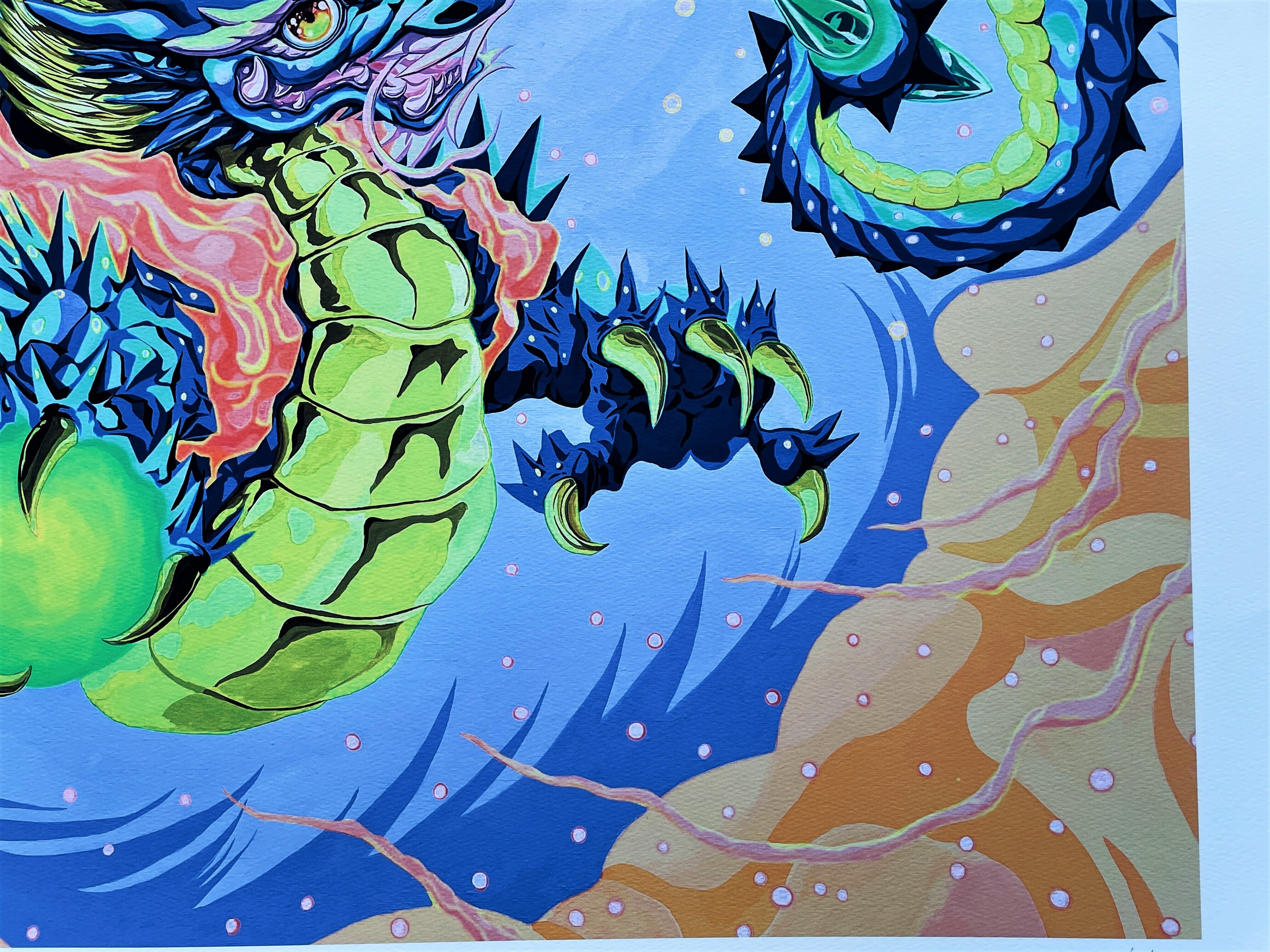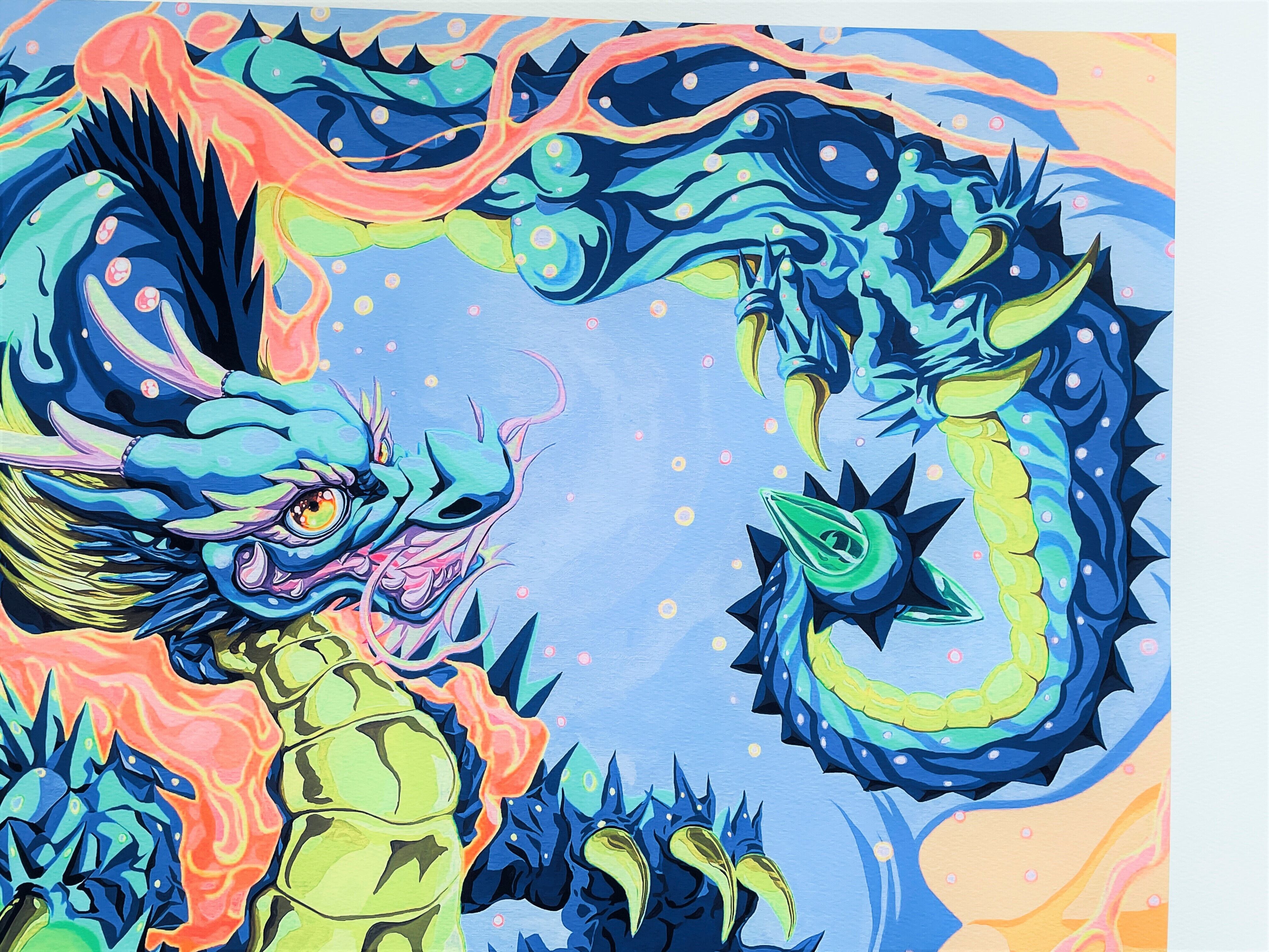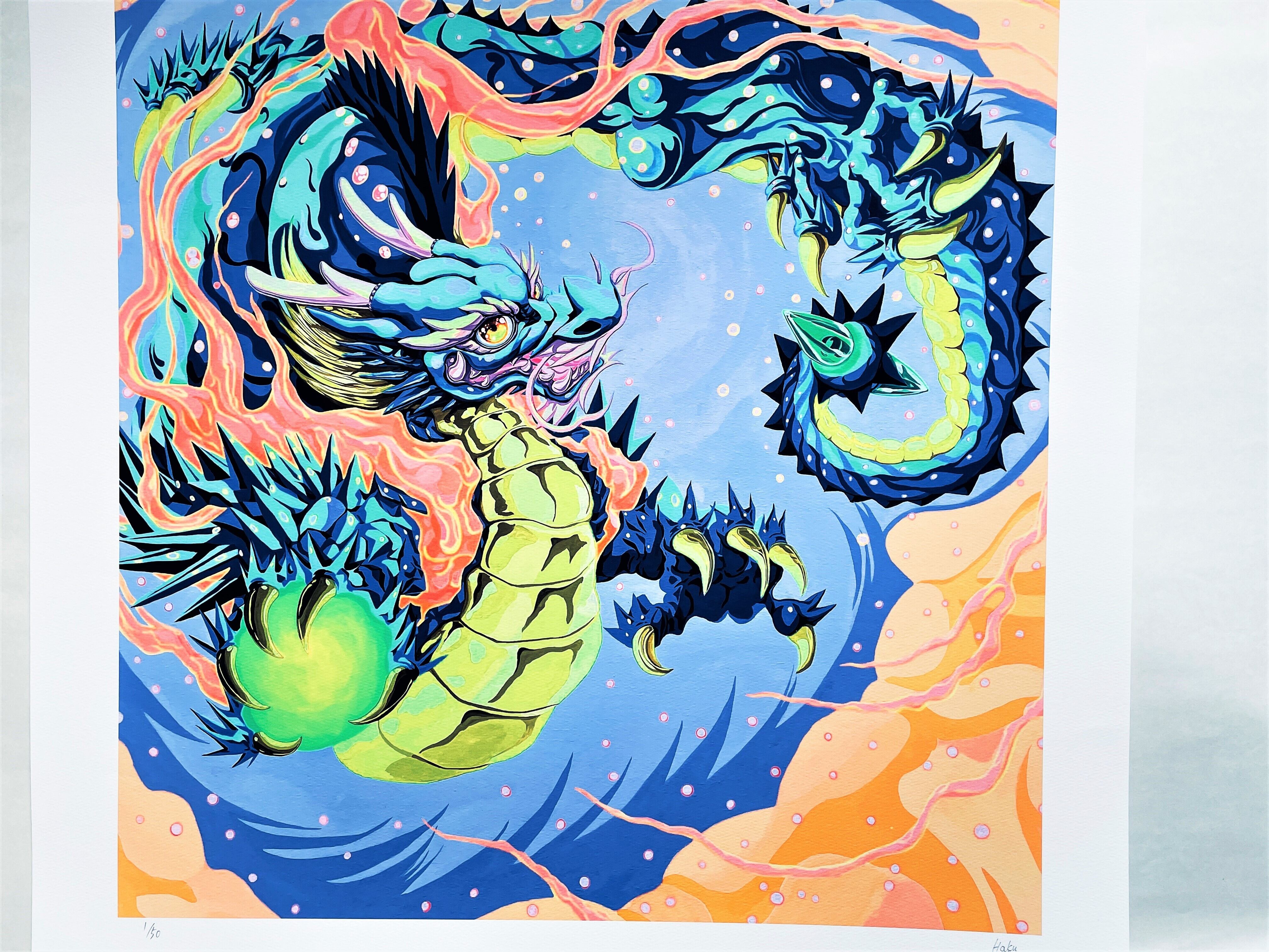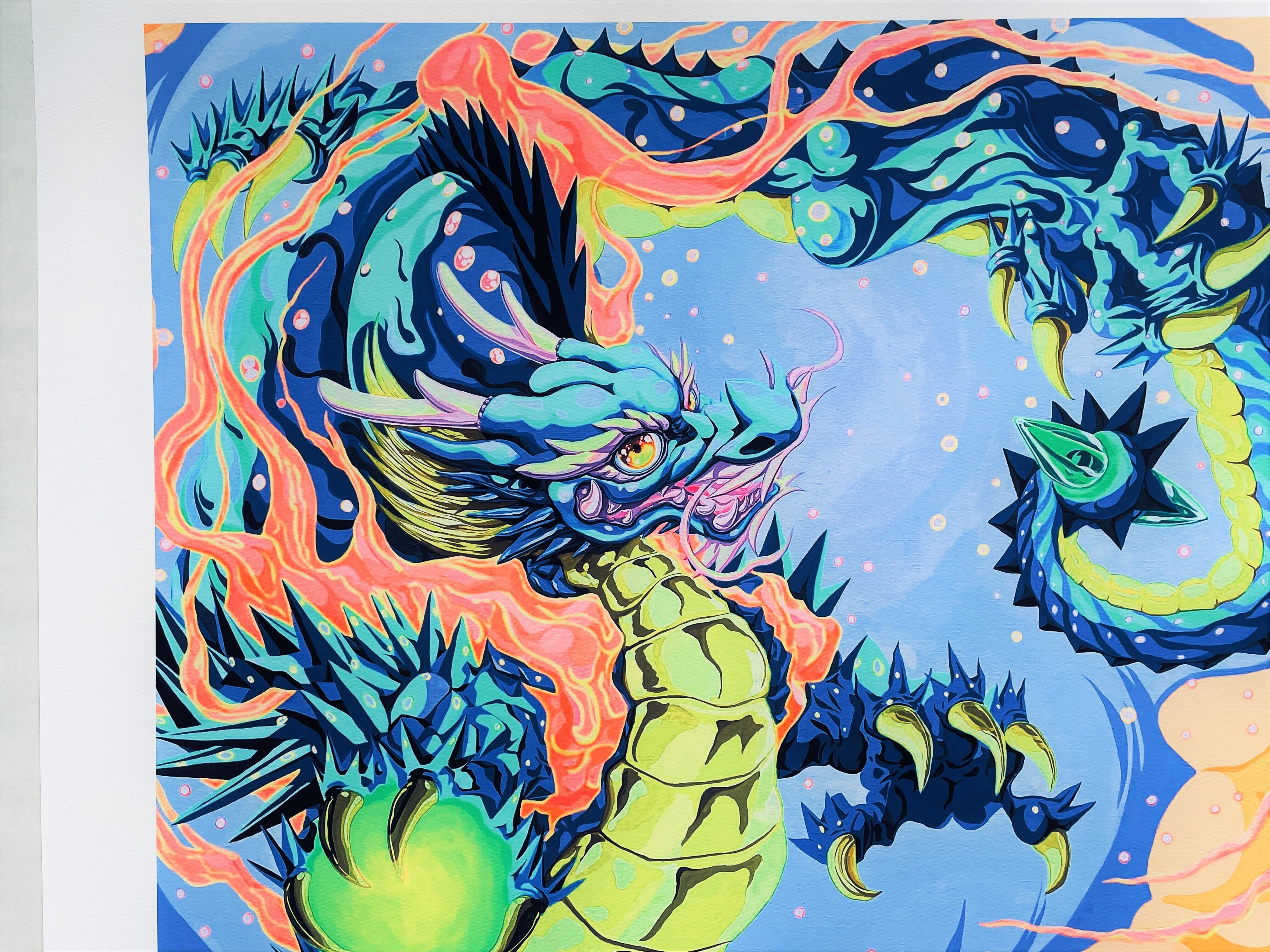 NEW新作 Pinky Dragon(cobalt blue) 版画(ジークレー印刷)50枚限定 直筆サインあり 証明書付 額縁あり