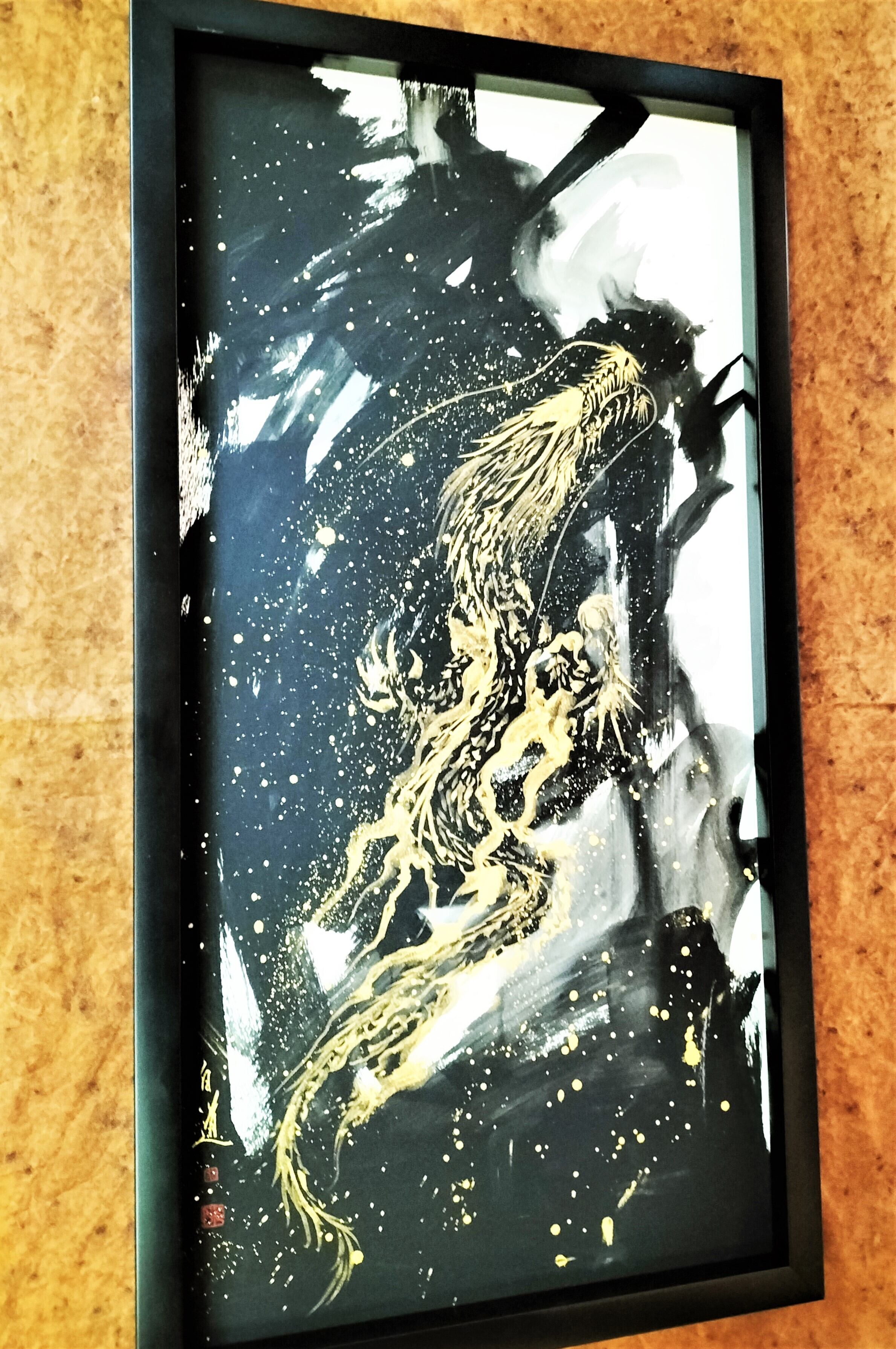 現代水墨画家☆絵師白道 「喜翔龍 金龍」 箱あり 高級額装 / ART 絵 絵画 龍 Hakudouroom. 現代アート 送料無料♪