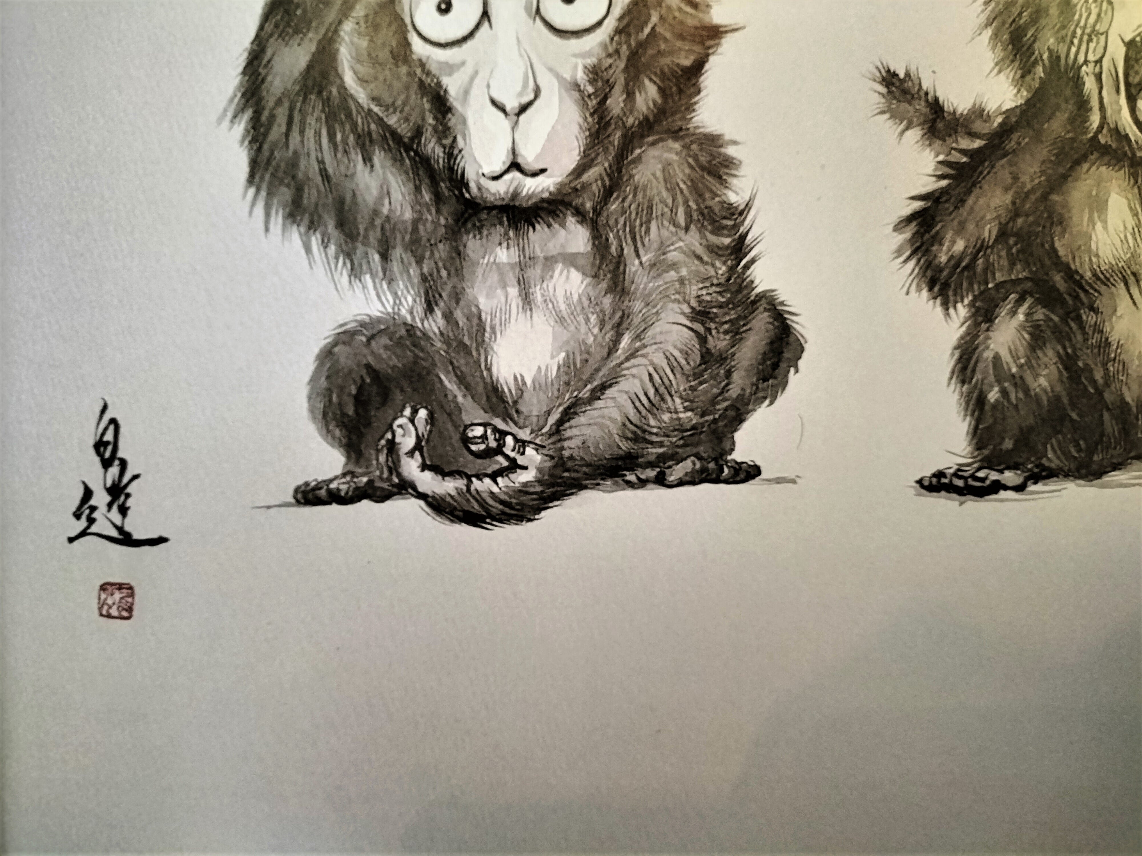 ☆現代芸術家 絵師白道 「逆三猿」(複製画) 直筆サインあり /Hakudouroom. ART Hakudou 絵 絵画