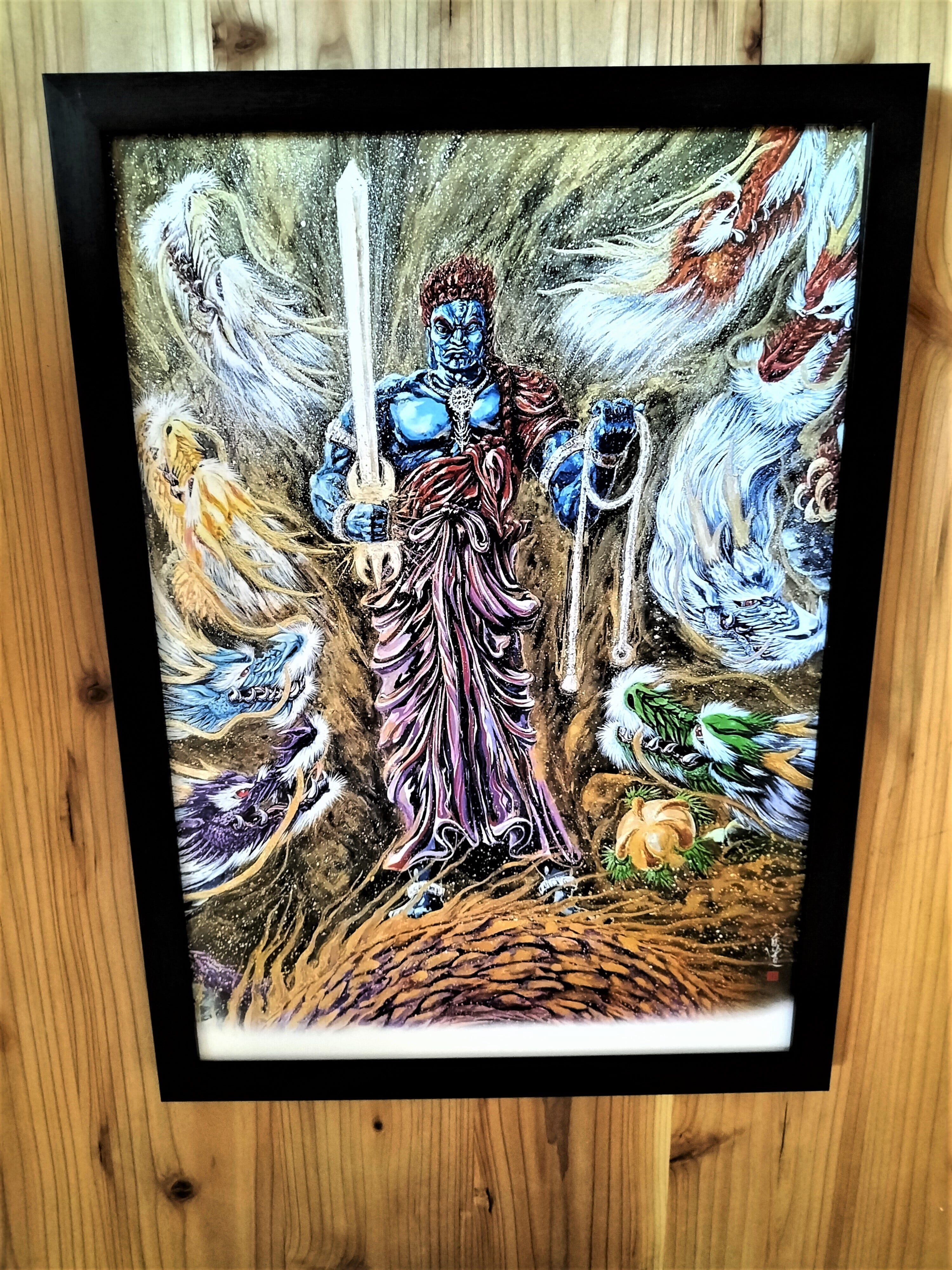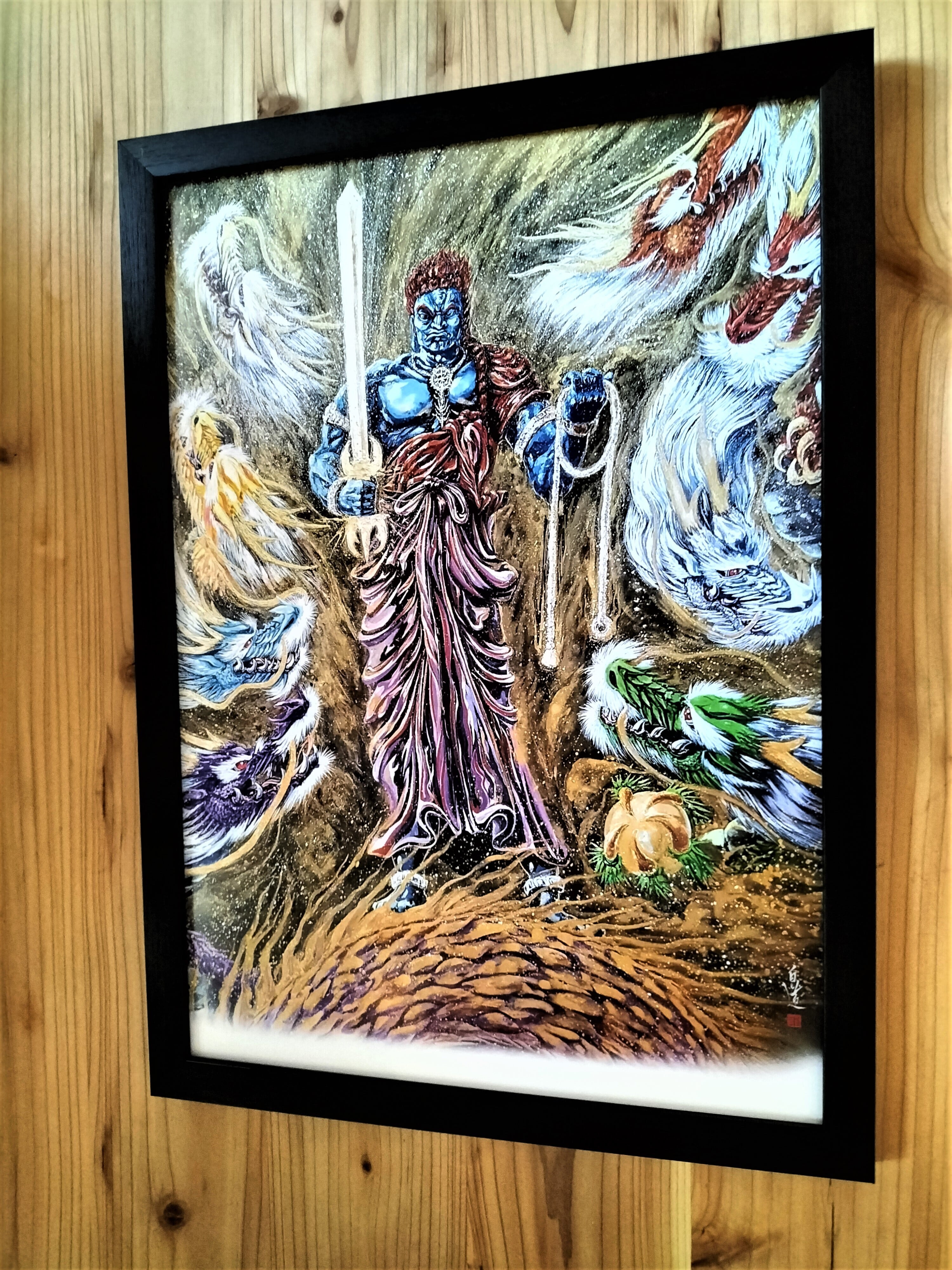 ☆現代芸術家 絵師白道☆「青不動明王 と 八大龍王」複製画 直筆サイン付き / 龍 不動明王 絵 絵画 ART 現代アート 送料無料♪