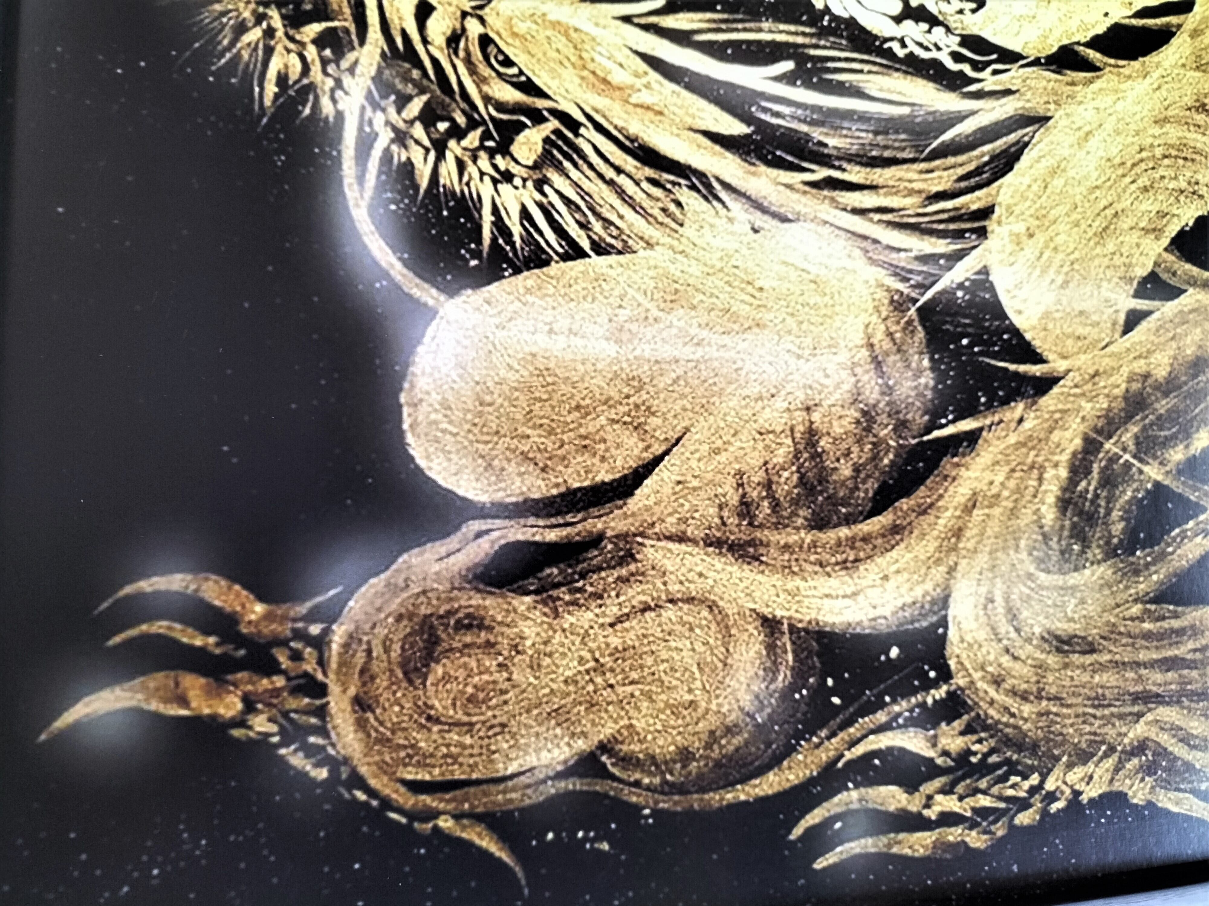 ☆現代芸術家 絵師白道 「一筆金福龍」(複製画) 直筆サインあり /Hakudouroom. ART Hakudou 絵 絵画