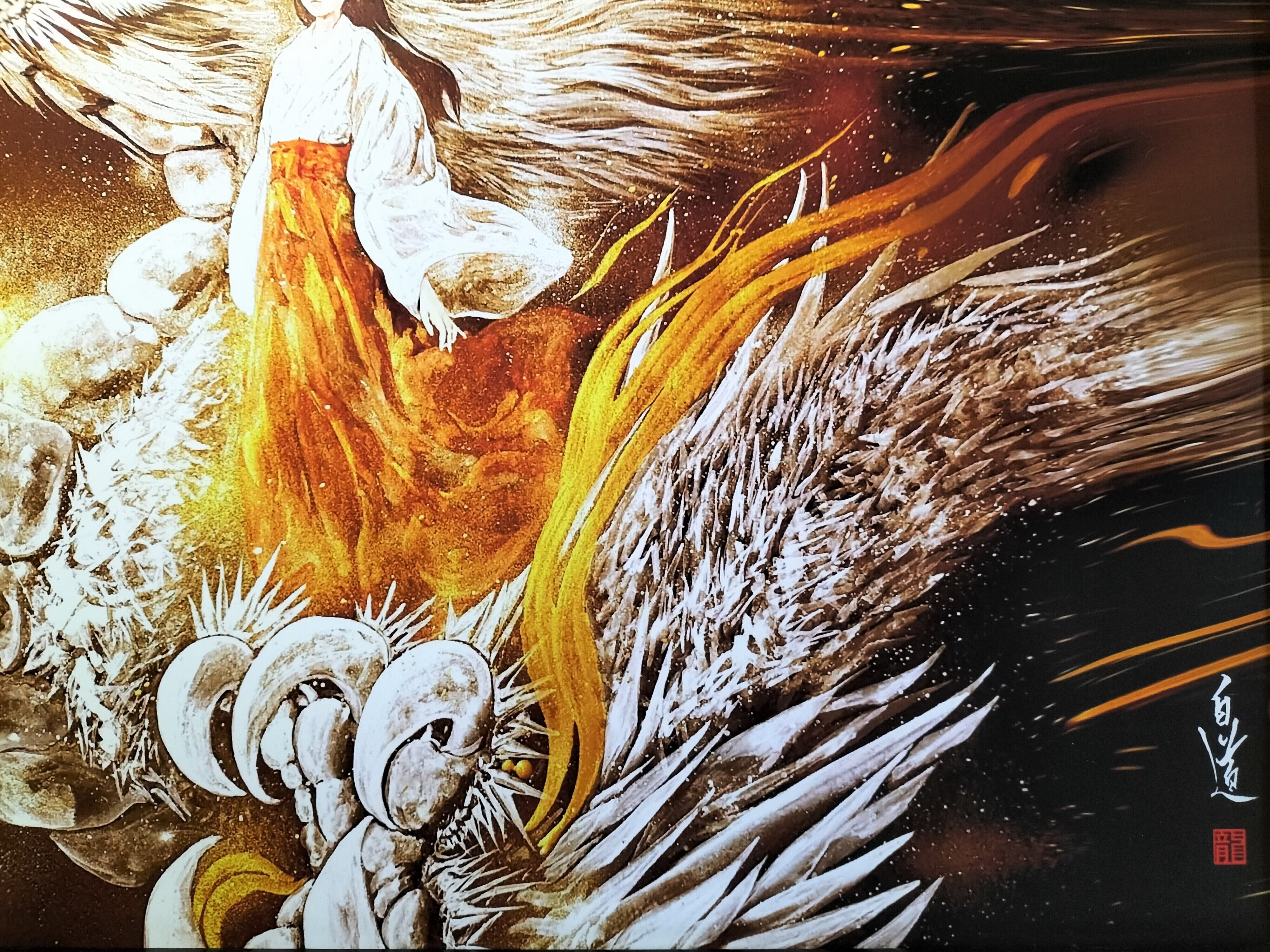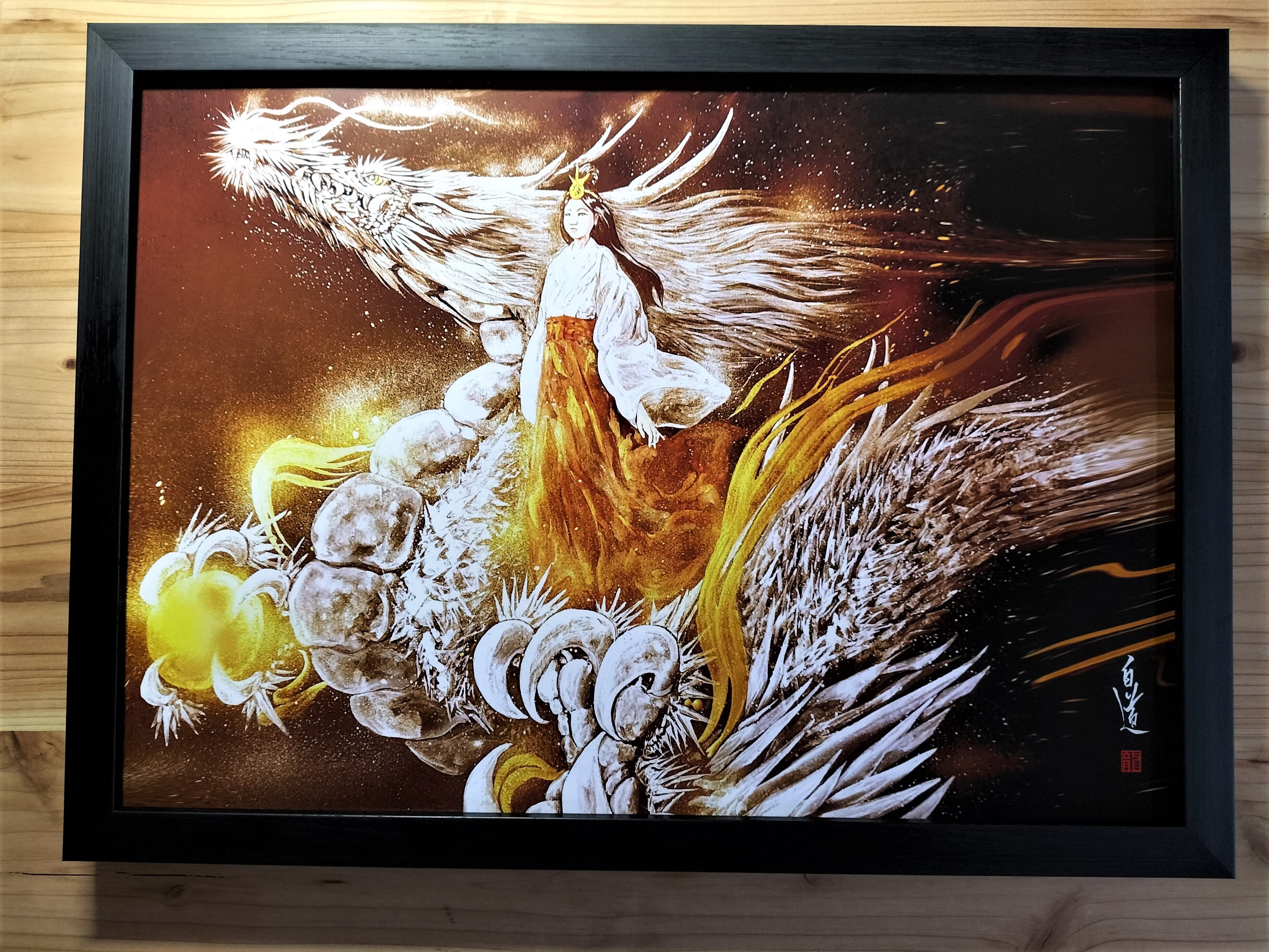 現代芸術家 絵師白道 「白龍と天照大御神」(複製画)直筆サインあり /ART Hakudou 絵 絵画 龍 神 送料無料♪