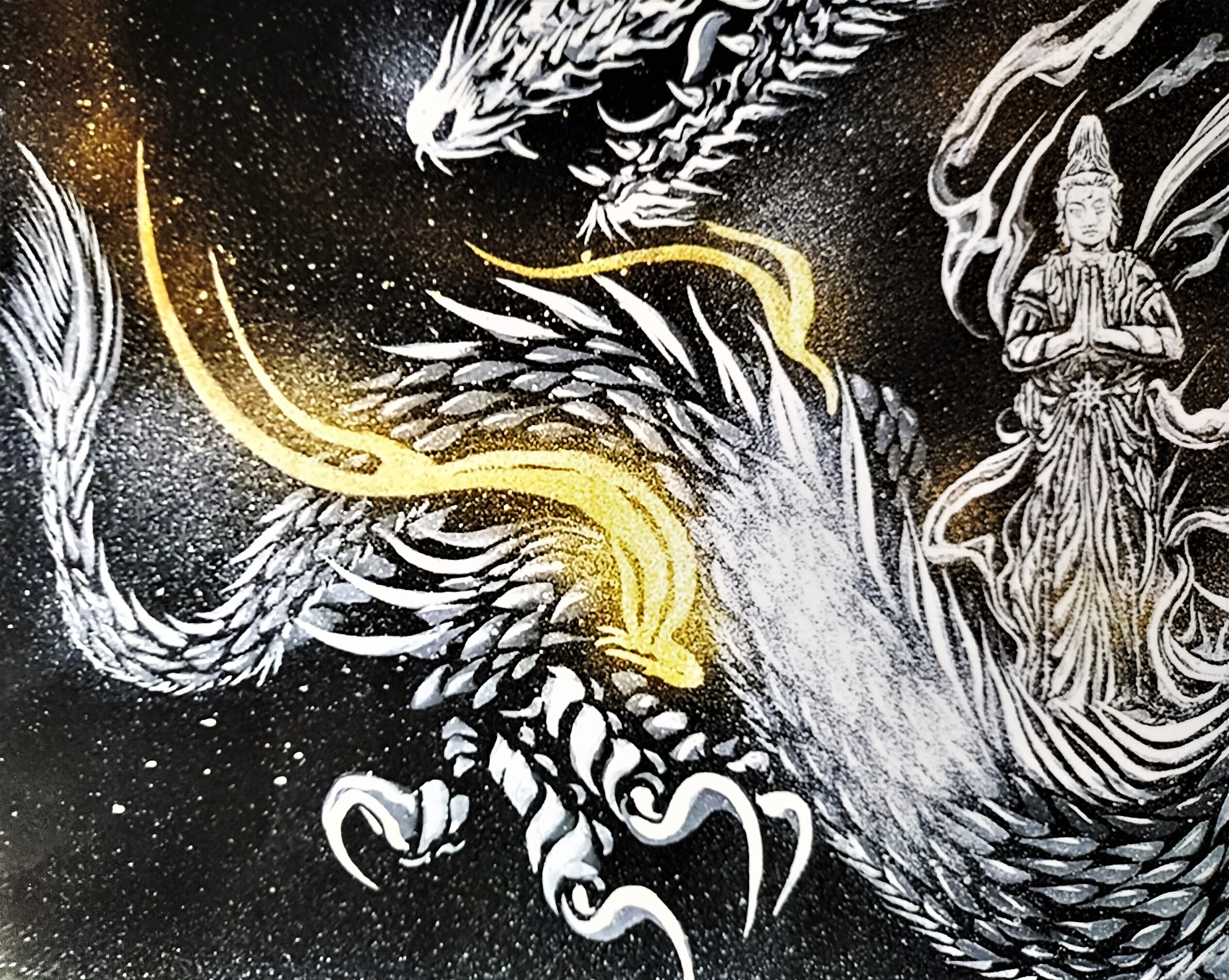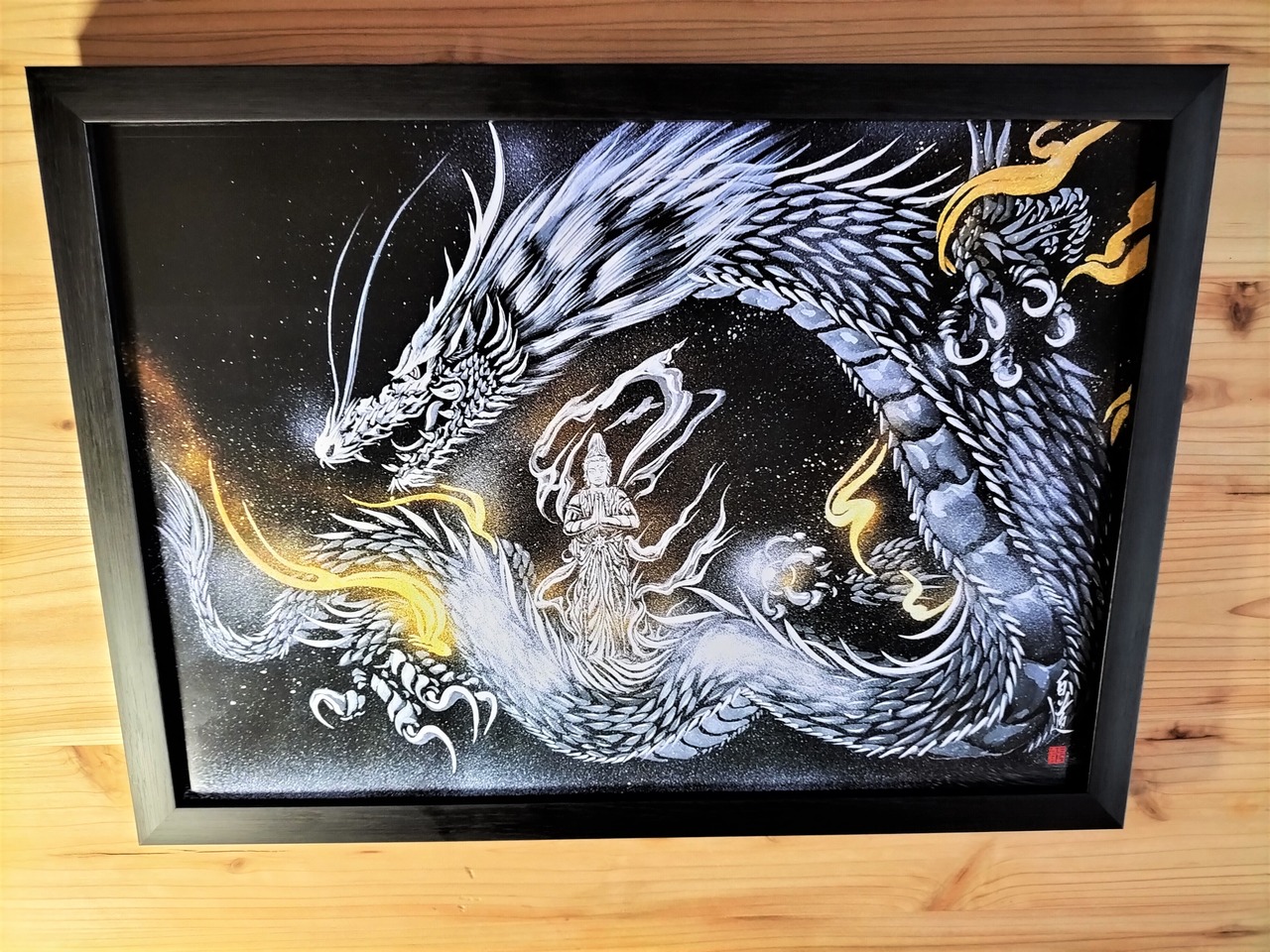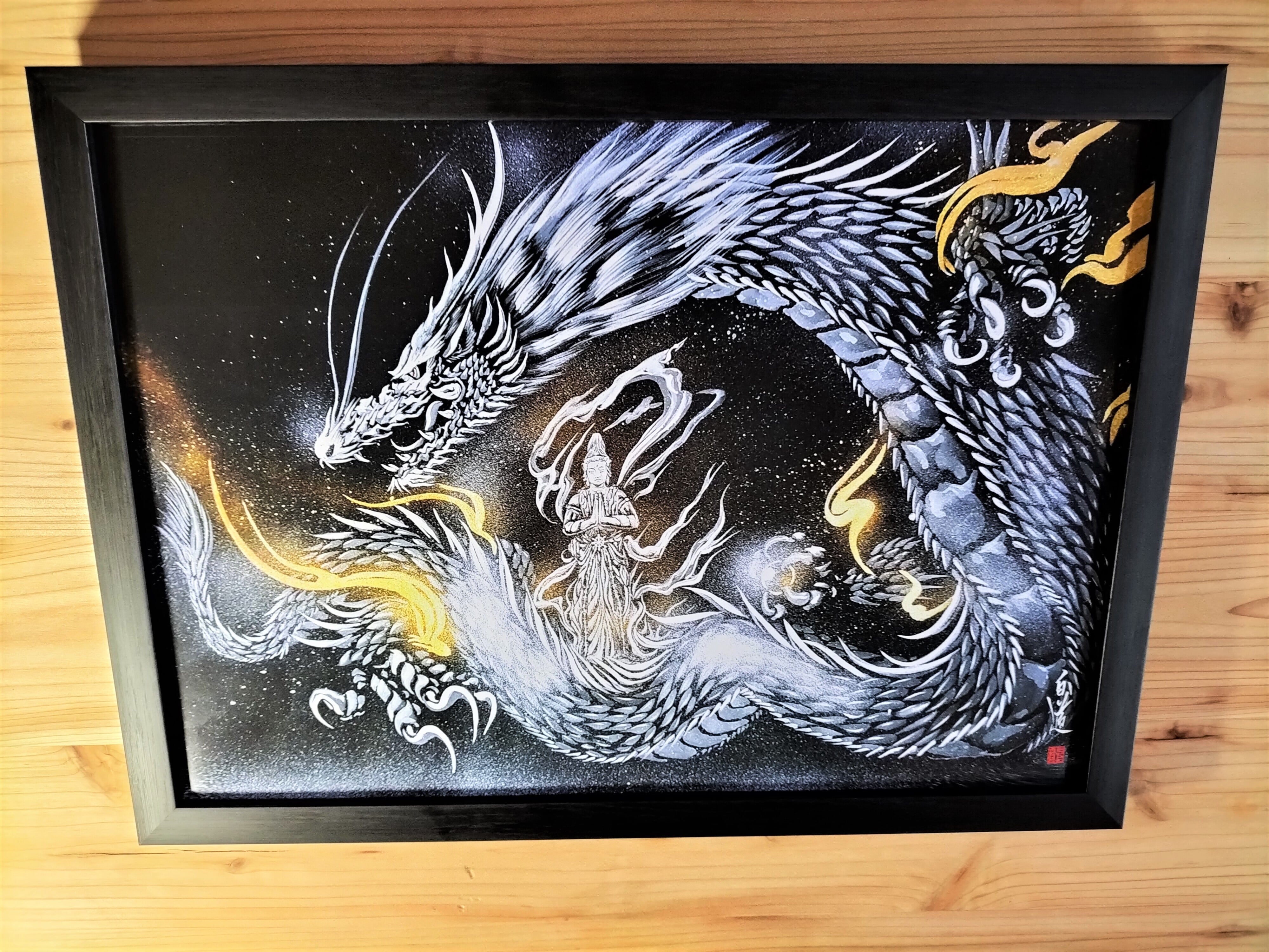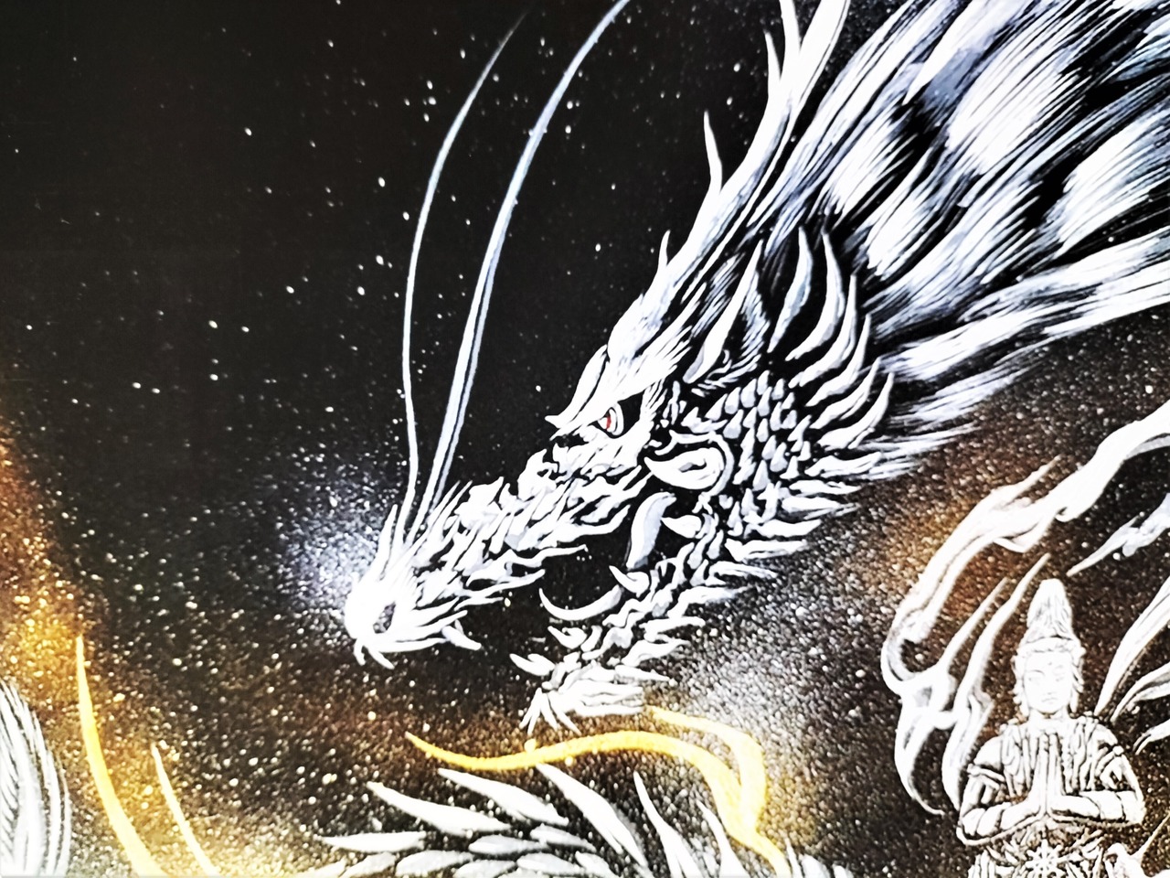 現代芸術家☆絵師白道 「普賢菩薩と白龍」(複製画) 直筆サインあり /Hakudou 絵 絵画 龍 仏 送料無料♪