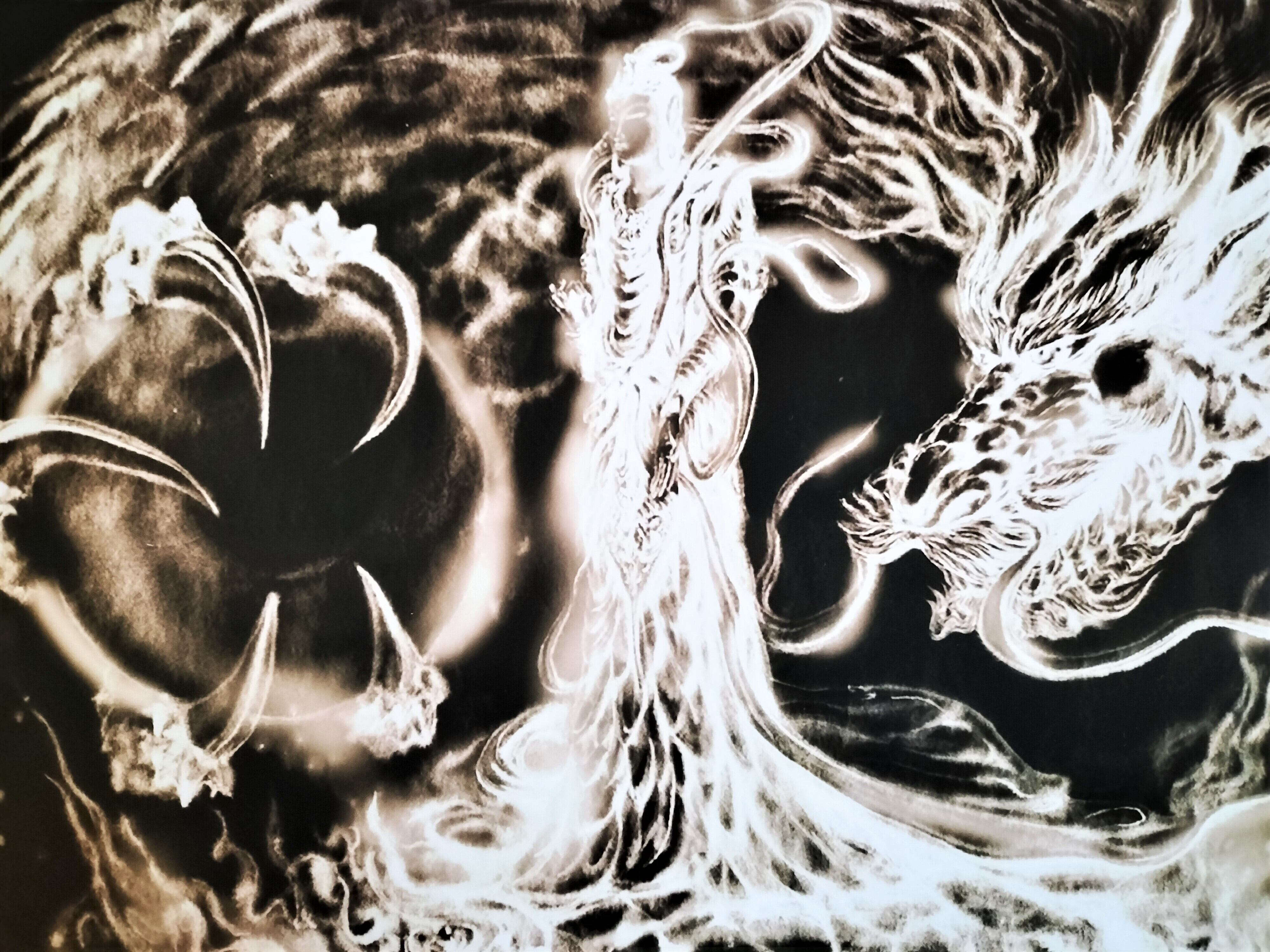 現代芸術家 絵師白道 「龍乗融合観音 光」(複製画) 直筆サインあり /Hakudouroom. ART 観音様 仏 龍 絵 絵画 送料無料♪