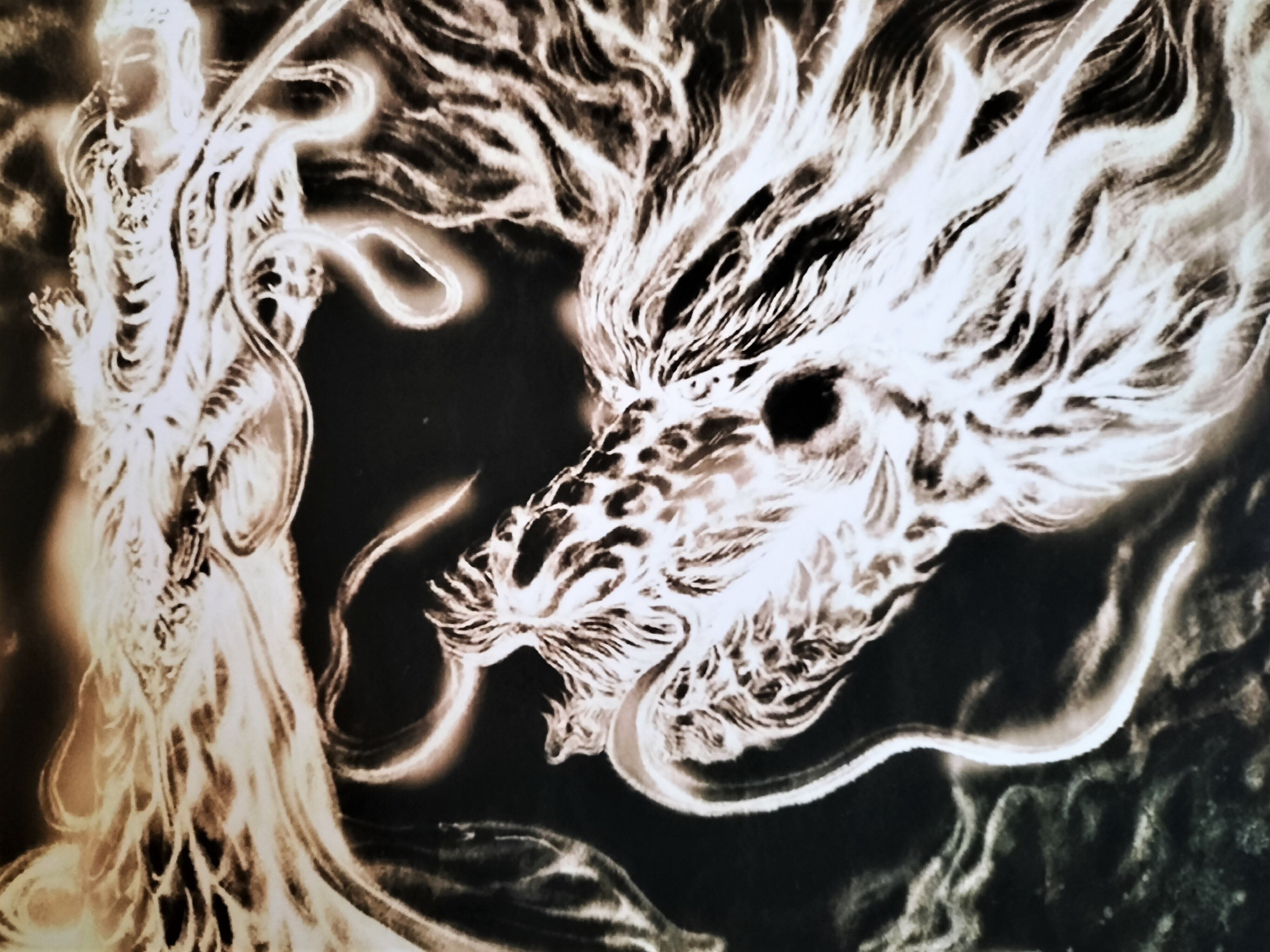一粒の希望を持ち前に龍と共に進む姿を描いています。