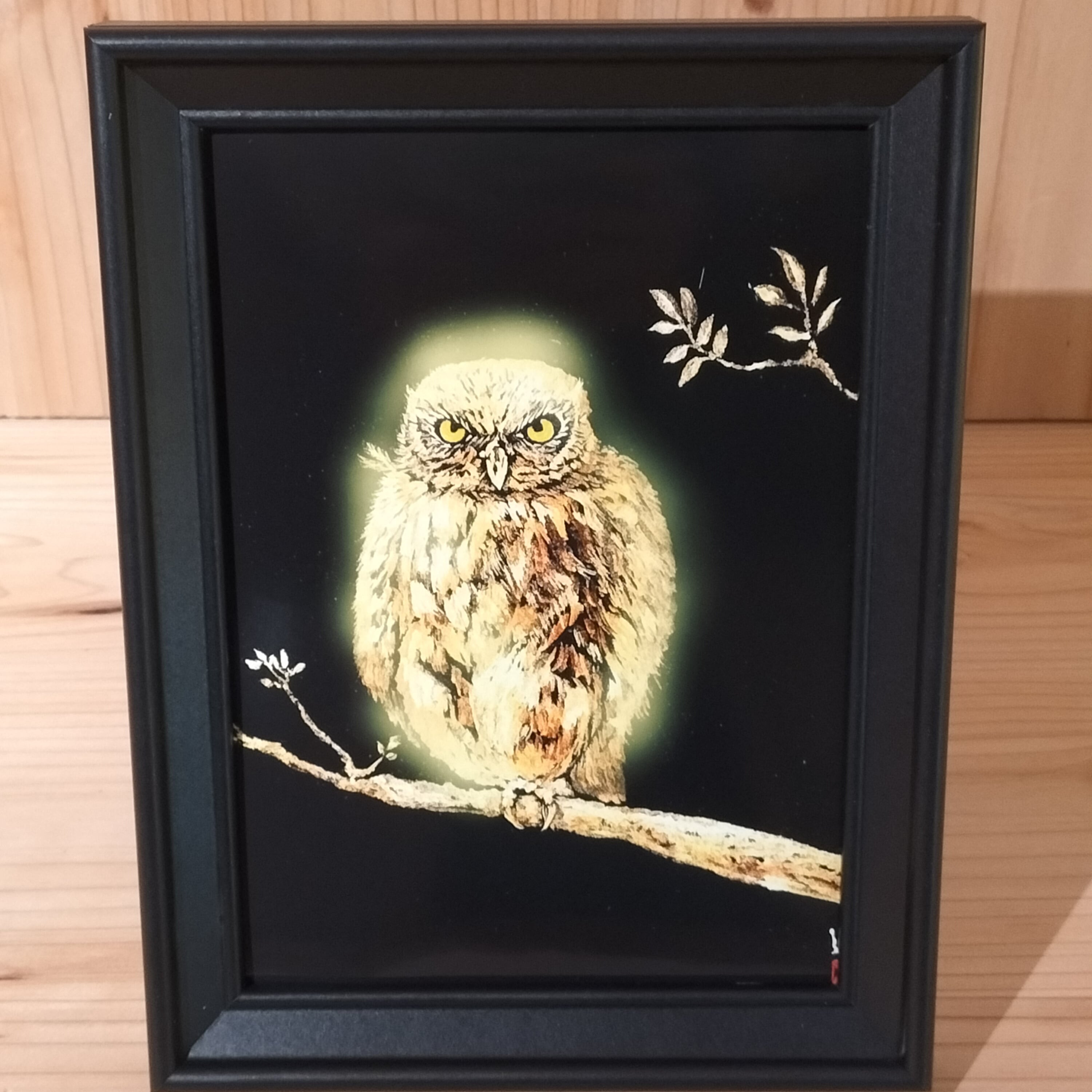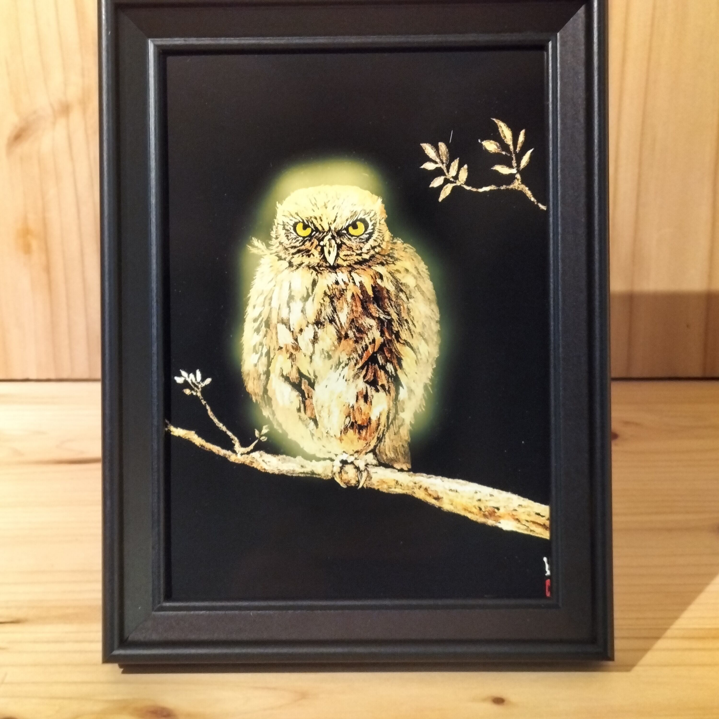 現代芸術家☆絵師白道 「金フクロウ」(複製画)2L 直筆サインあり /Hakudouroom. ART Hakudou 絵 絵画 送料無料♪