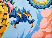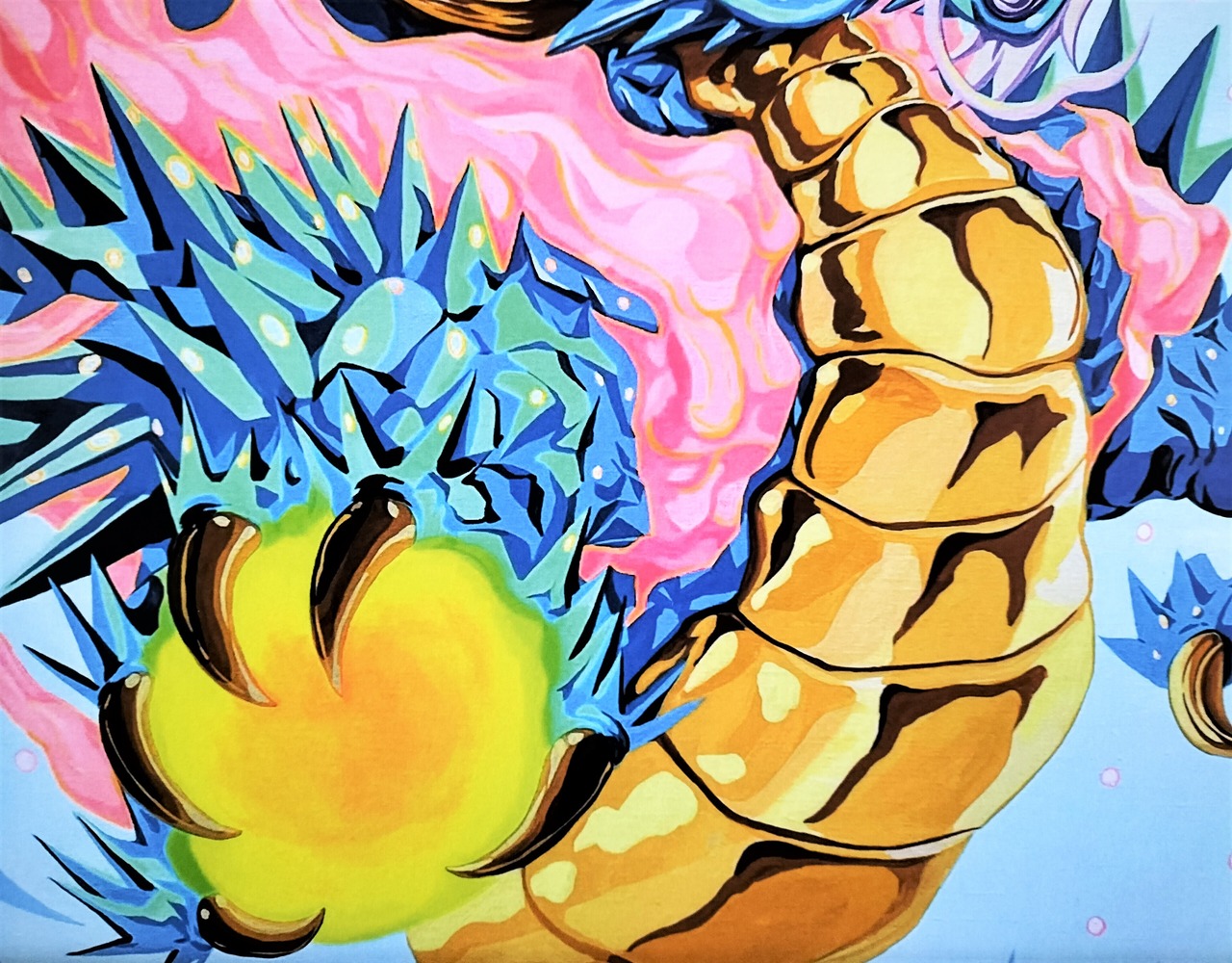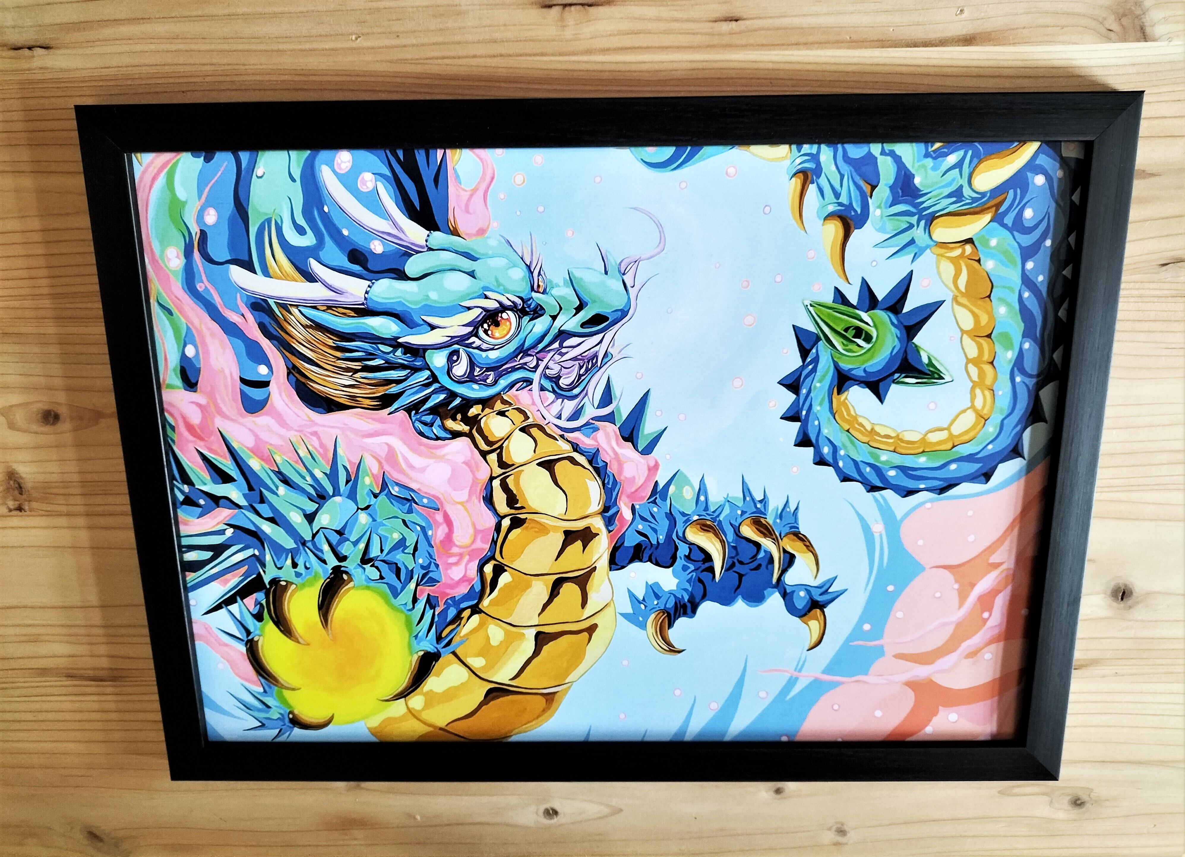 ☆現代芸術家 絵師白道 「Pinky Dragon Light blue」(複製画) 直筆サインあり / ART 龍 絵 絵画 送料無料♪
