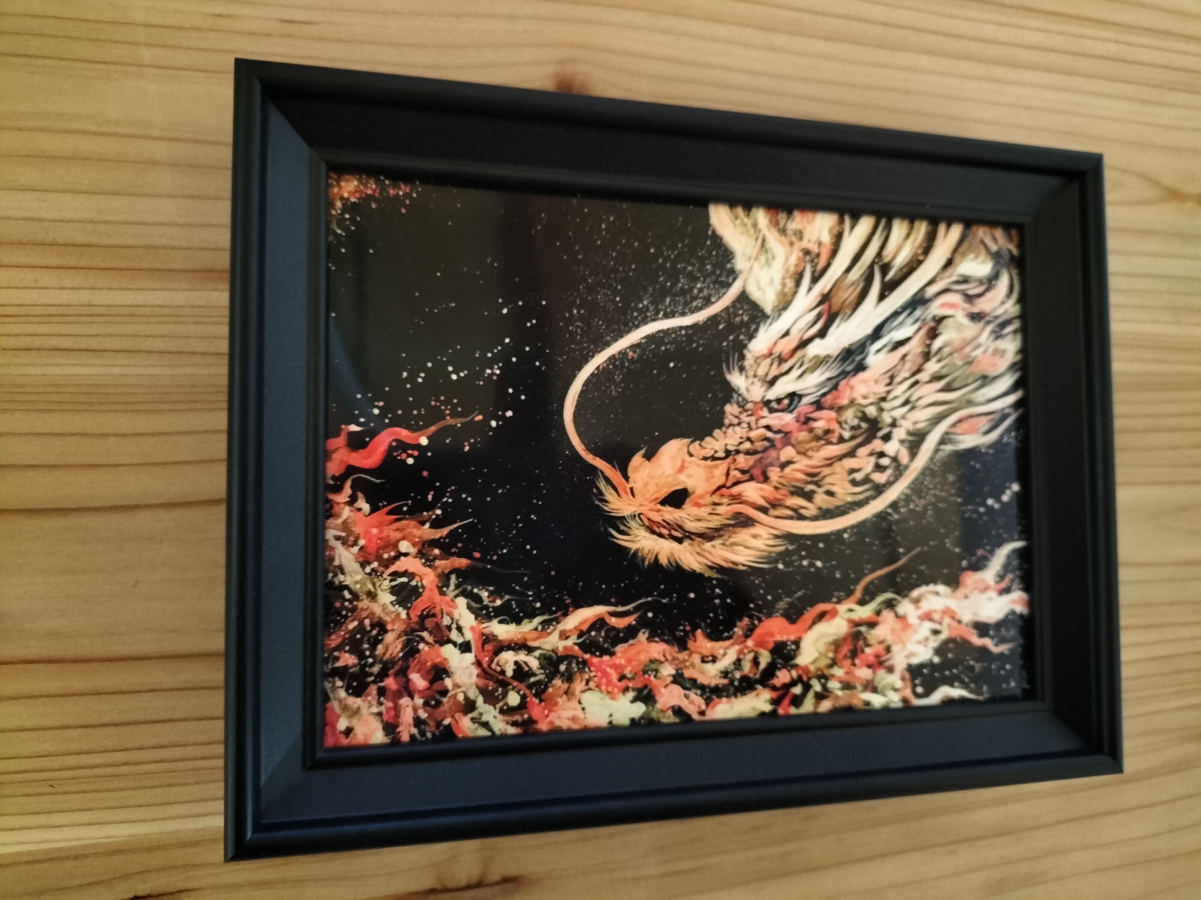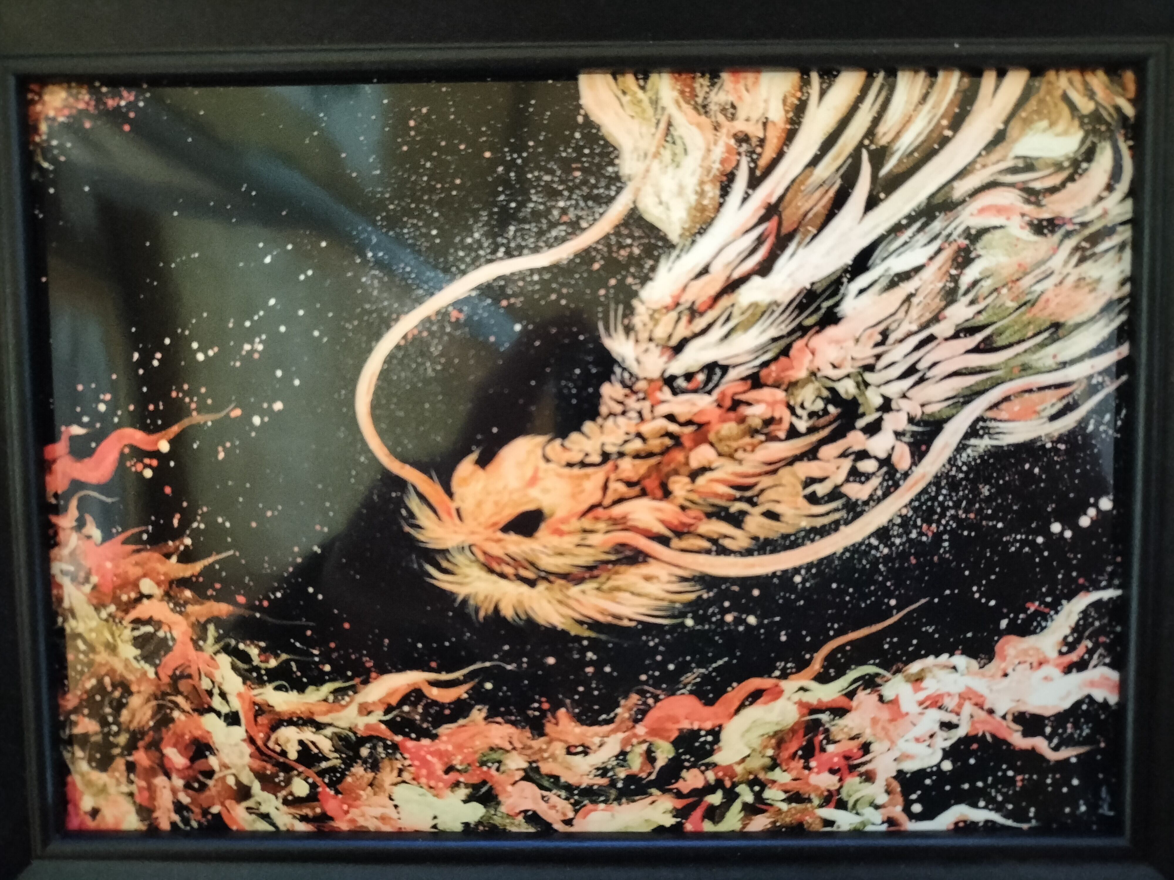 現代水墨画家 絵師白道 「炎龍 2」(複製画) 直筆サインあり /Hakudouroom. ART Hakudou 絵 絵画