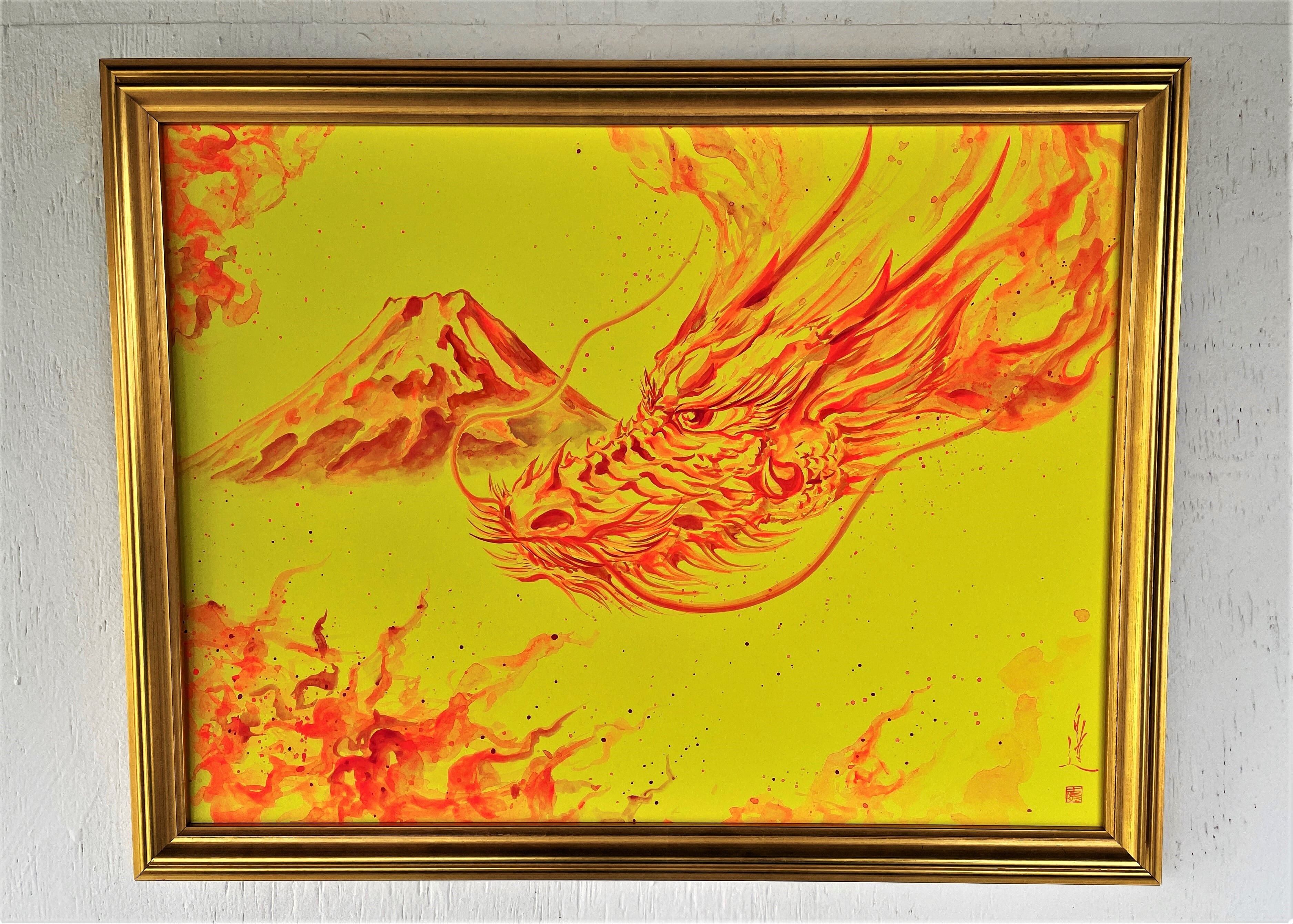 「Yellow Dragon 幸福の黄龍」(赤富士)(直筆作品)