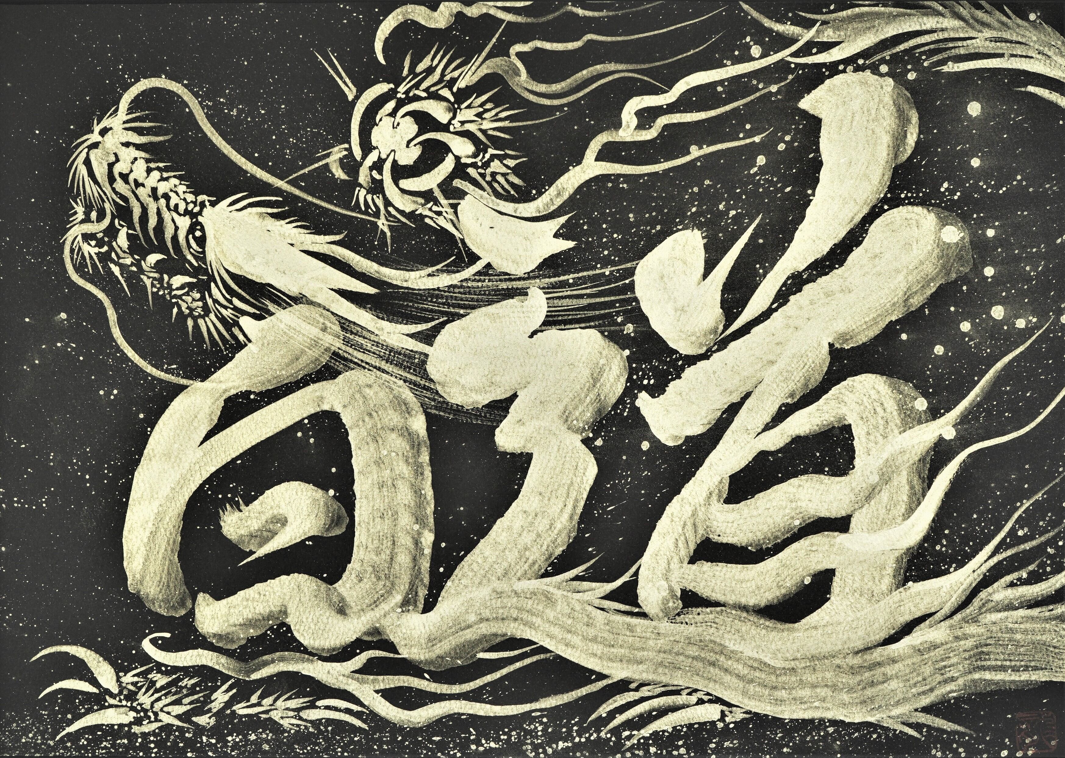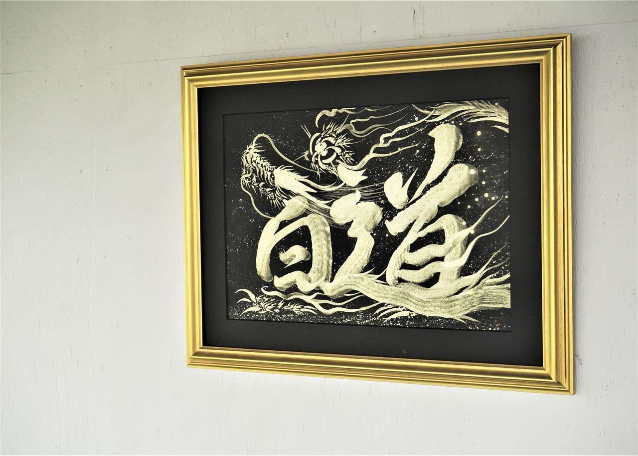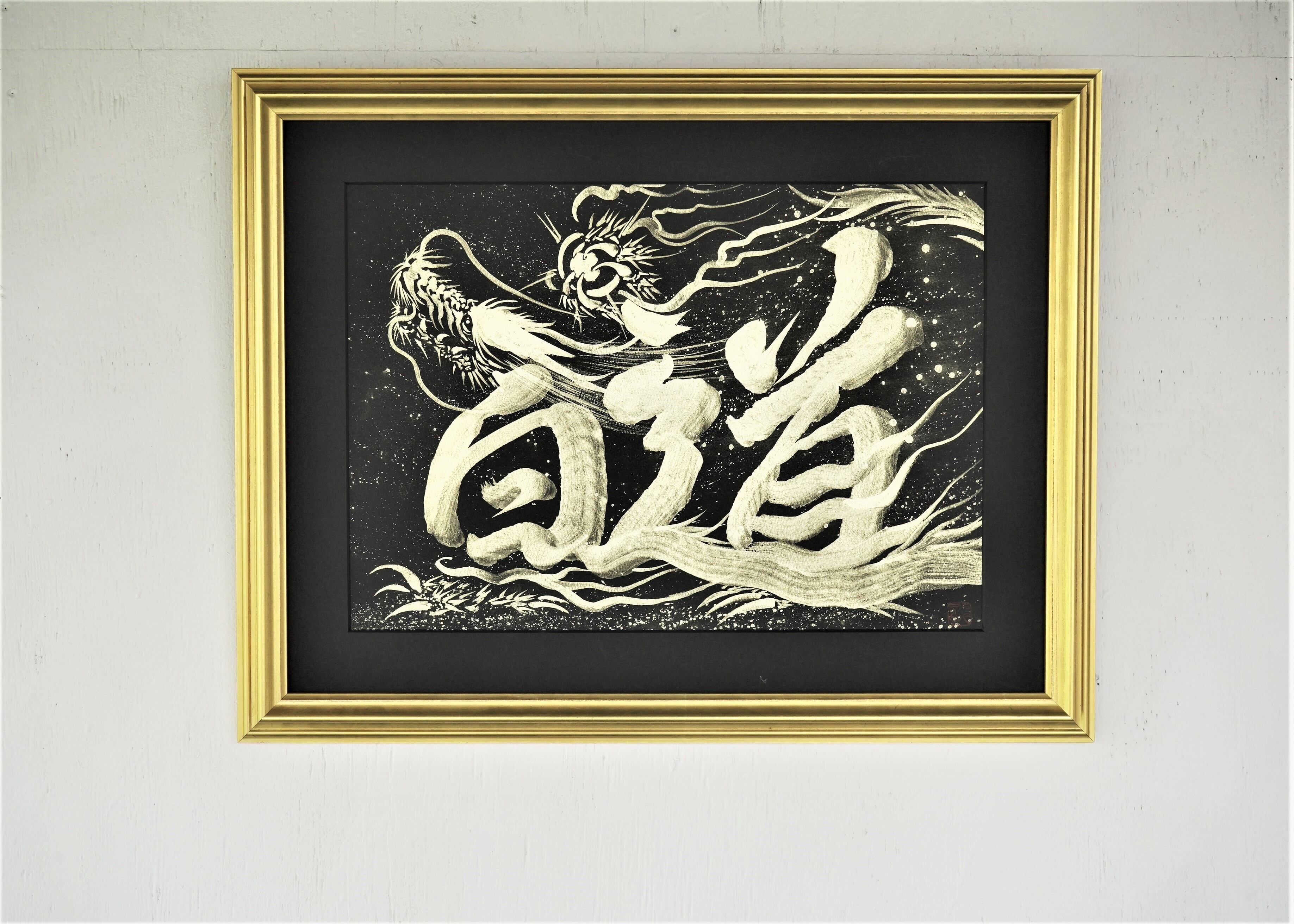 ☆「一筆姓名龍」(直筆作品) オーダーメイド A3サイズ /Hakudouroom. Hakudou ART 現代アート 龍 絵 書 送料無料♪