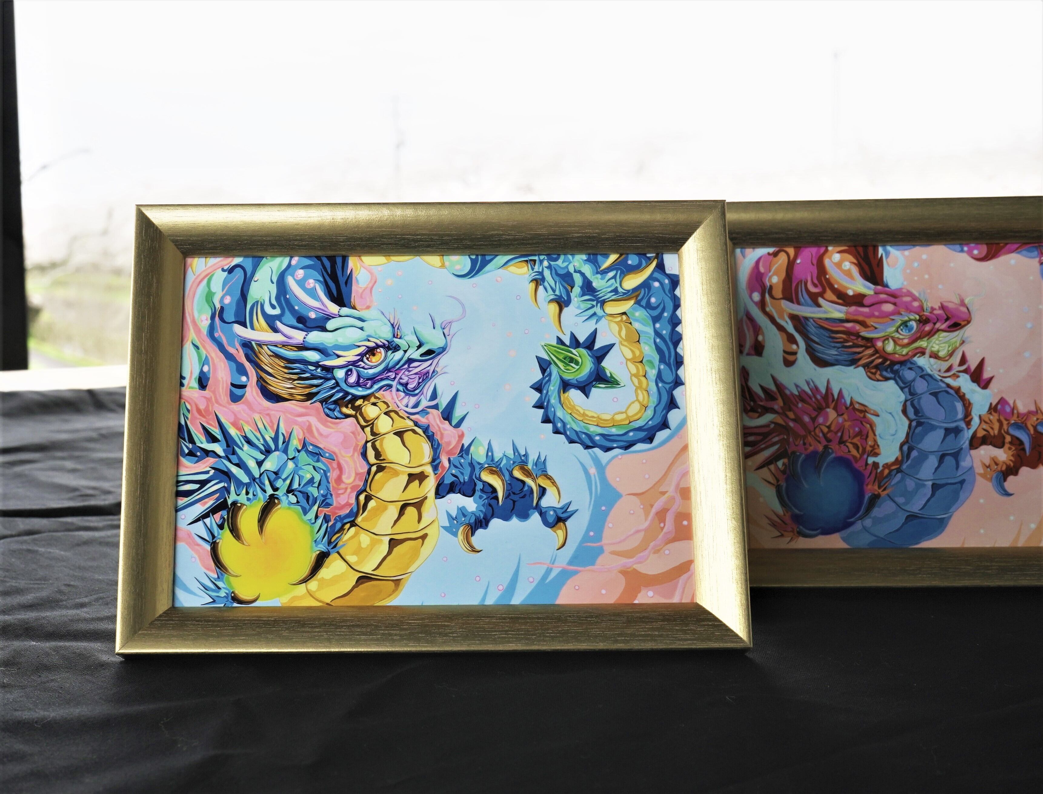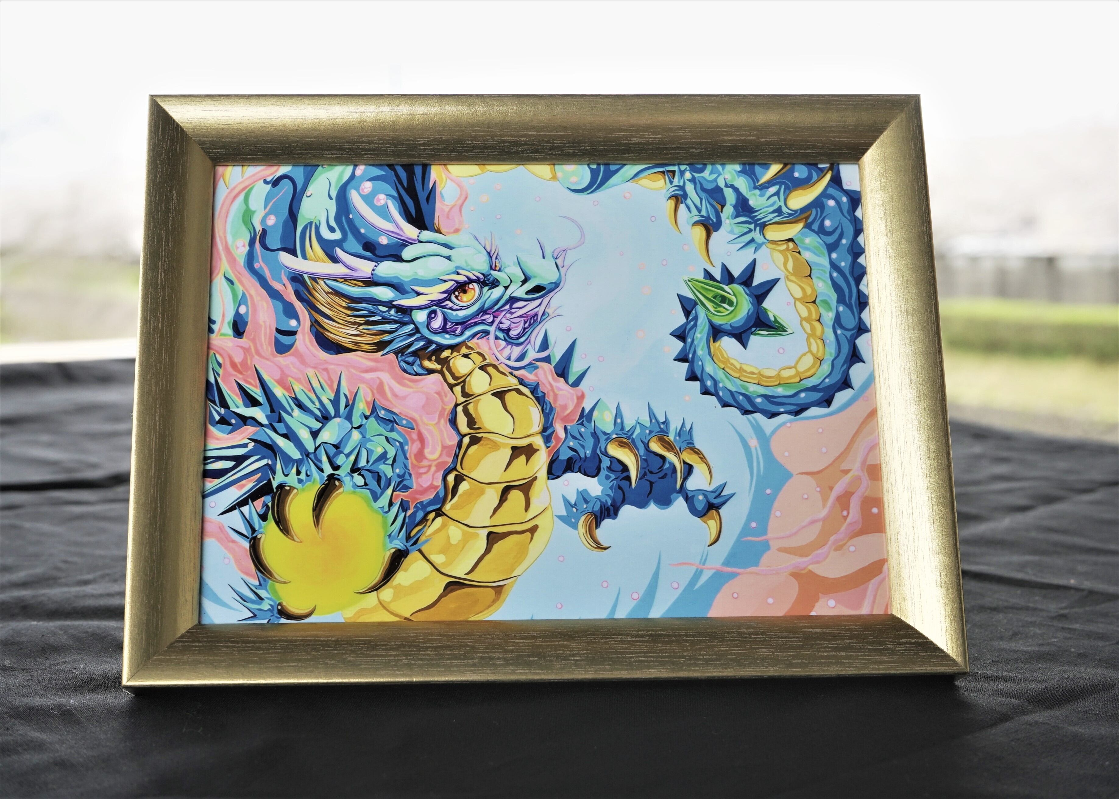 龍年フェア☆現代芸術家 絵師白道 「Pinky Dragon (light blue)」(複製画) 直筆サインあり /現代アート ART 龍 絵 絵画 送料無料♪