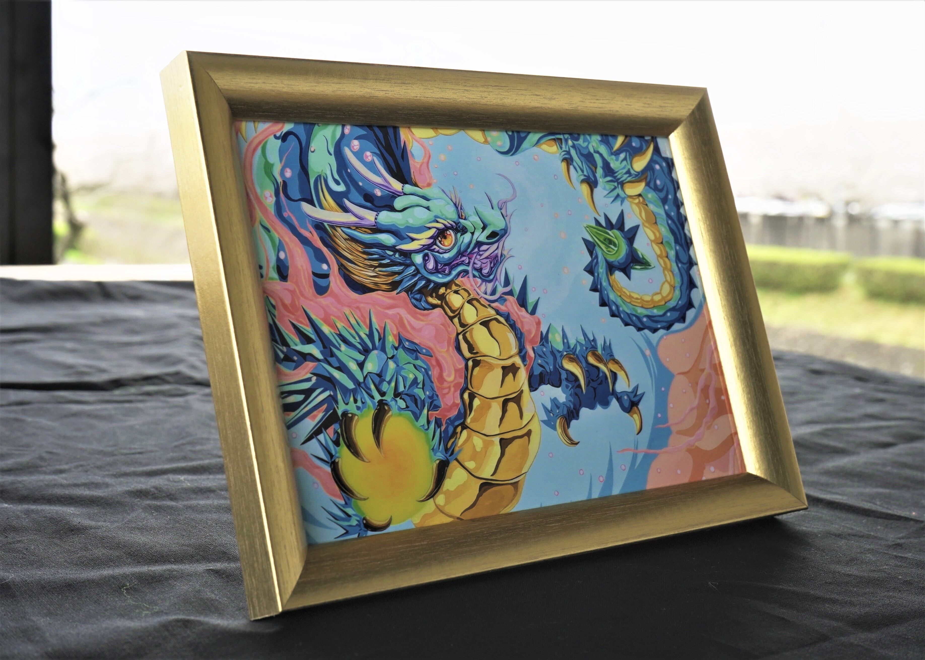 【龍年フェア開催中】現代アートの絵師白道氏原画「Pinky W Dragon」が複製画で登場!特別な龍年にぴったりの一枚です♪繊細なタッチで描かれたドラゴンは、背中にピンクの花を背負っています。どことなく可愛らしさも感じさせる、白道氏ならではの龍です。プリントされた一枚は、直筆サインも付いており、本物のような迫力を演出します。お部屋のインテリアにぴったり合わせて飾ってみてはいかがでしょうか。