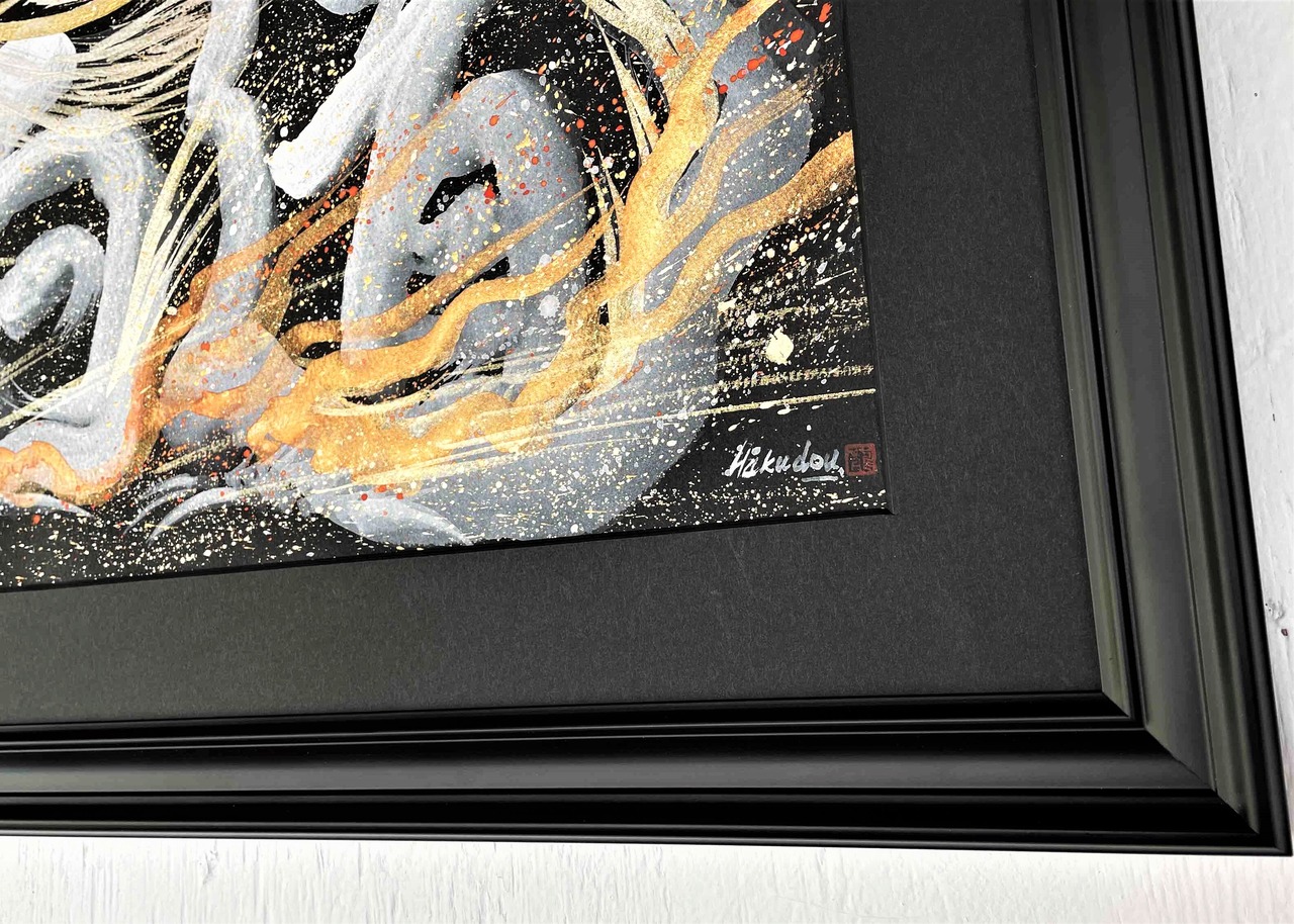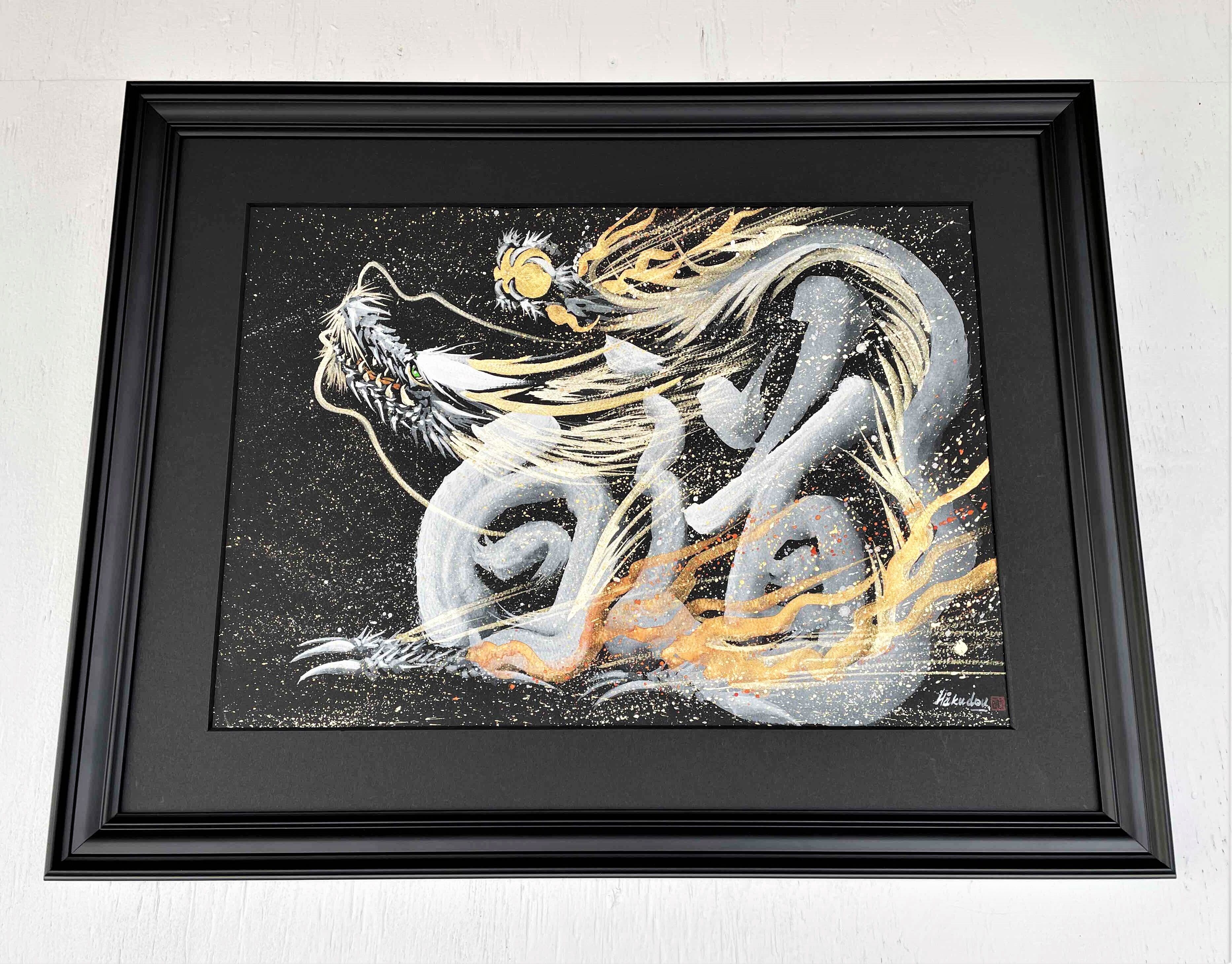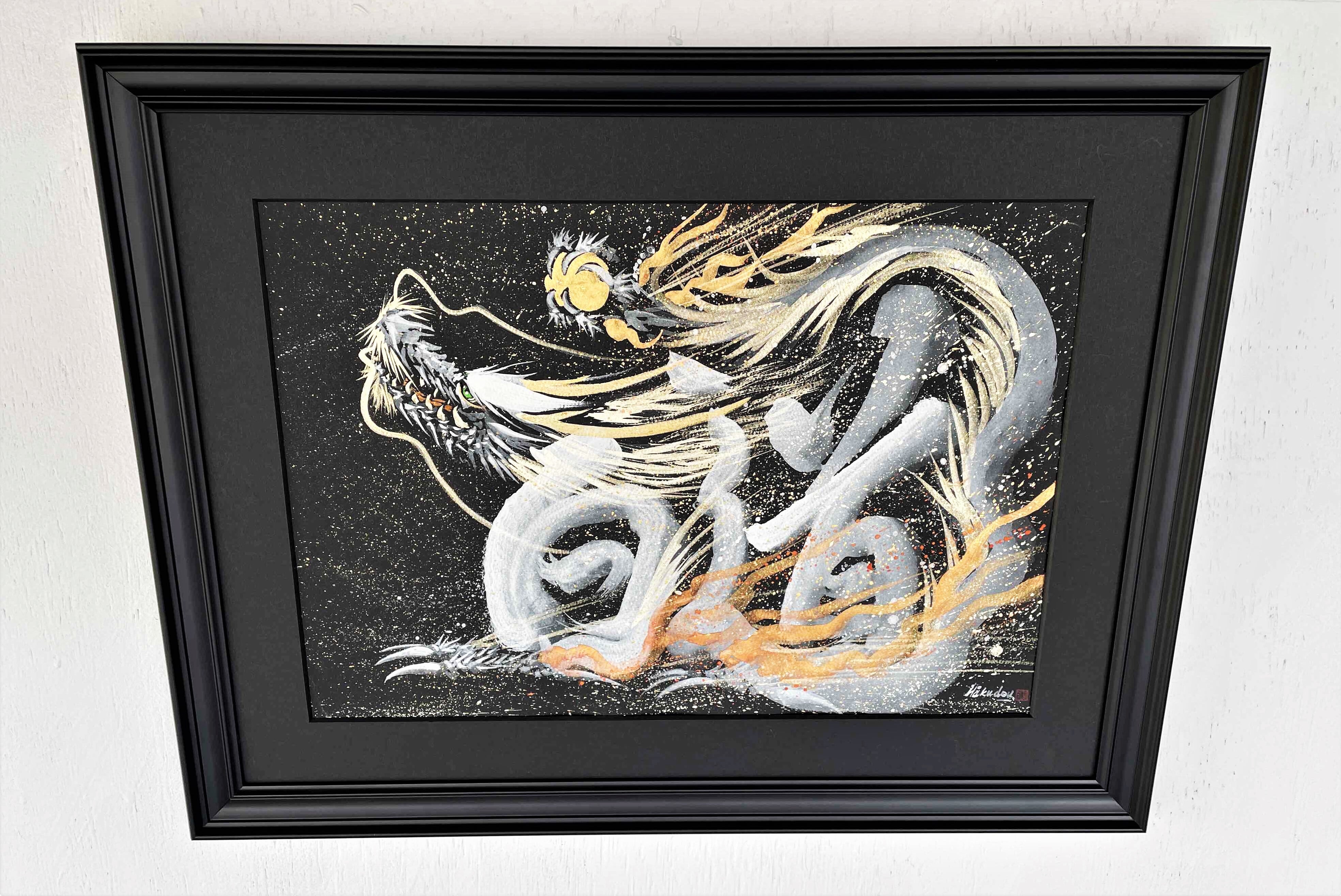 「一筆姓名龍」(フルカラフル)中 直筆作品 オーダーメード 額付き 真筆証明書付