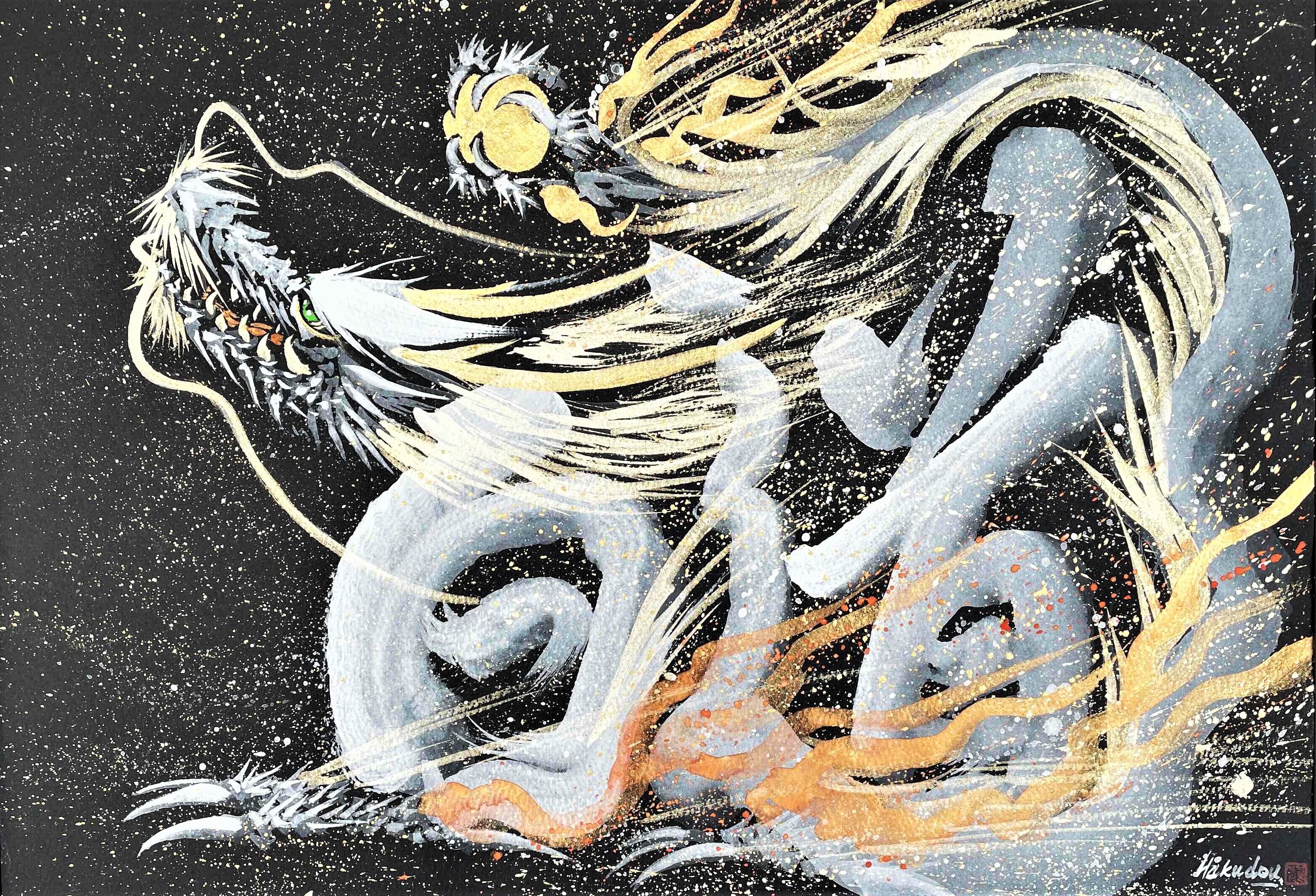 その方が上昇するようにと思いを込めて昇天する龍を絵師白道が描きます。