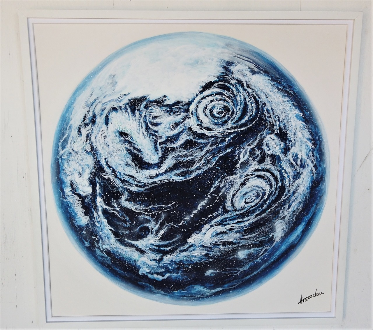 現代水墨画家 絵師白道「Blue Earth Dragon」(直筆作品){直筆証明書付} 現代アート Hakudouroom 龍 絵 絵画