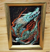 色は千年劣化しないといわれています岩絵の具とアクリル絵具と特殊絵の具を併用しています