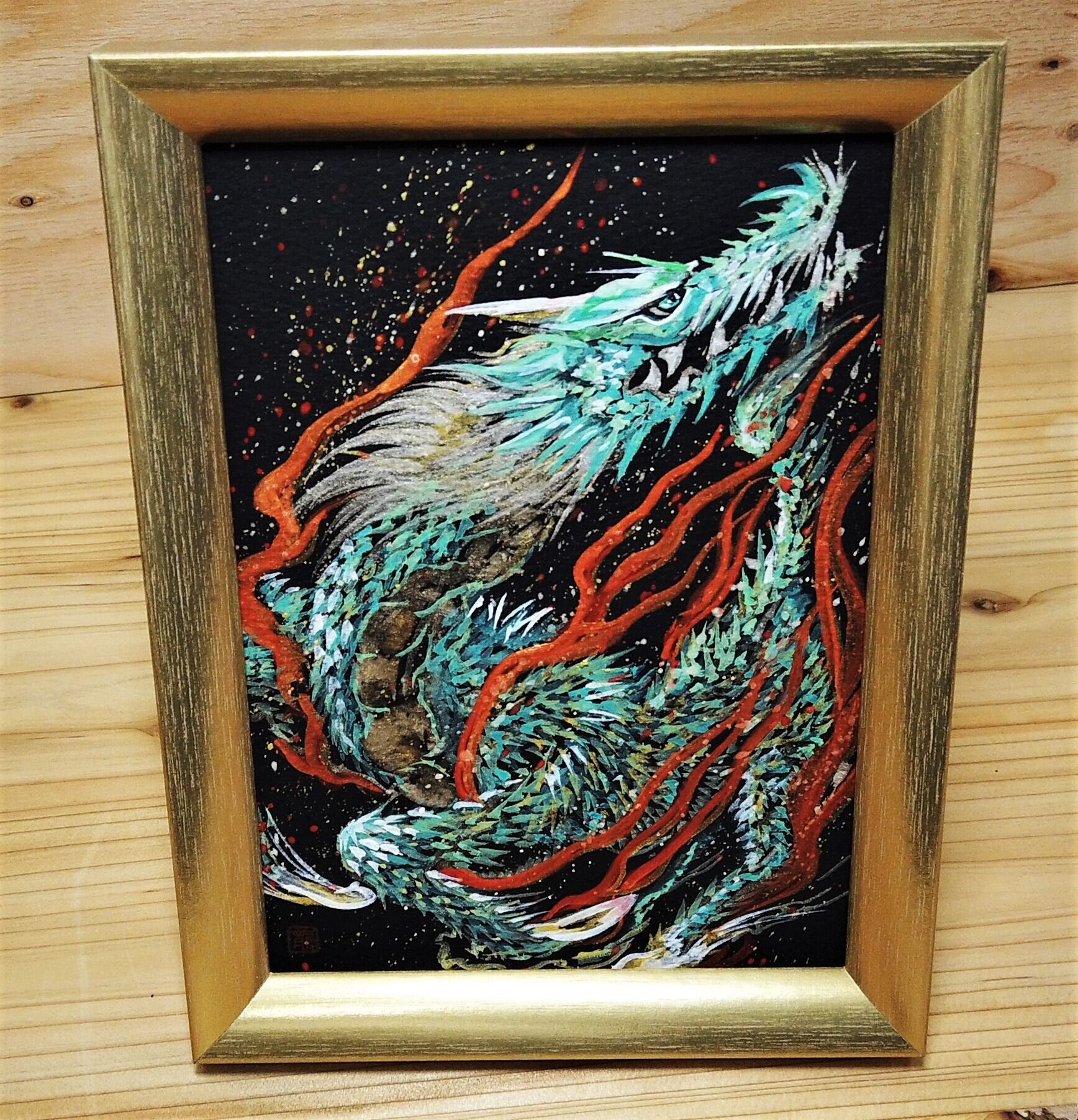 現代水墨画家 絵師白道 MINI「麒麟」五神獣 ・直筆作品 龍 Hakudou 送料無料♪