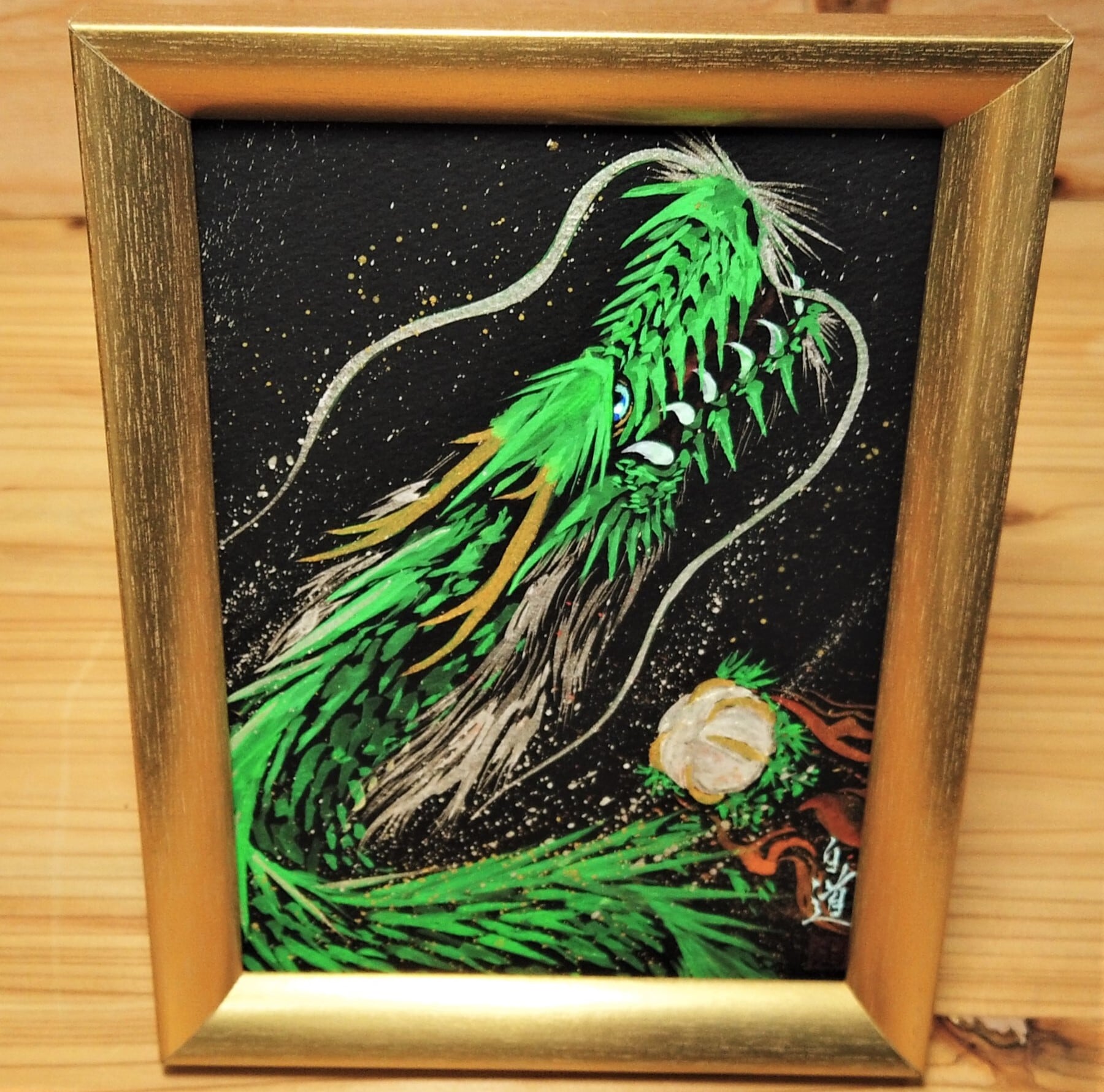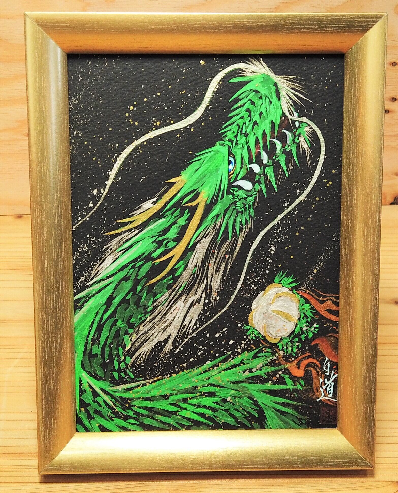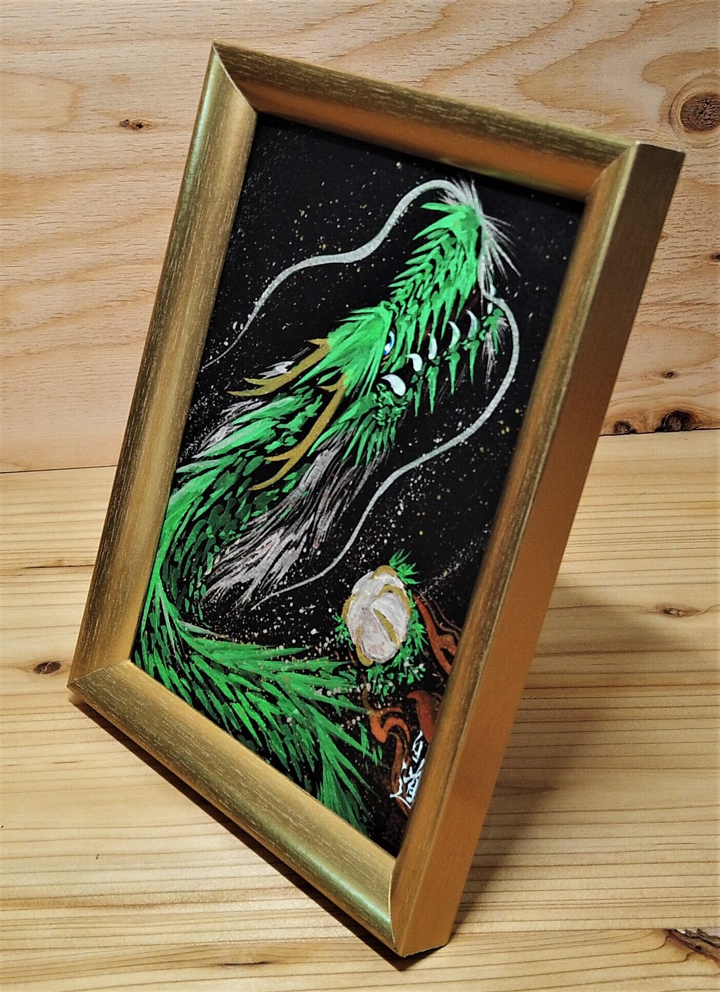 現代水墨画家 絵師白道 MINI「青龍」五神獣 ・直筆作品 龍 辰 干支 Hakudou 送料無料♪