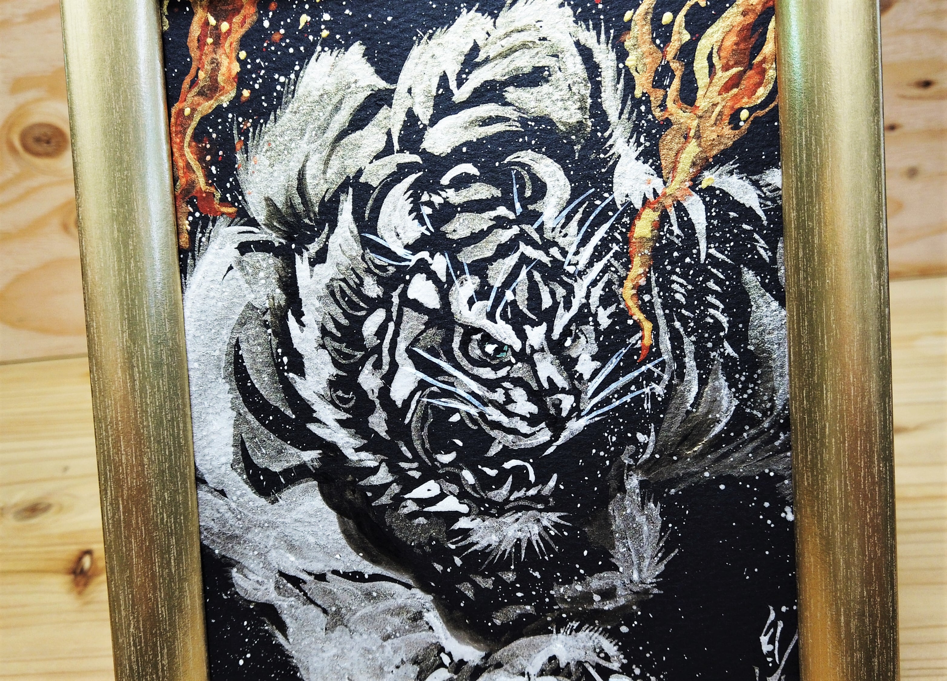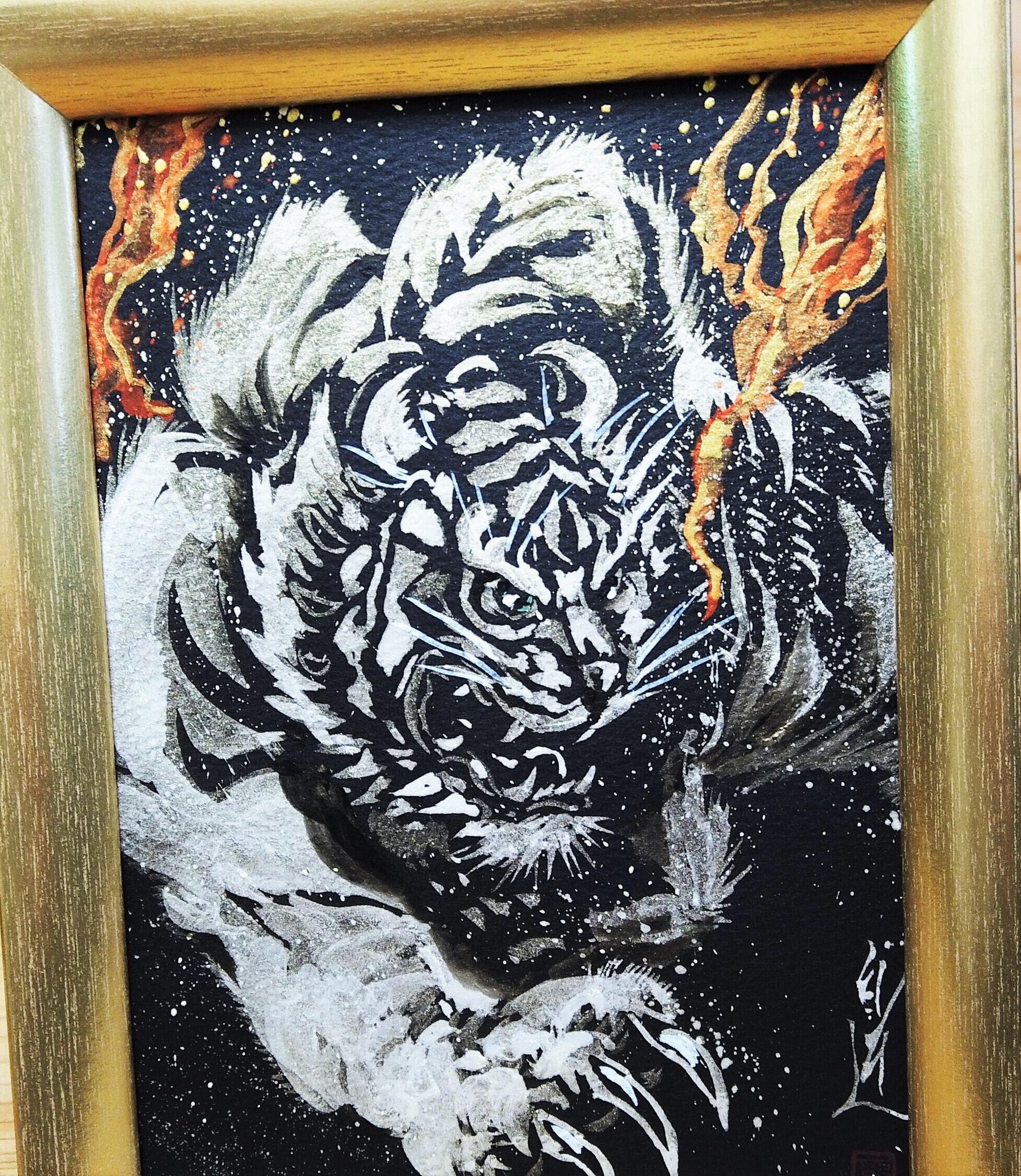 現代水墨画家 絵師白道 MINI「白虎」五神獣 ・直筆作品 虎 Hakudou 送料無料♪