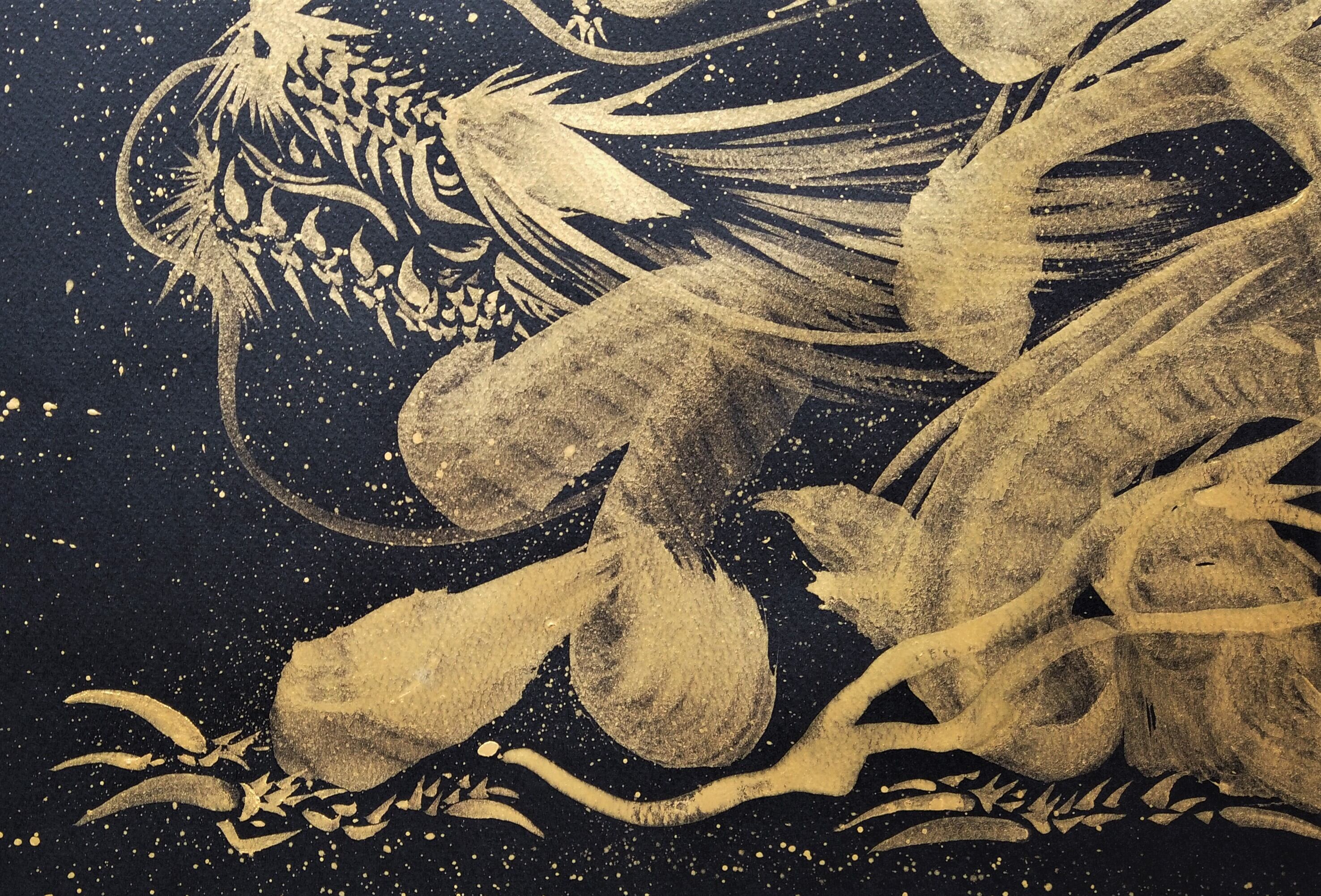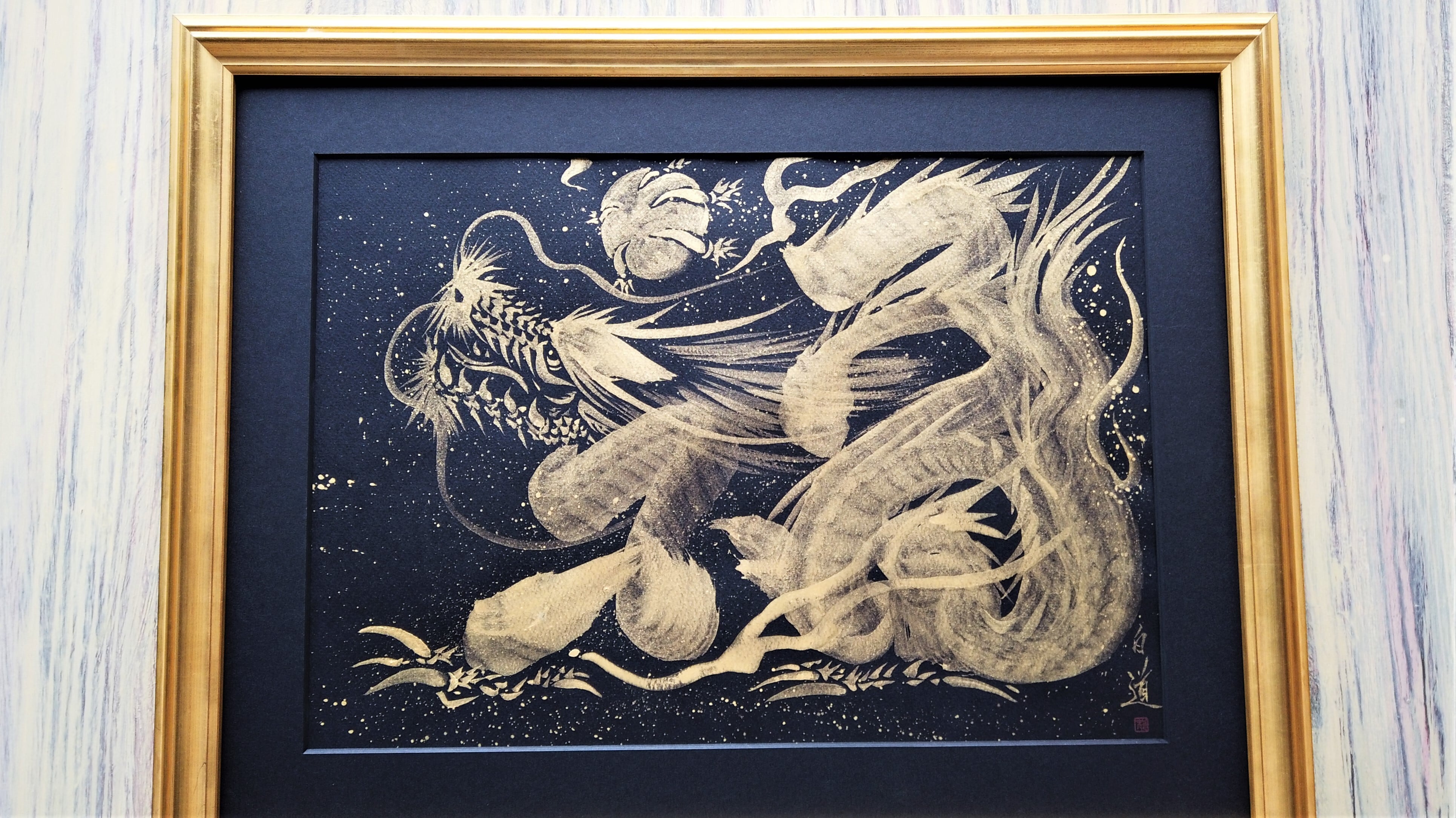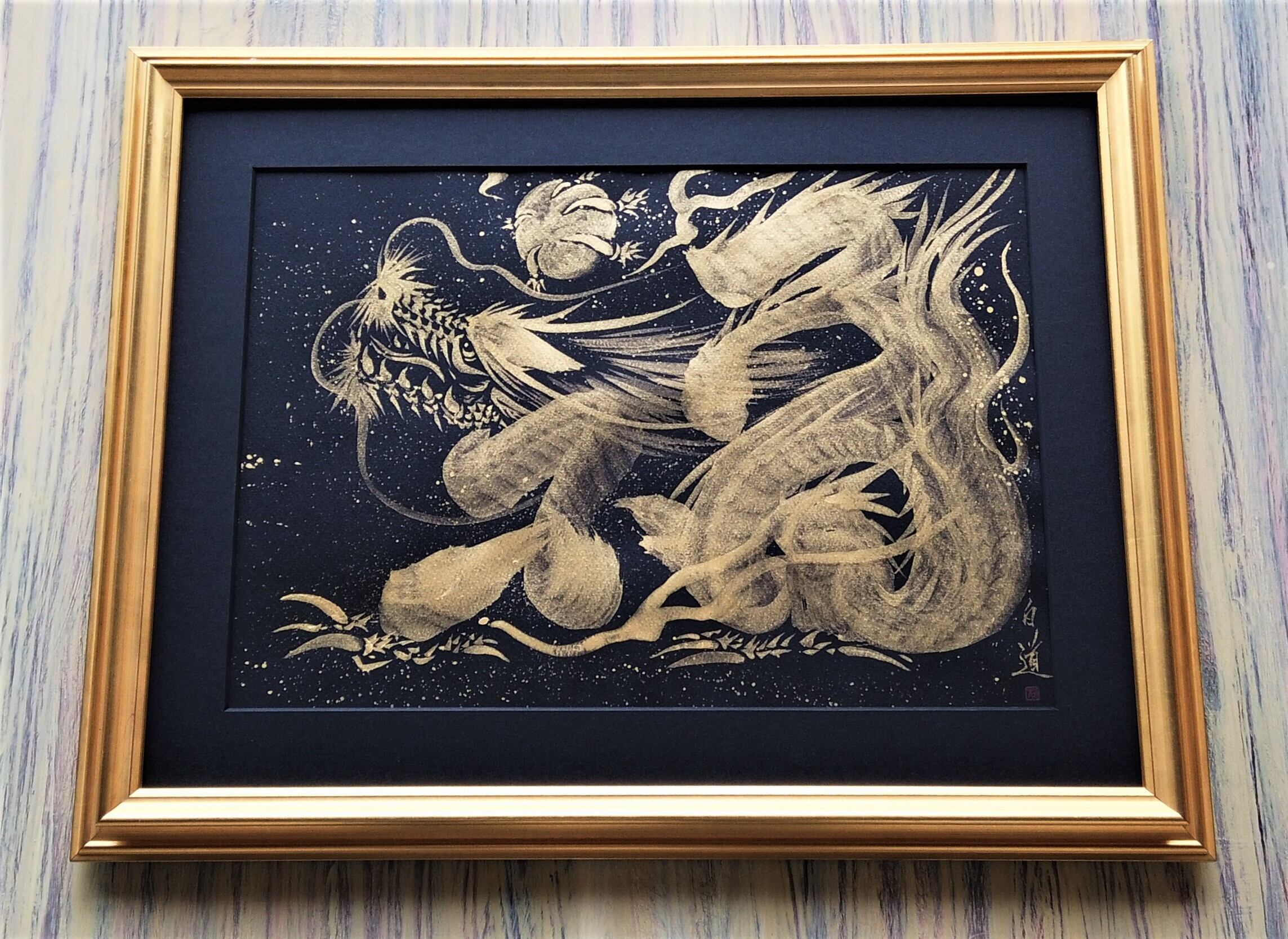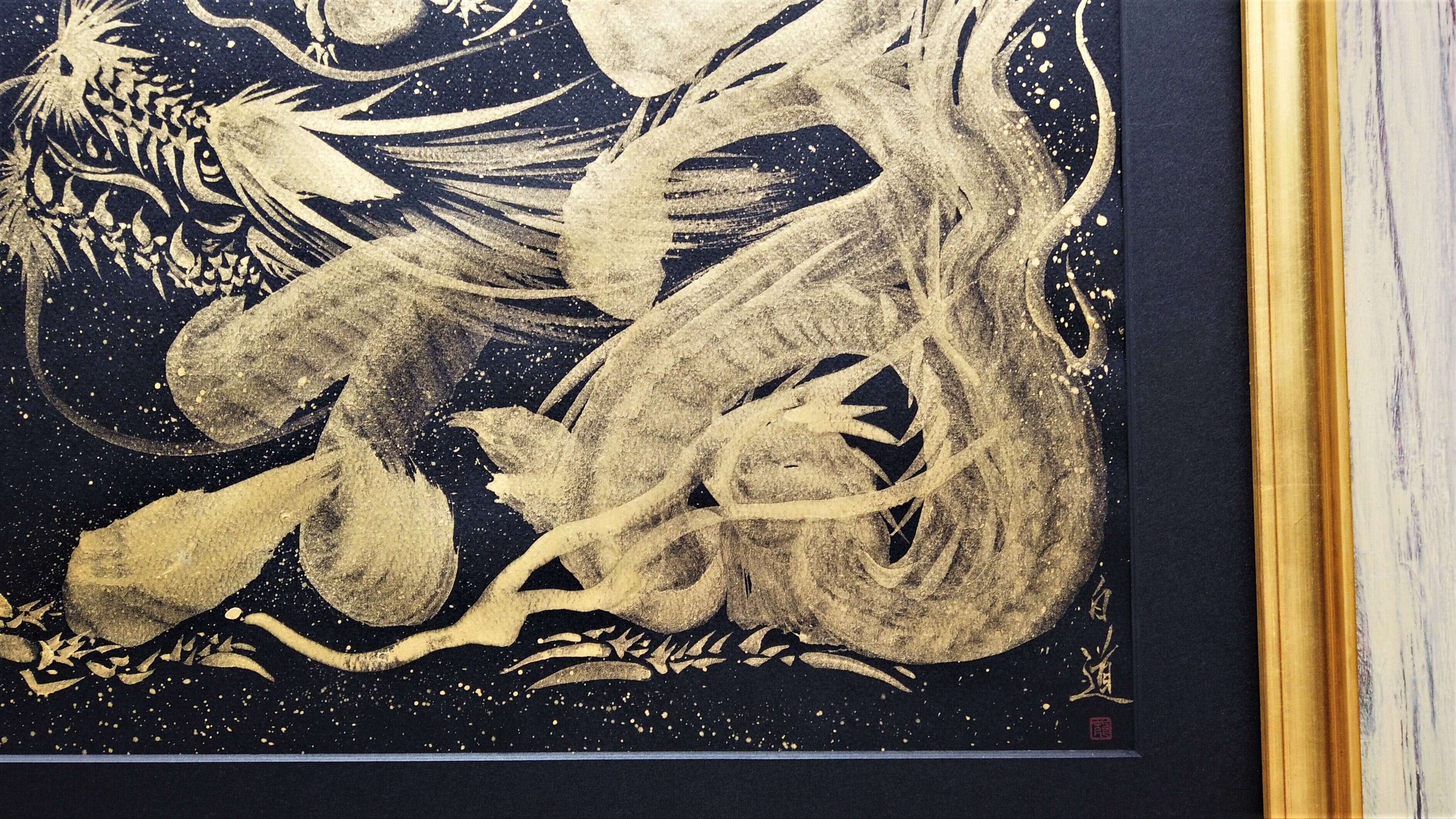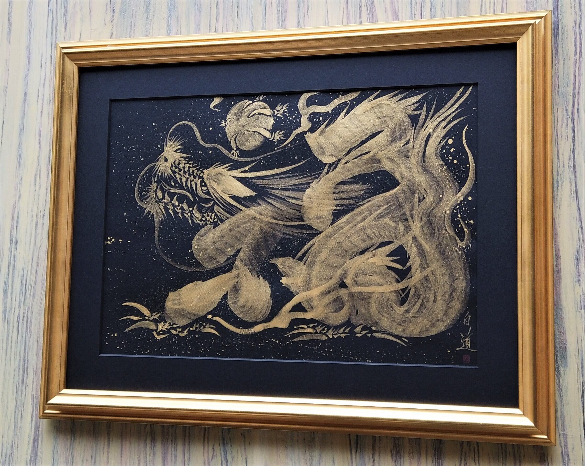 現代水墨画家☆絵師白道「一筆金福龍」直筆作品 真筆証明書付 高級額装 / Hakudouroom. 現代アート 絵画 龍 送料無料♪
