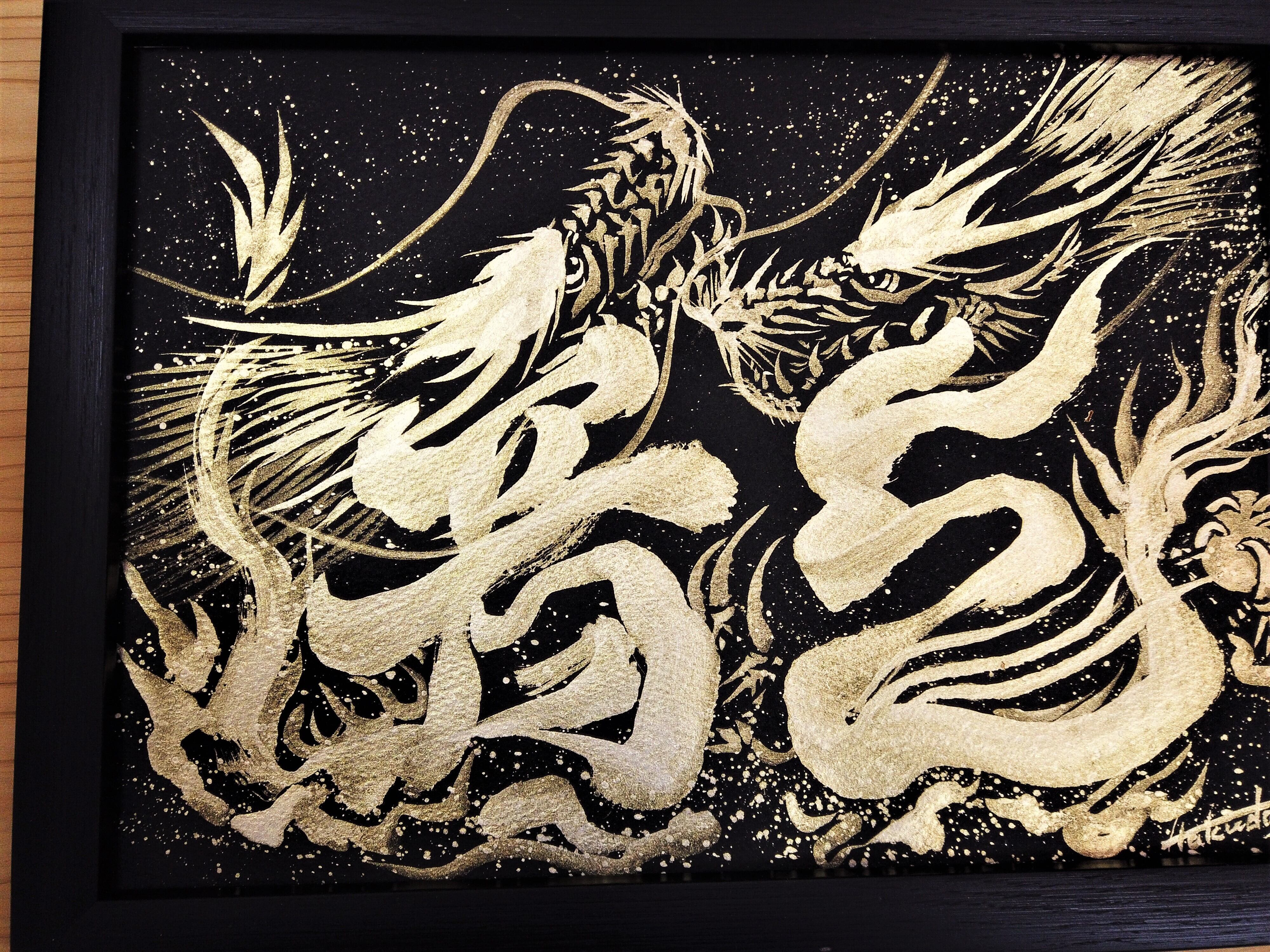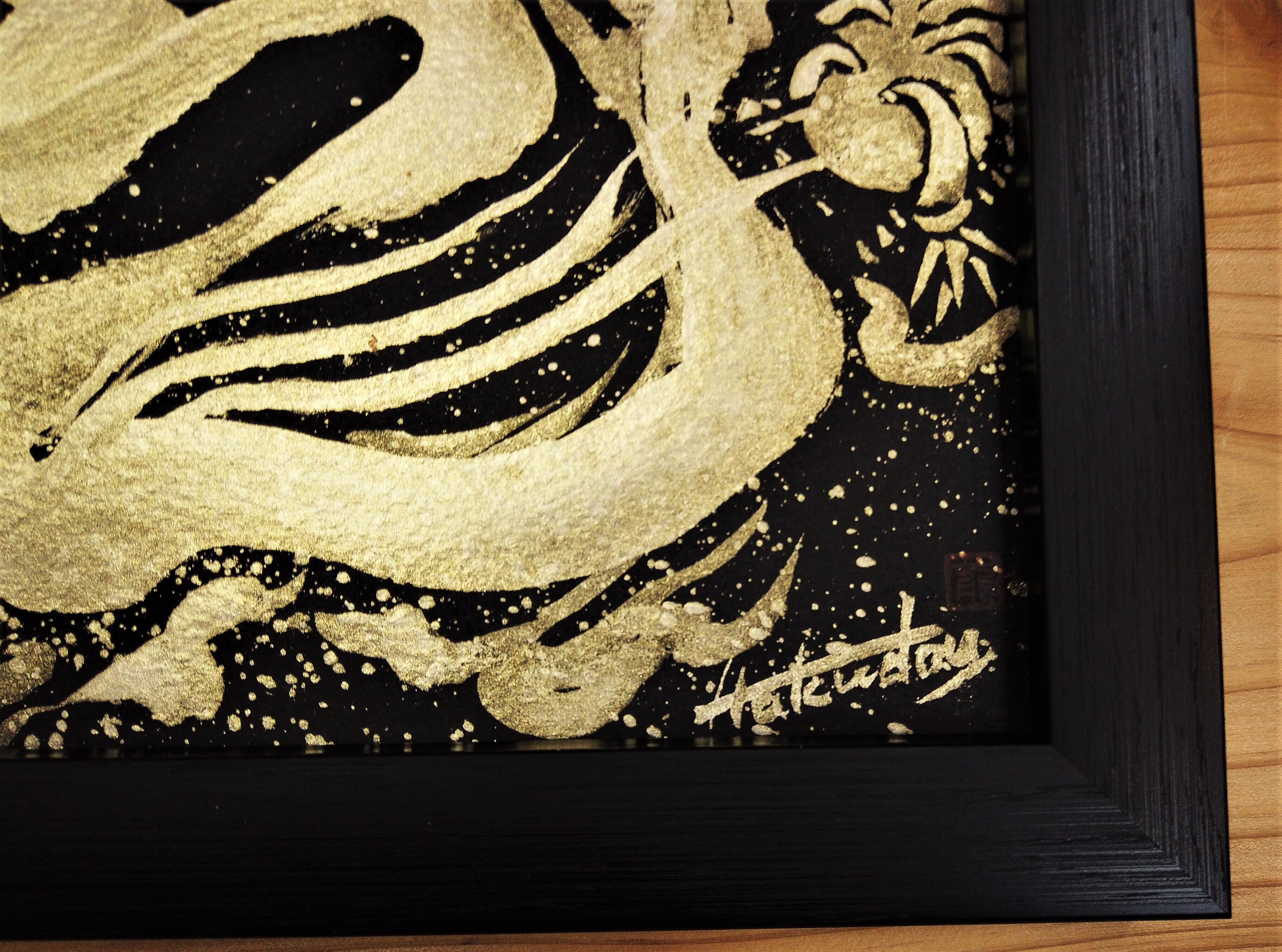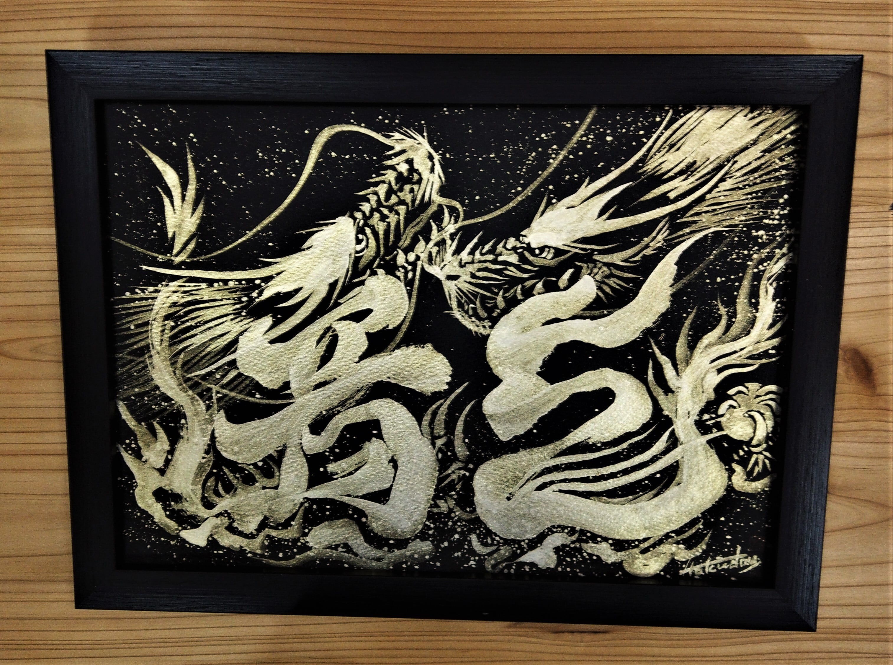 現代水墨画家☆絵師白道 「一筆金銀双龍」 直筆作品 /Hakudouroom. ART Hakudou 絵 絵画 龍
