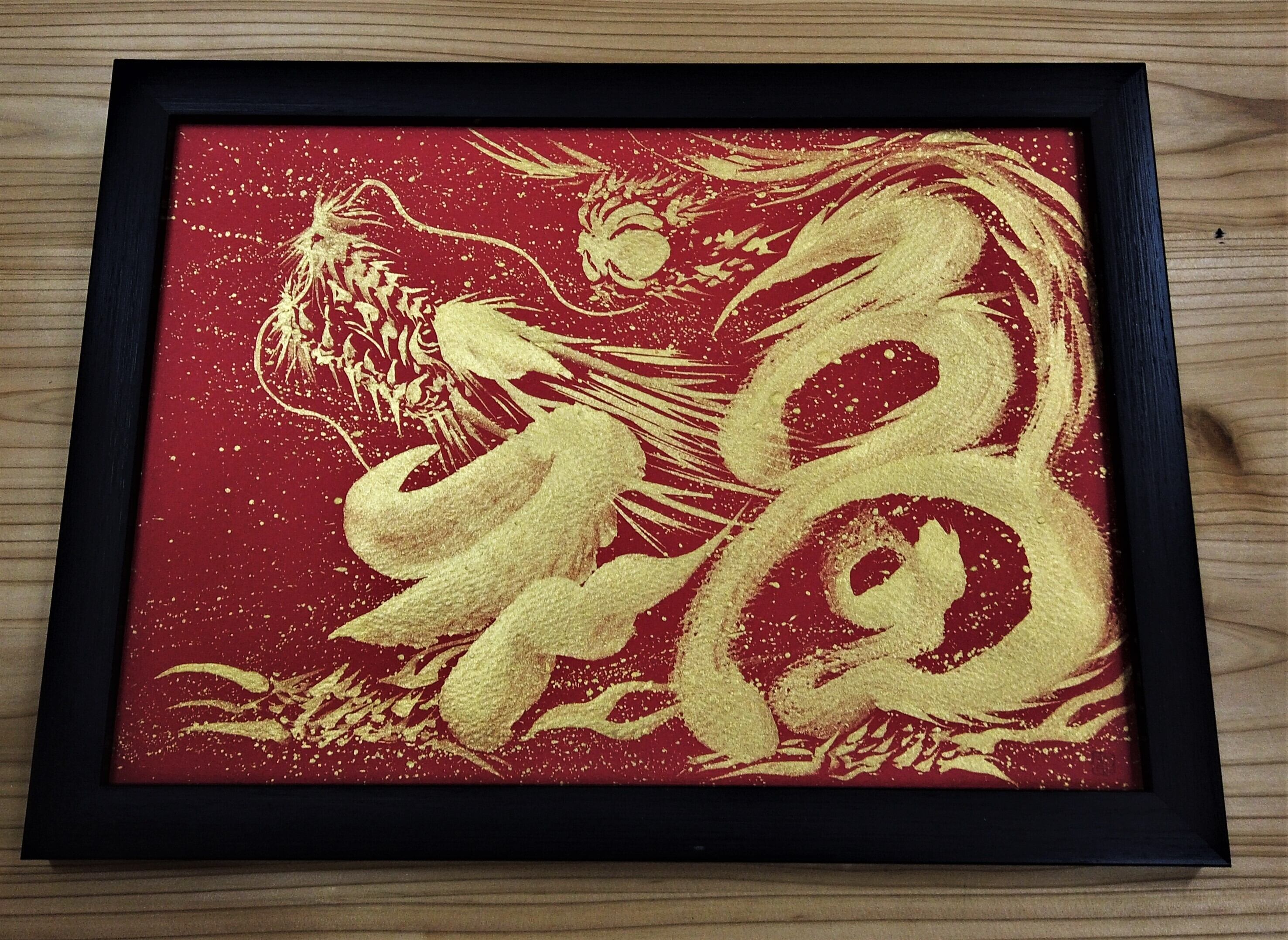 現代水墨画家☆絵師白道 「一筆金福龍 (赤)」直筆作品 /Hakudouroom. ART Hakudou 絵 絵画 龍