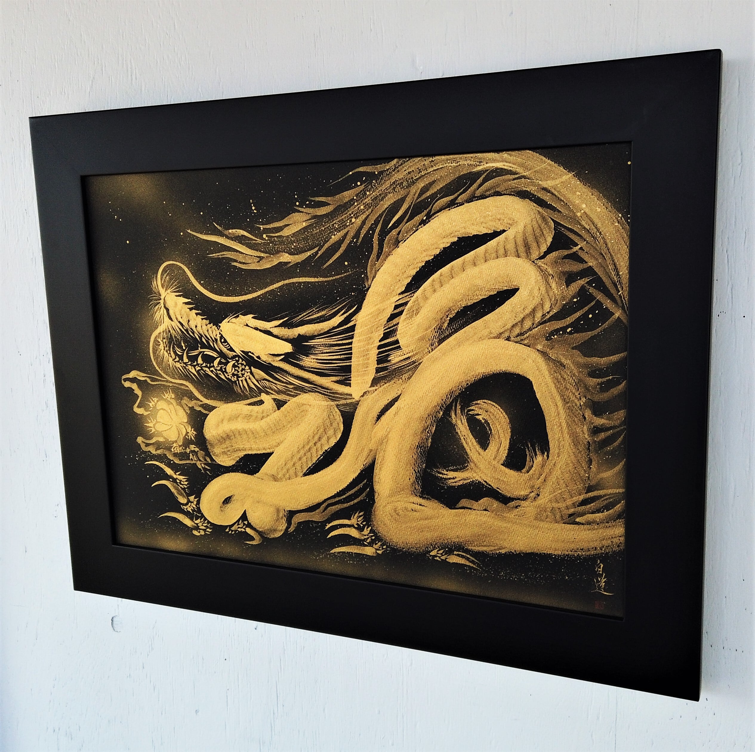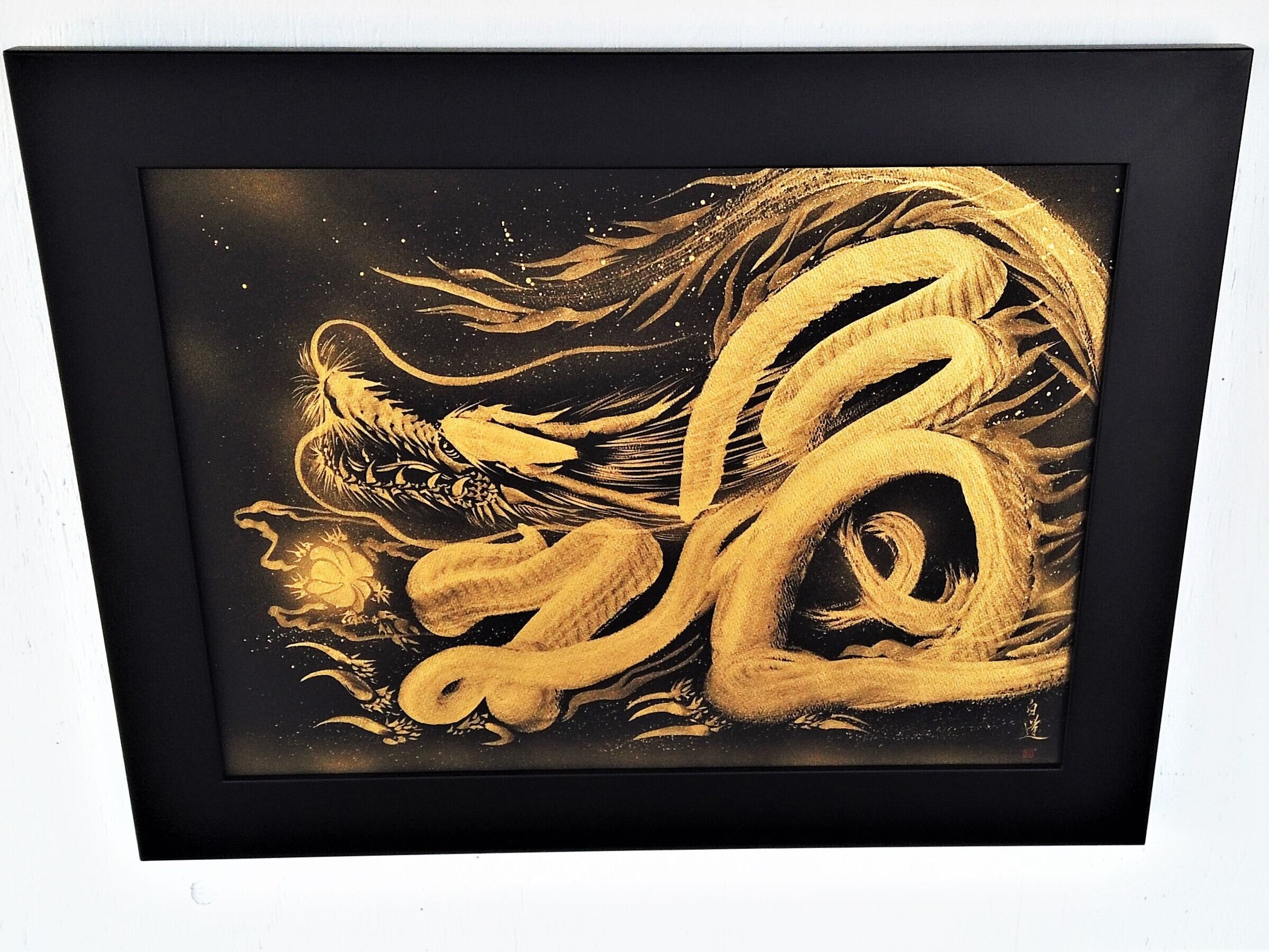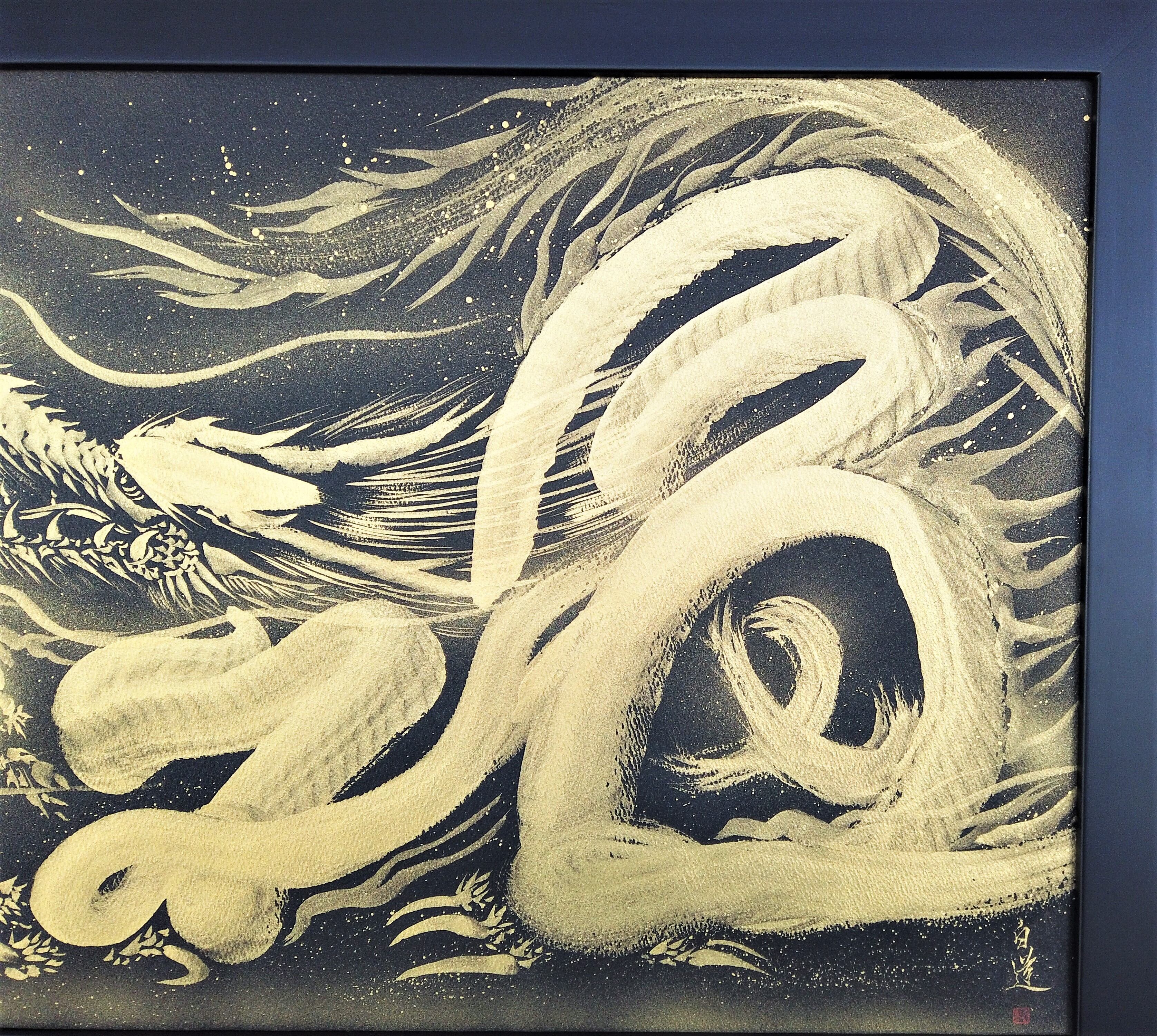 現代水墨画家☆絵師白道 「一筆金福龍」(直筆作品)真筆証明書 高級額装 /ART Hakudou 絵 絵画 龍 一筆龍 送料無料♪