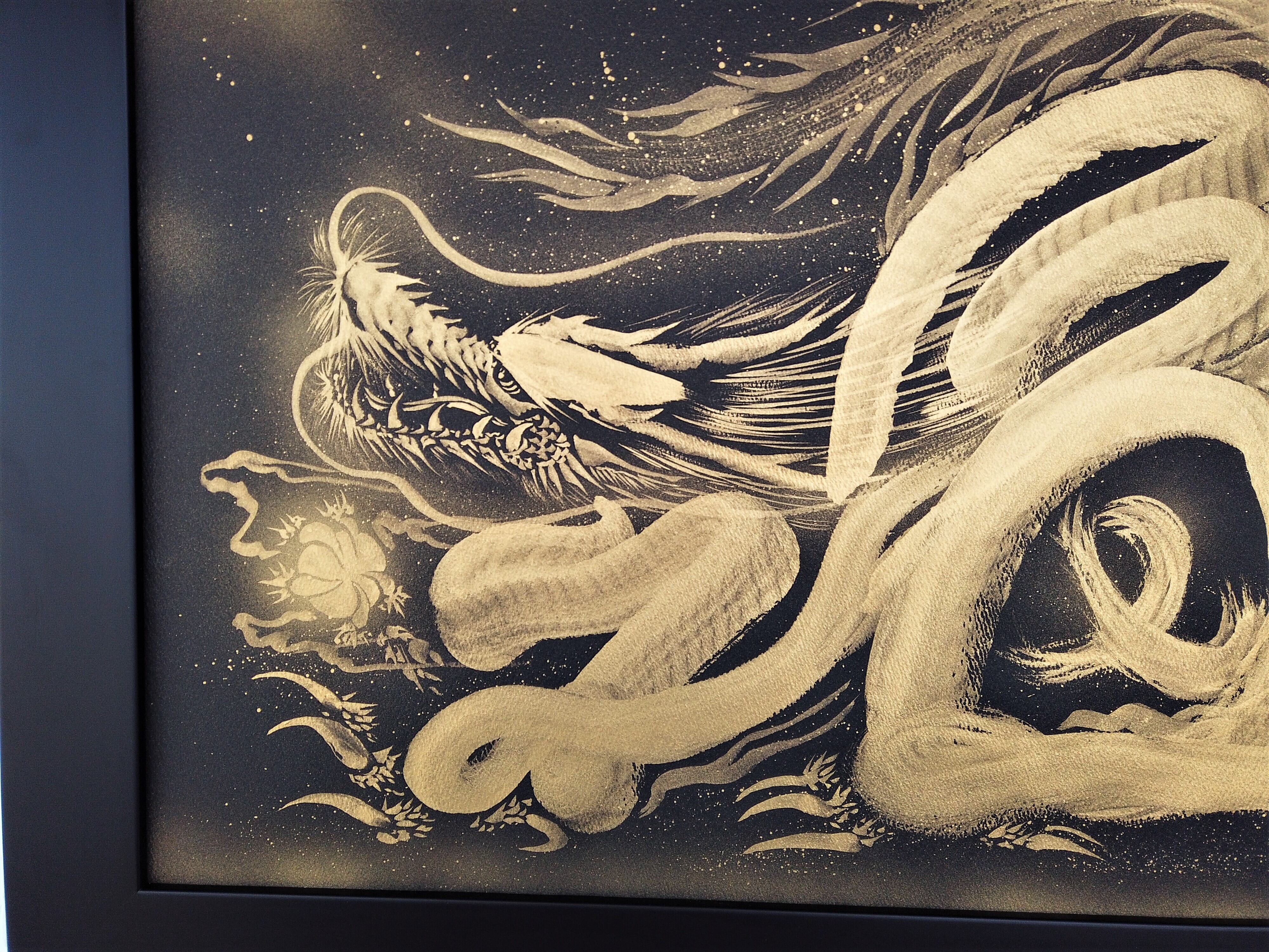 光を当てますと更に輝きが増し美しい龍が浮かび上がります。