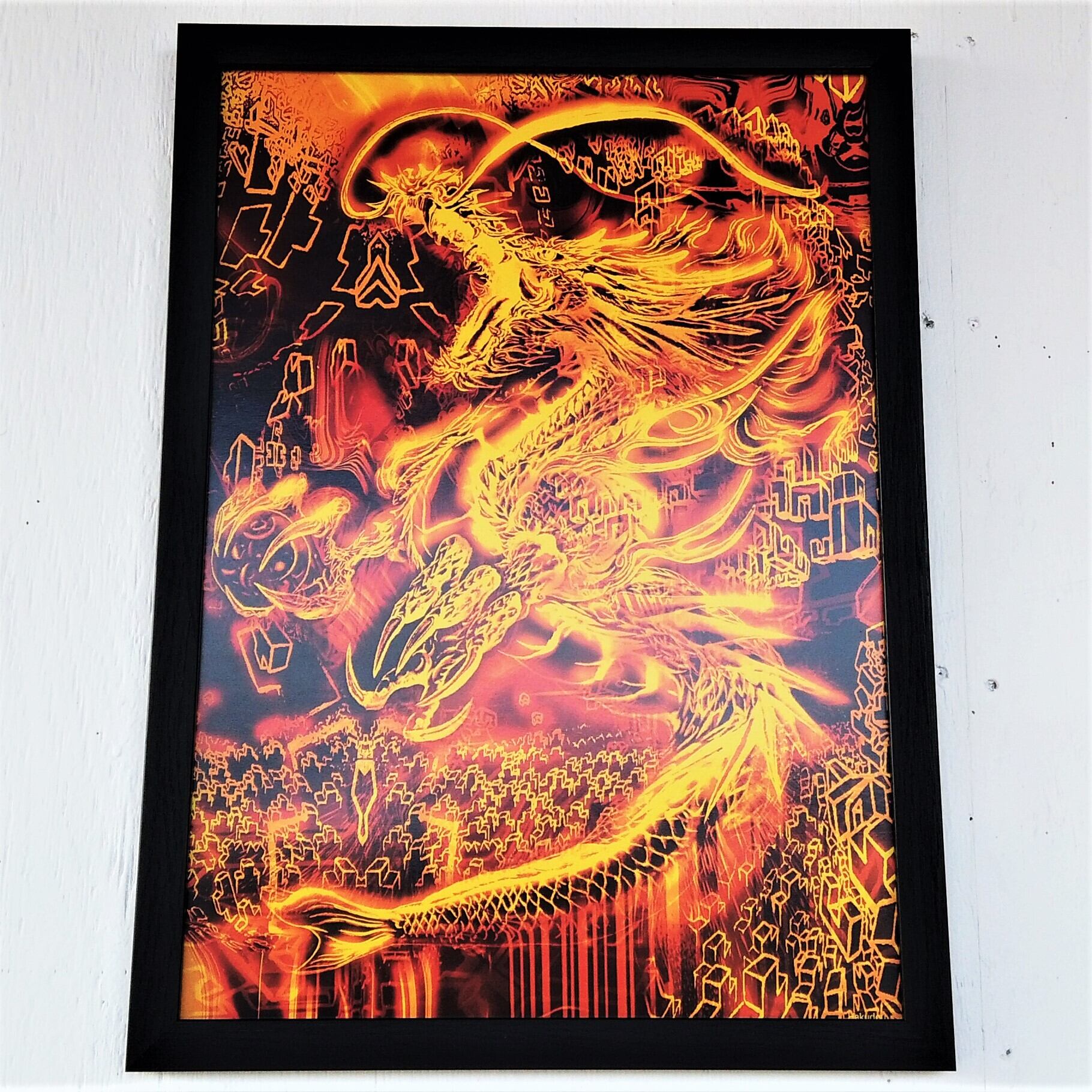 現代芸術家☆絵師白道/Hakudou. 「Orange Magic+登竜門伝説」(複製画) 直筆サインあり /現代アート Hakudouroom. ART 龍 絵 絵画 送料無料♪