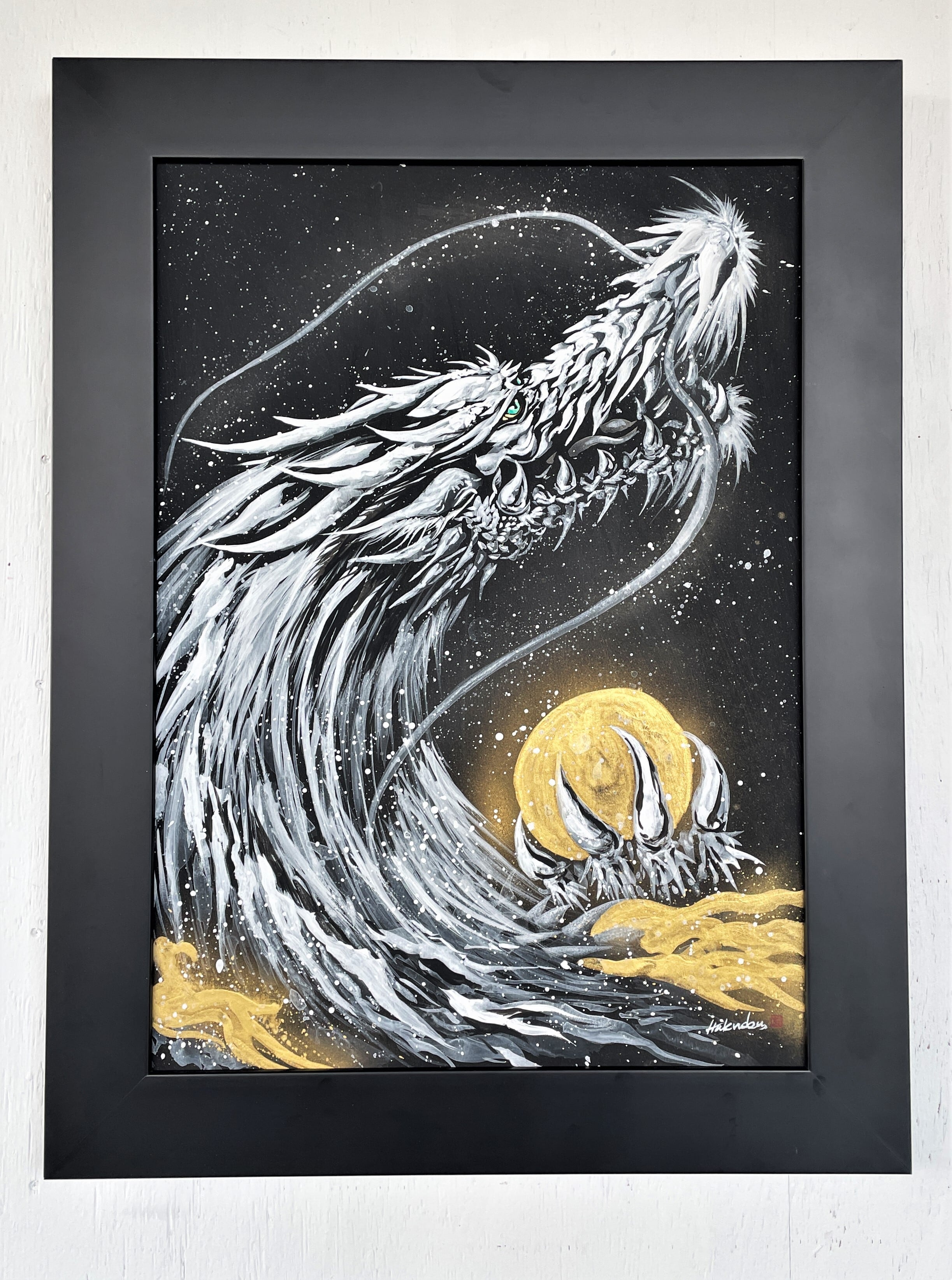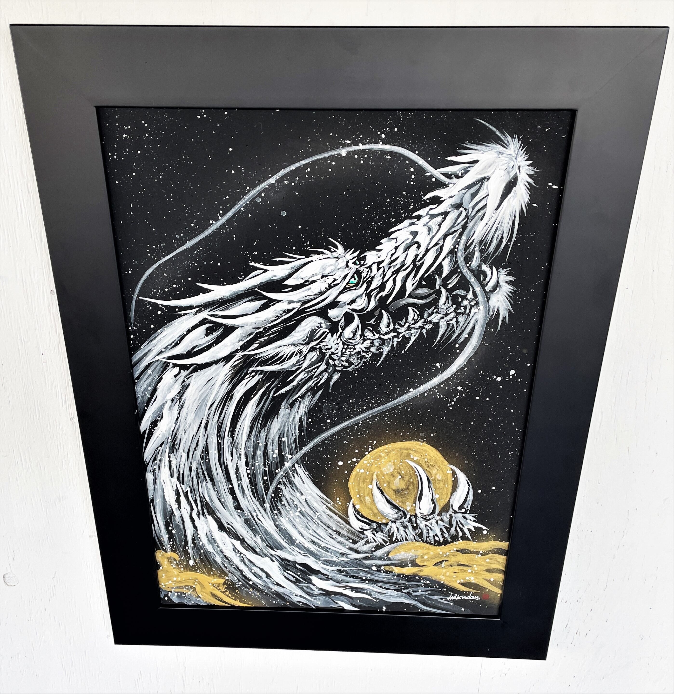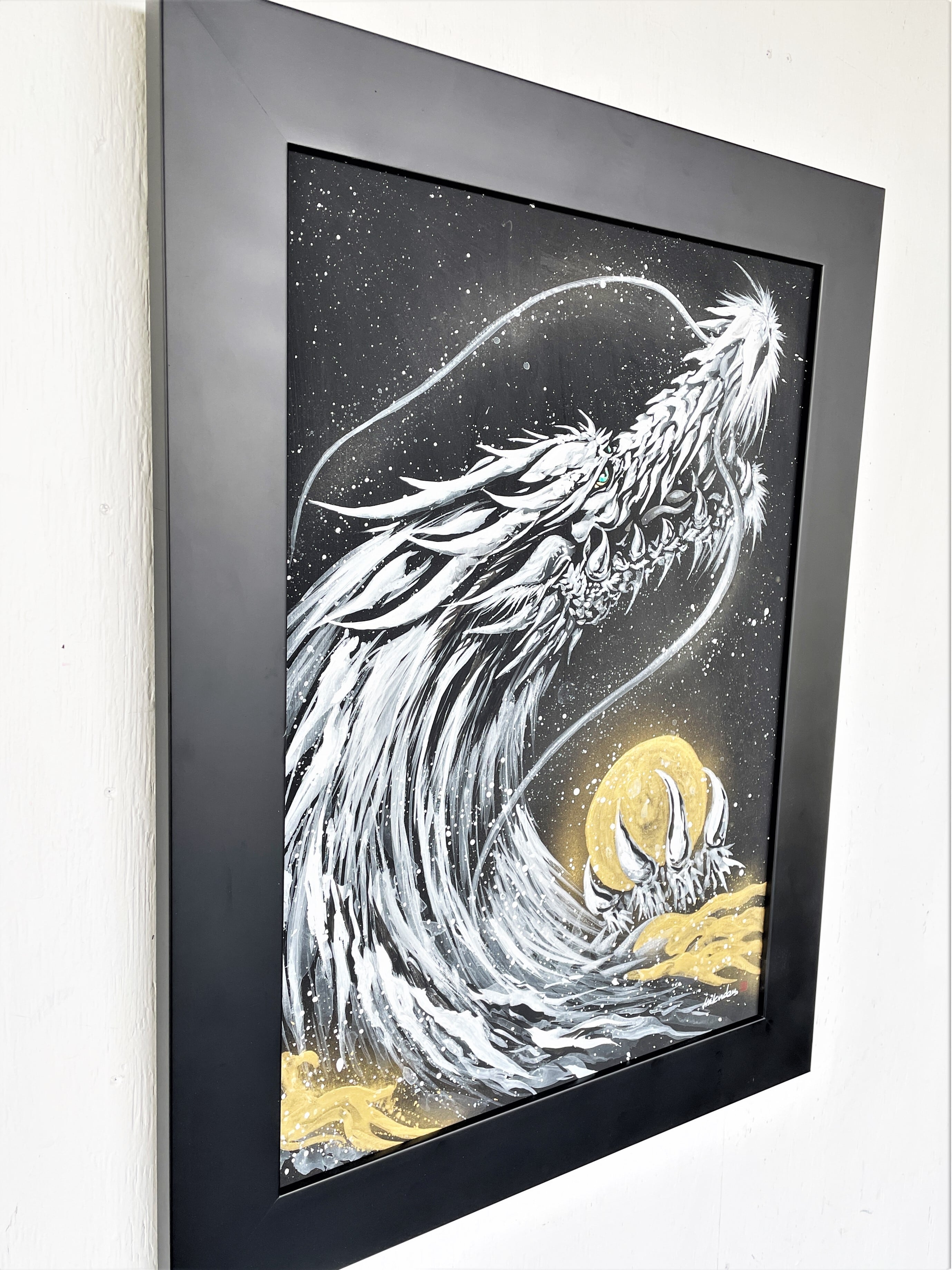 龍年フェア♪現代水墨画家☆絵師白道 「白龍昇天」(直筆作品)真筆証明書 高級額装 / 現代アート 絵 絵画 龍 送料無料♪