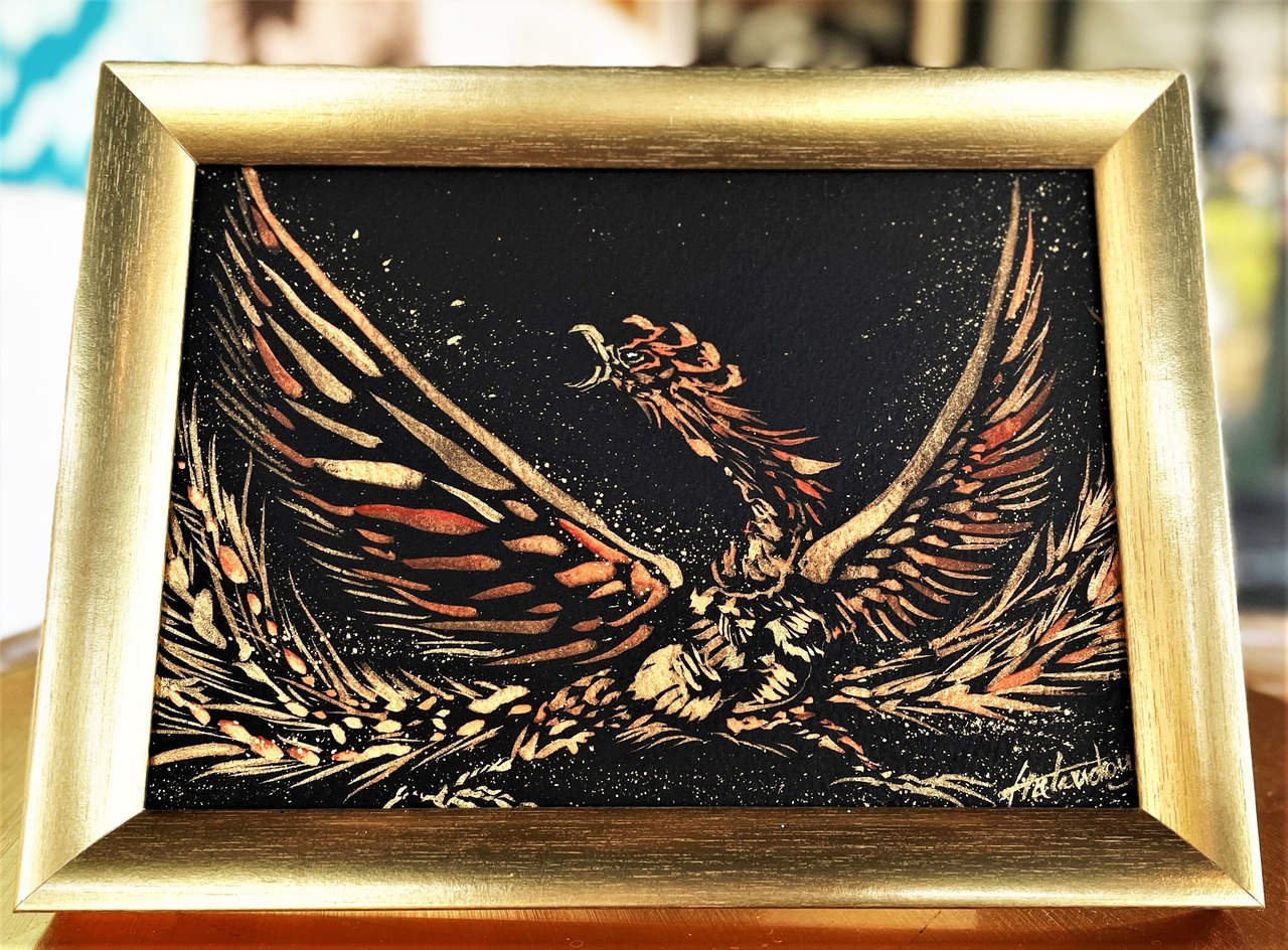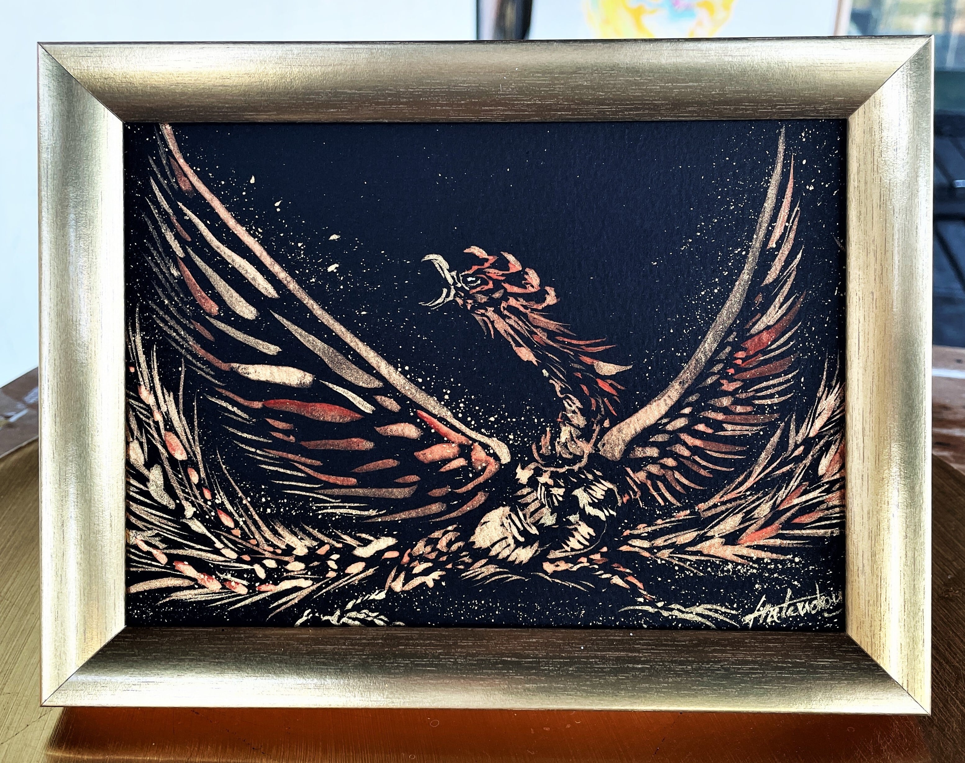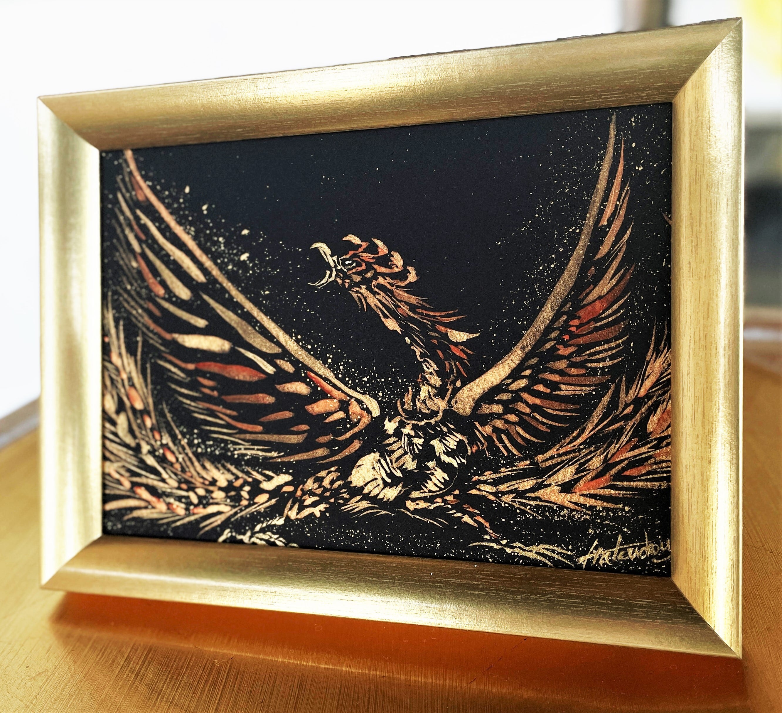龍年フェア♪現代水墨画家 絵師白道 「朱雀・miniART」 干支 鳳凰 フェニックス 絵画 絵 現代アート
