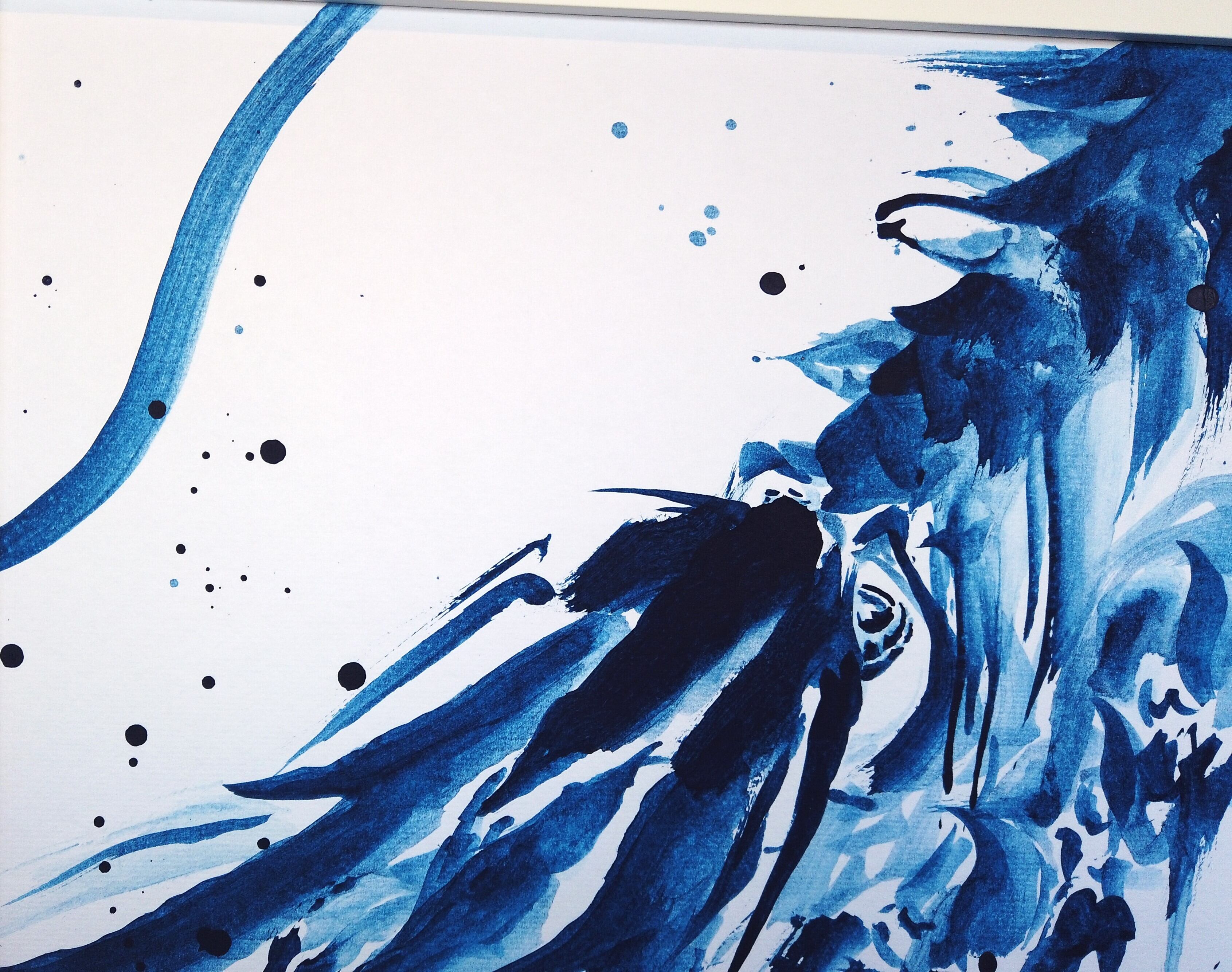 鈴鹿墨の青ボンド墨を使って鮮やかな青と和紙の白さが清涼感を醸し出しています。