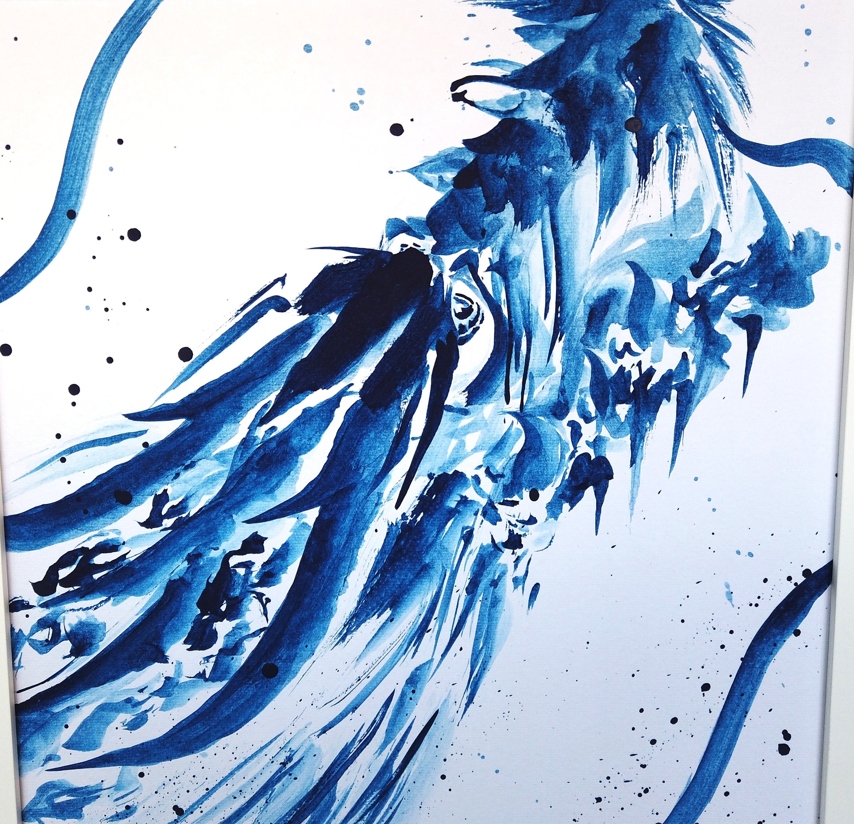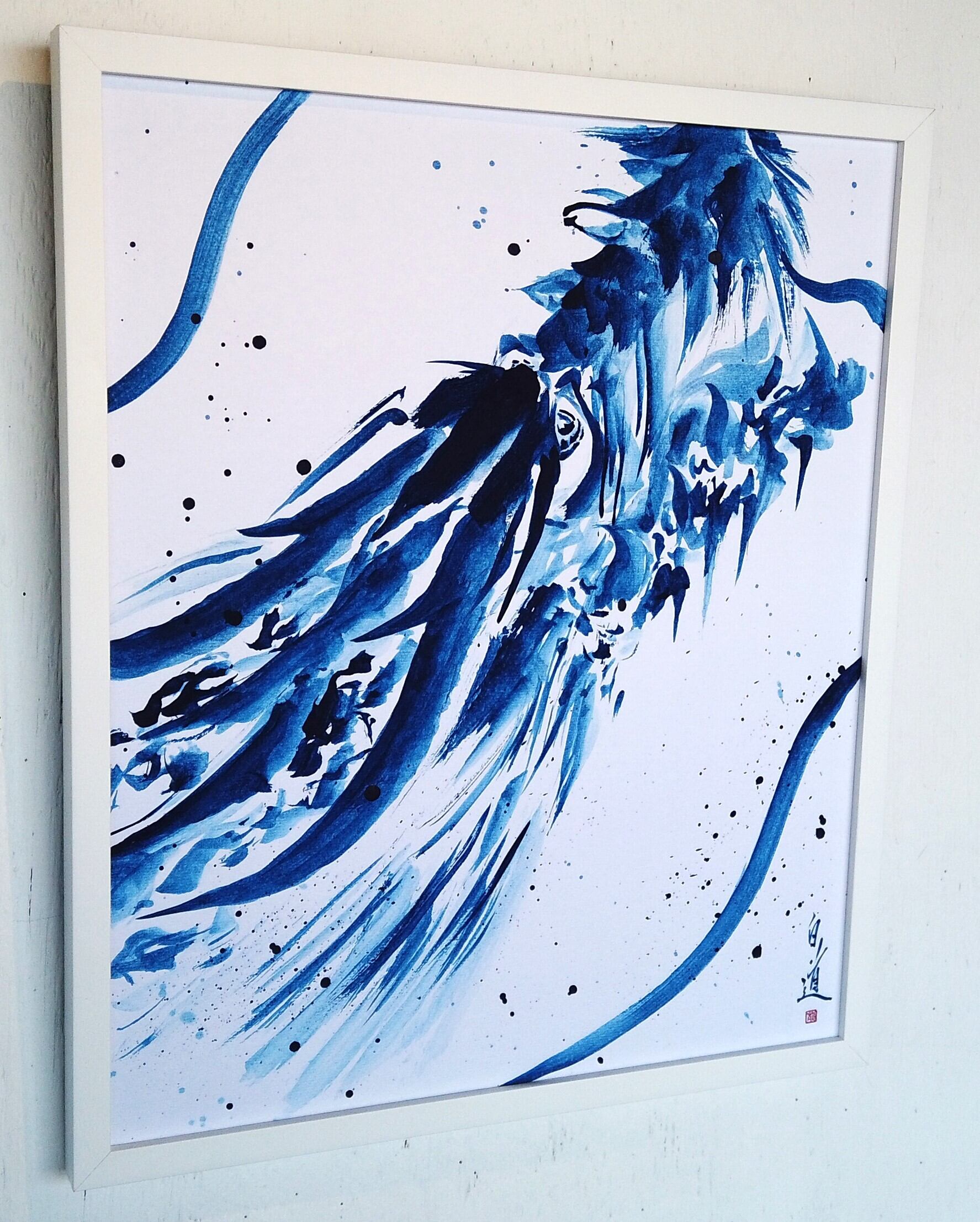 現代水墨画家 絵師白道 「蒼き昇龍」 (青ボンド墨) 直筆作品 証明書カード付 龍 絵 絵画 現代アート