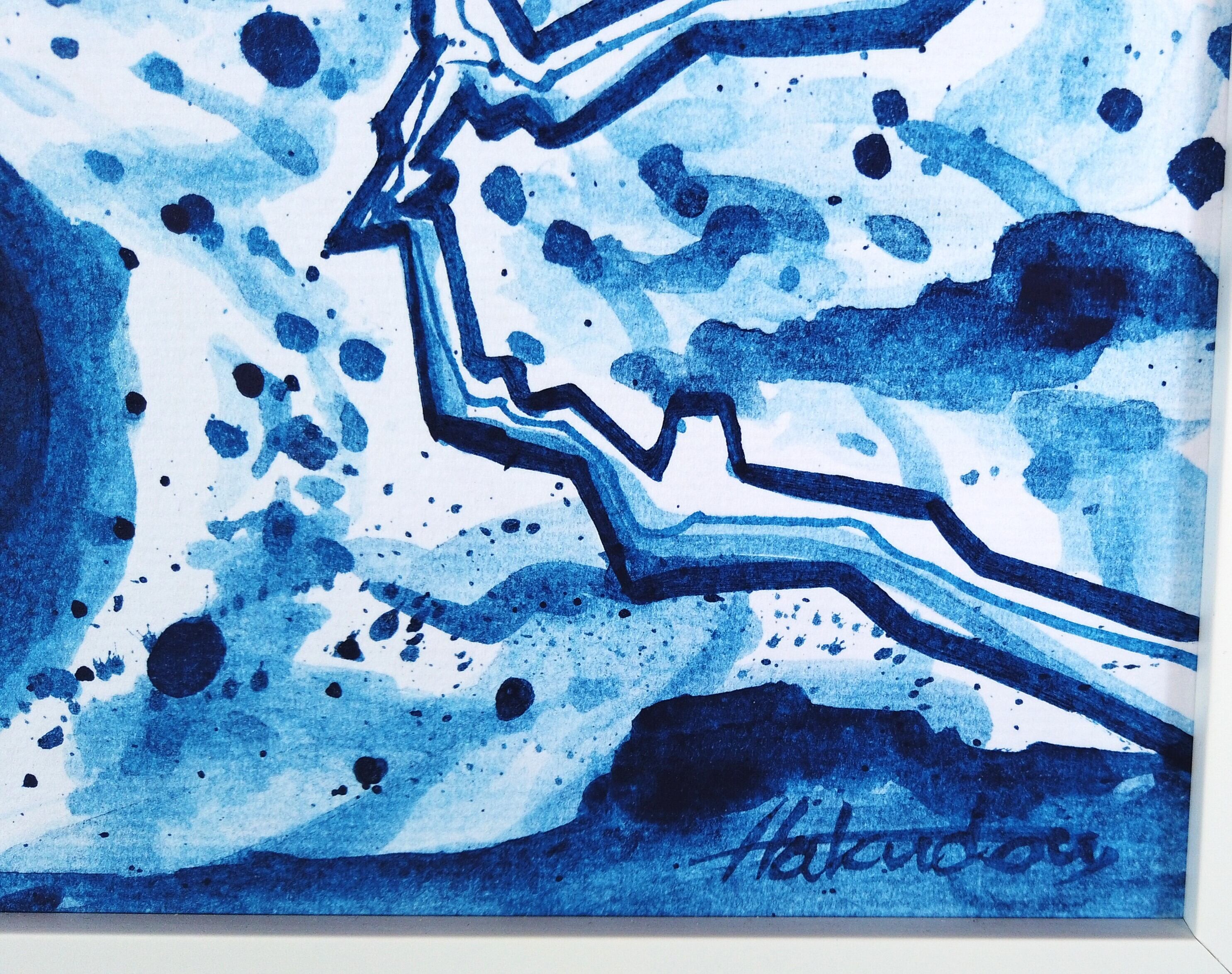 鈴鹿墨の青ボンド墨を使って鮮やかな青と和紙の白さが清涼感を醸し出しています。