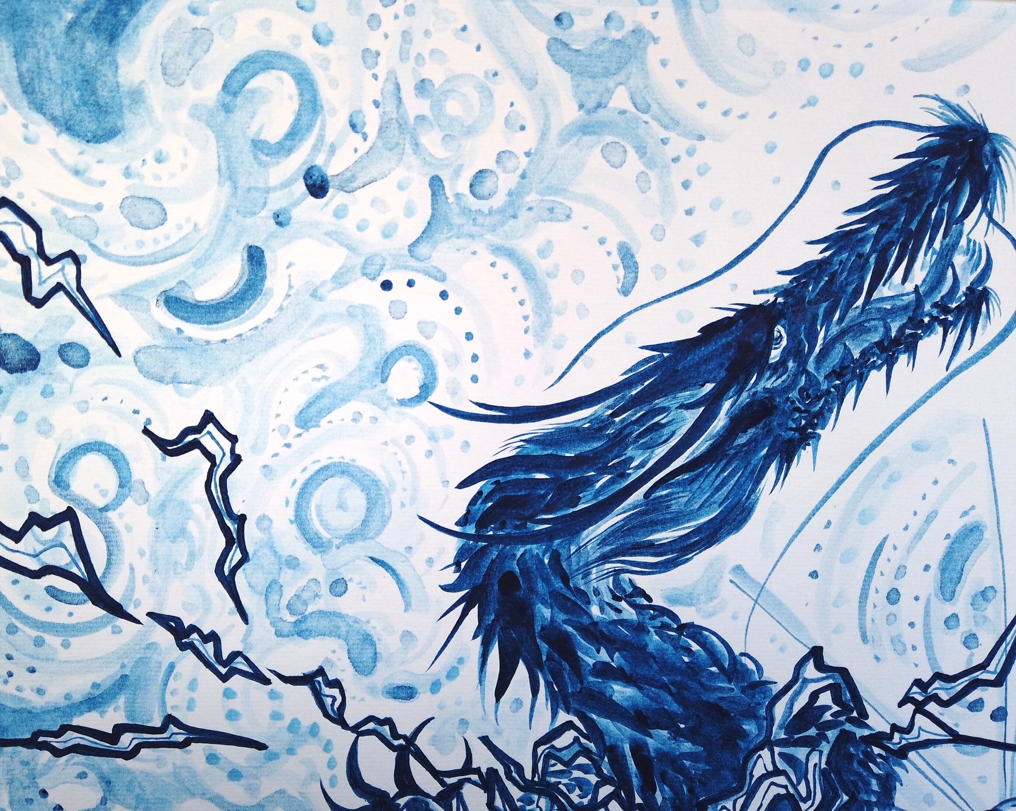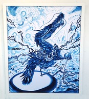 現代水墨画家 絵師白道 「龍道門から飛び出る昇り龍」 (青ボンド墨) 直筆作品 証明書カード付 龍 絵 絵画 現代アート