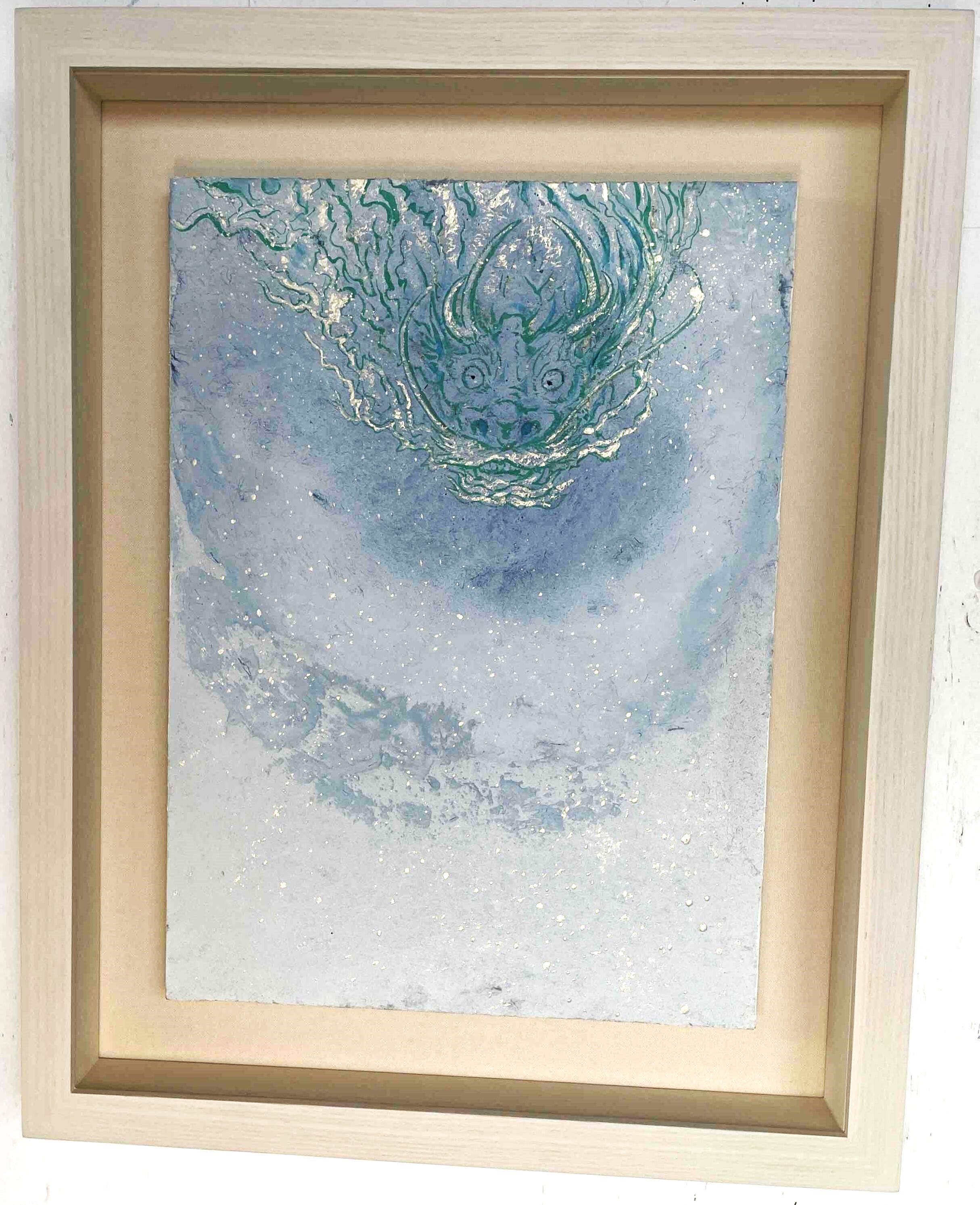 現代水墨画家 絵師白道+相川出后(Izumi Ikawa) コラボ作品 「龍雲」 漆喰 藍染 顔彩 直筆作品 証明書カード付 龍 絵 絵画 現代アート