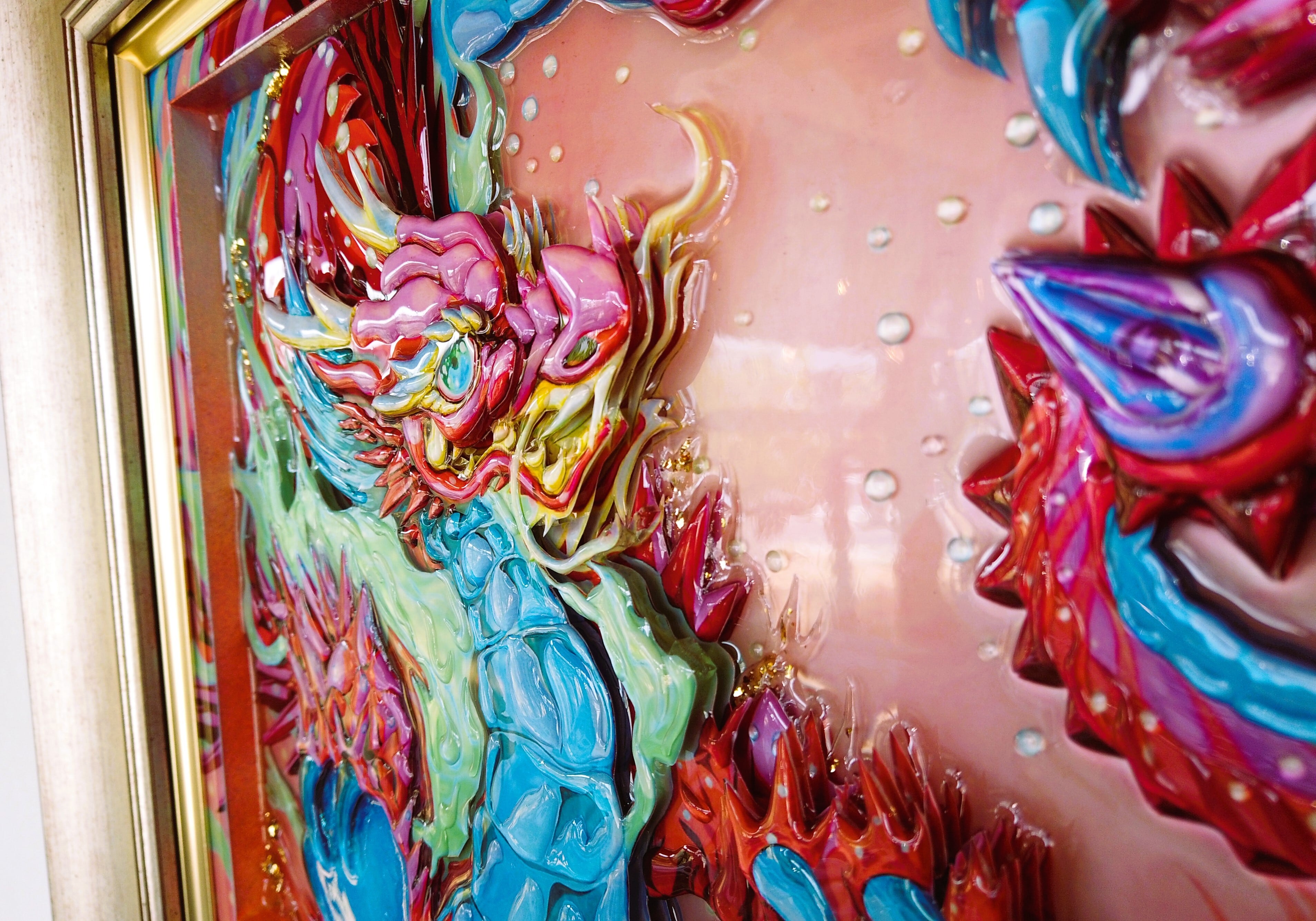 現代水墨画家 白道+月乃カエル コラボ作品「Layered Pinky Dragon RED」証明書付 龍 絵 絵画 現代アート