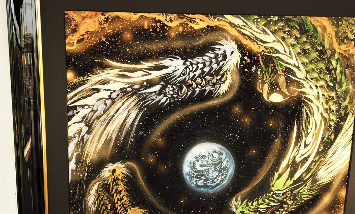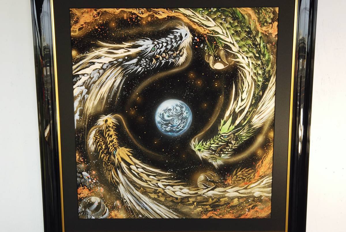 現代芸術家☆絵師白道 「宇宙を創る三大龍王」(直筆作品) 真筆証明書 箱あり 高級額装 /ART Hakudou 絵 絵画 龍