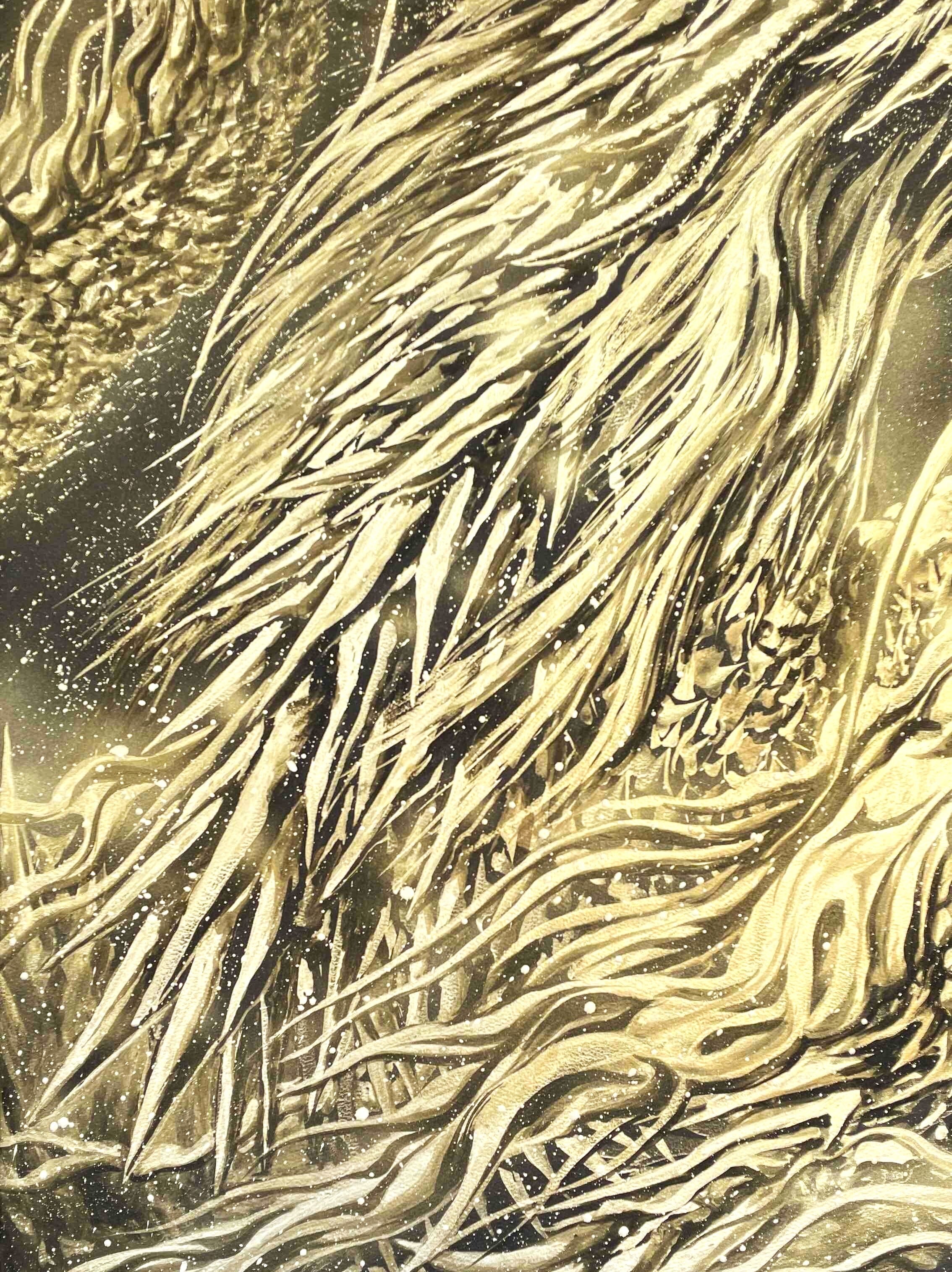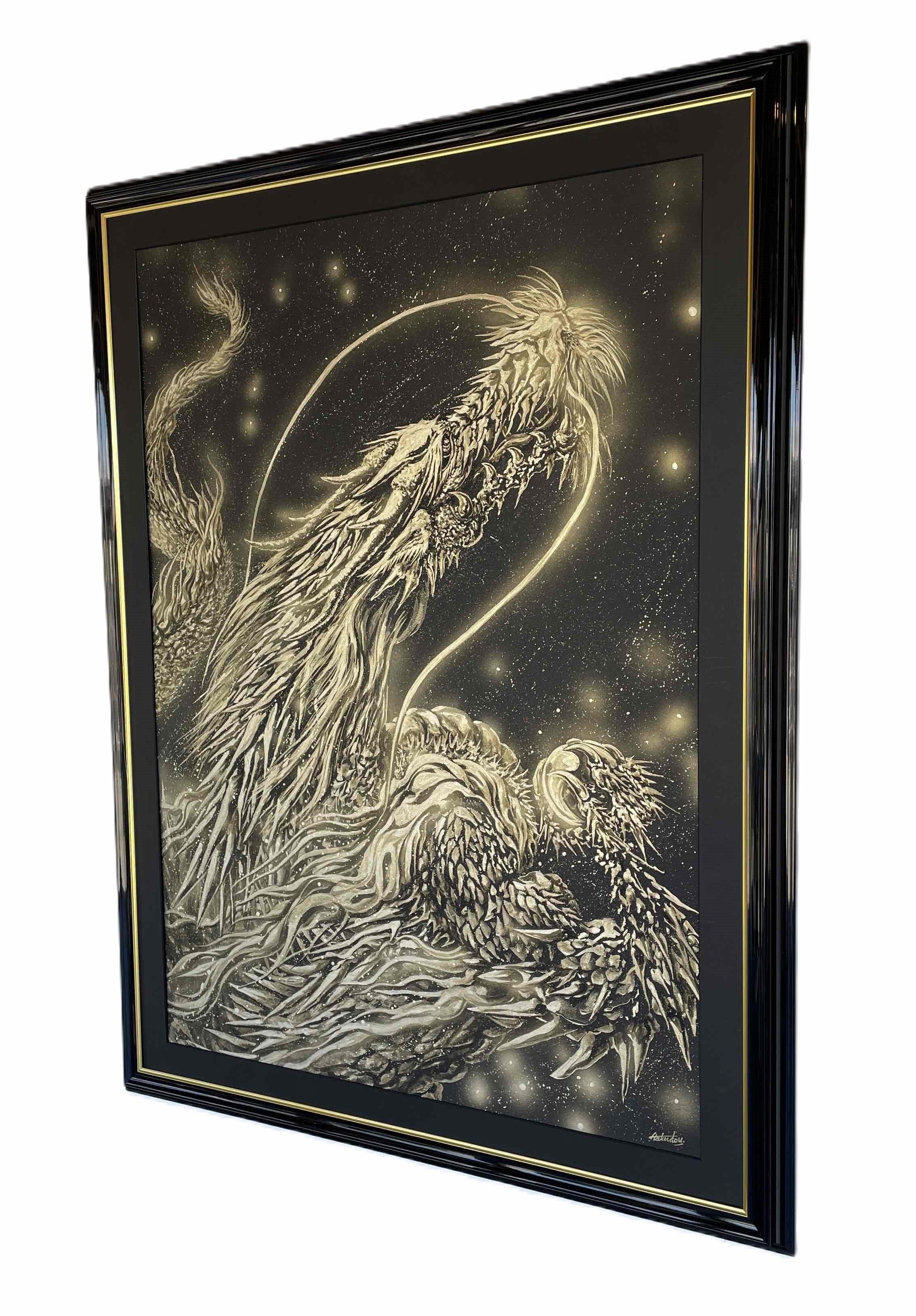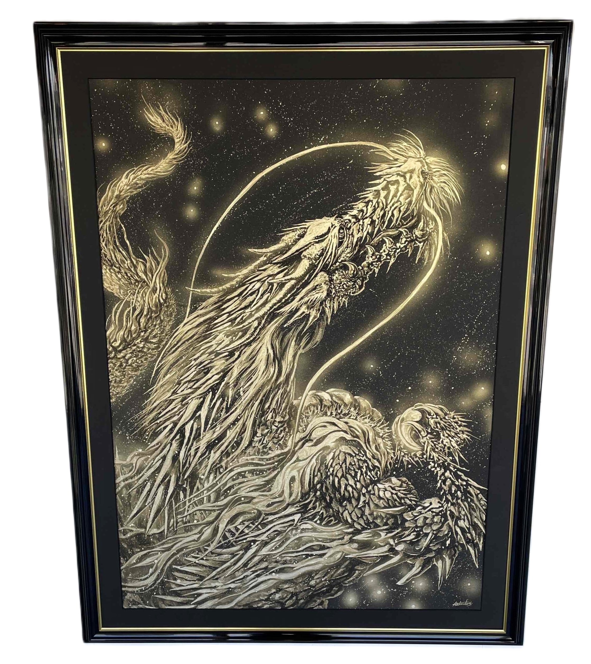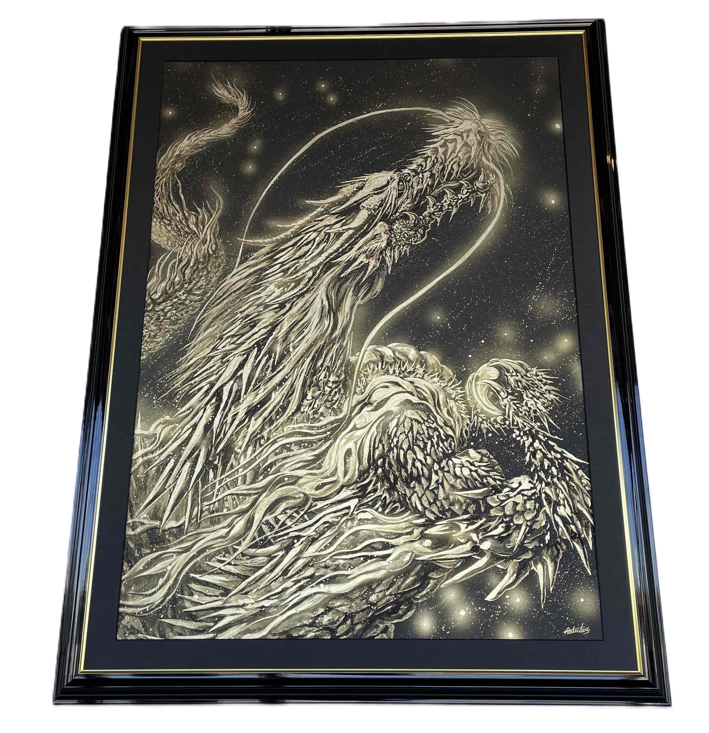 現代水墨画家 絵師白道 「金銀昇龍」 (岩絵の具) 直筆作品 証明書カード付 龍 絵 絵画 現代アート 送料無料♪